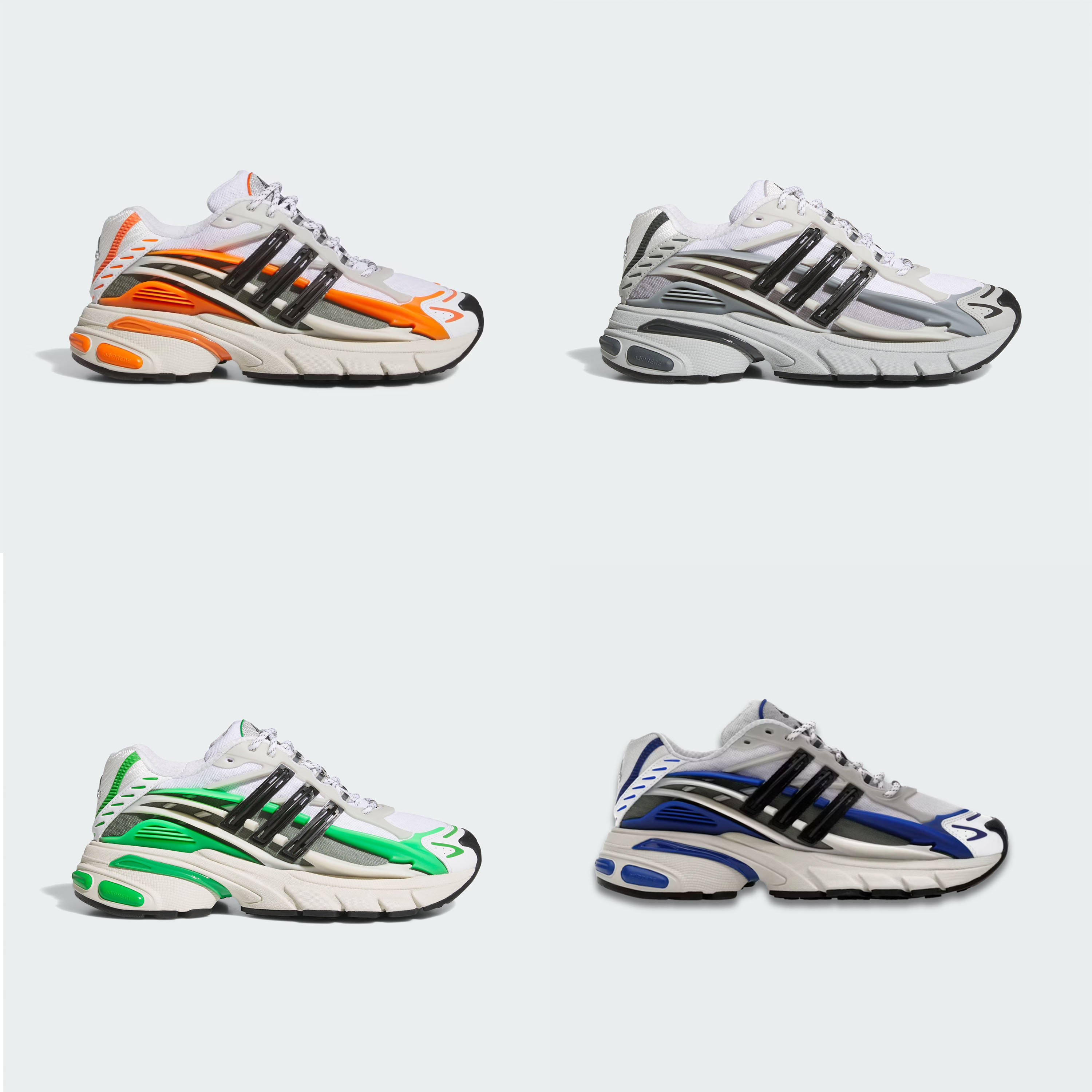 Signature Pharrell design meets adidas innovation in this four-pair set of the VIRGINIA Adistar Jellyfish sneakers, presented in Orange, Grey, Green, and Blue colorways. Evolving the adidas Originals lineage with sculptural precision and modern clarity, the design merges expressive form with everyday functionality.