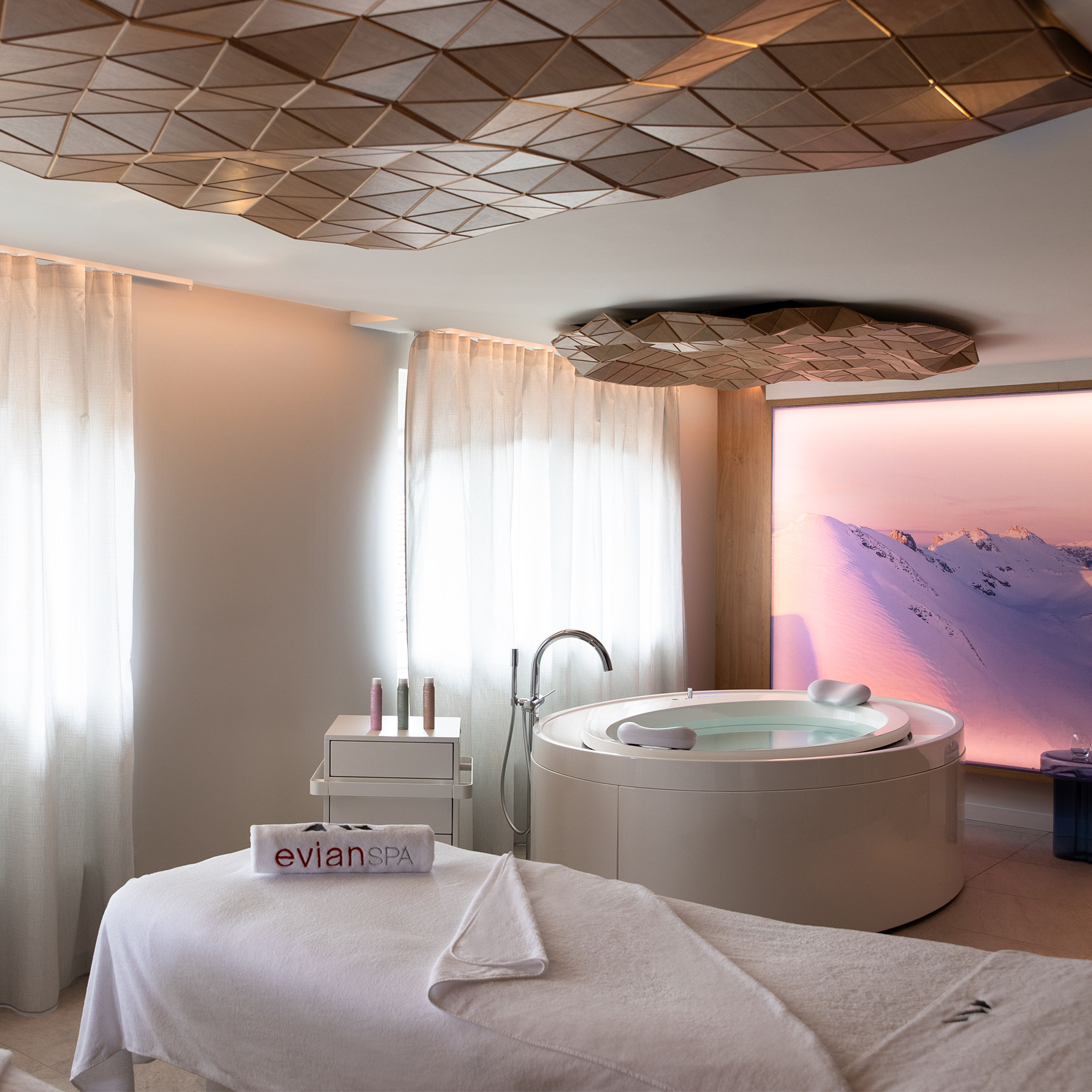 Included in this experience is Le Minéral, an original signature ritual created by evian®SPA. This unique treatment celebrates the purity of nature through the delicate touch of talc, renowned for its richness in magnesium and its soothing properties. The treatment for two will be in the Mont Blanc VIP room or alternatively in two single rooms upon request.