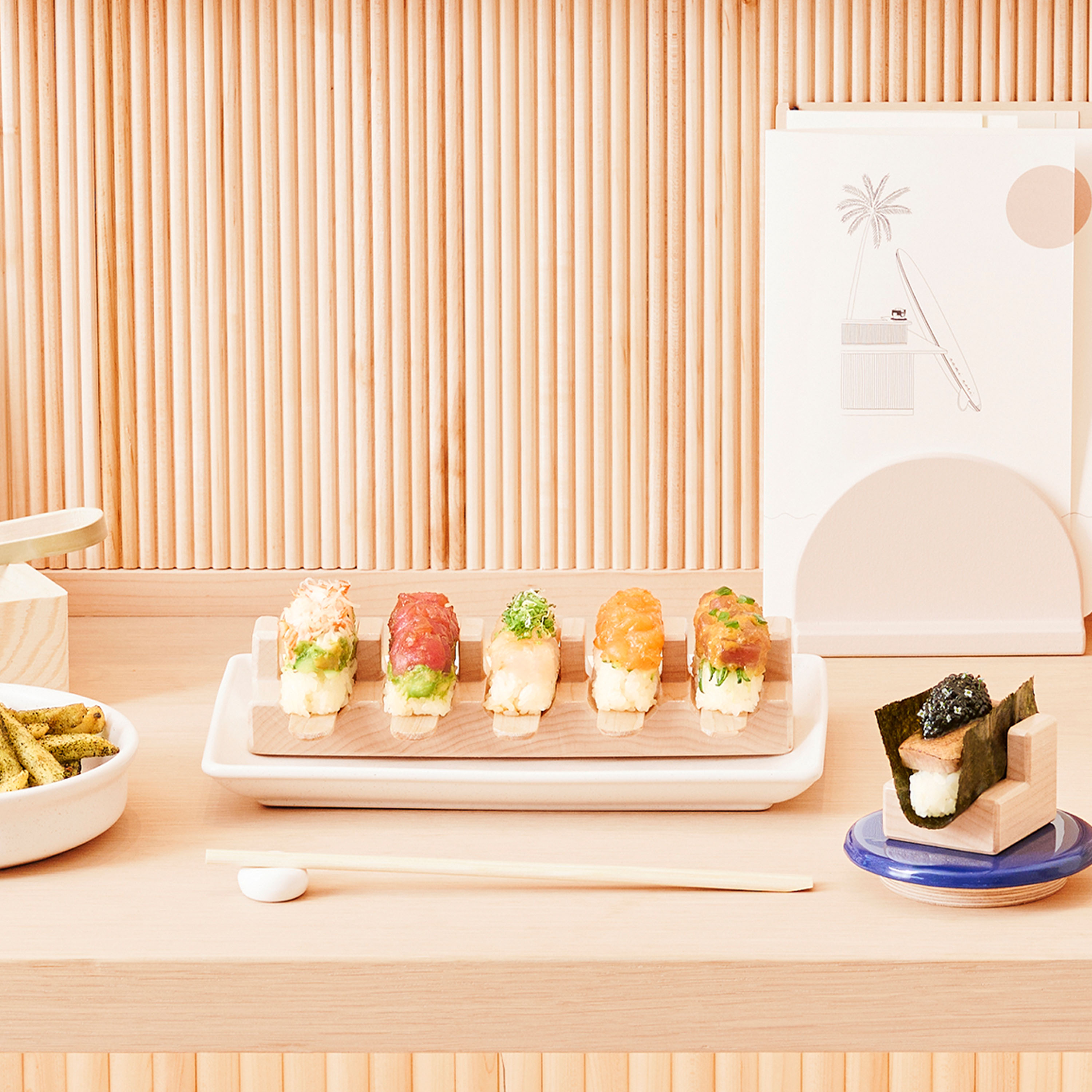 Enjoy an unforgettable evening of refined Japanese dining with a Temaki Tasting Menu for 8 guests, prepared and served by your own Nami Nori Private Chef. Known for its creative approach to open-style sushi hand rolls and elegant hospitality, Nami Nori brings its celebrated culinary artistry directly to your home for a one-of-a-kind experience that combines craftsmanship, culinary expertise and festivity.
