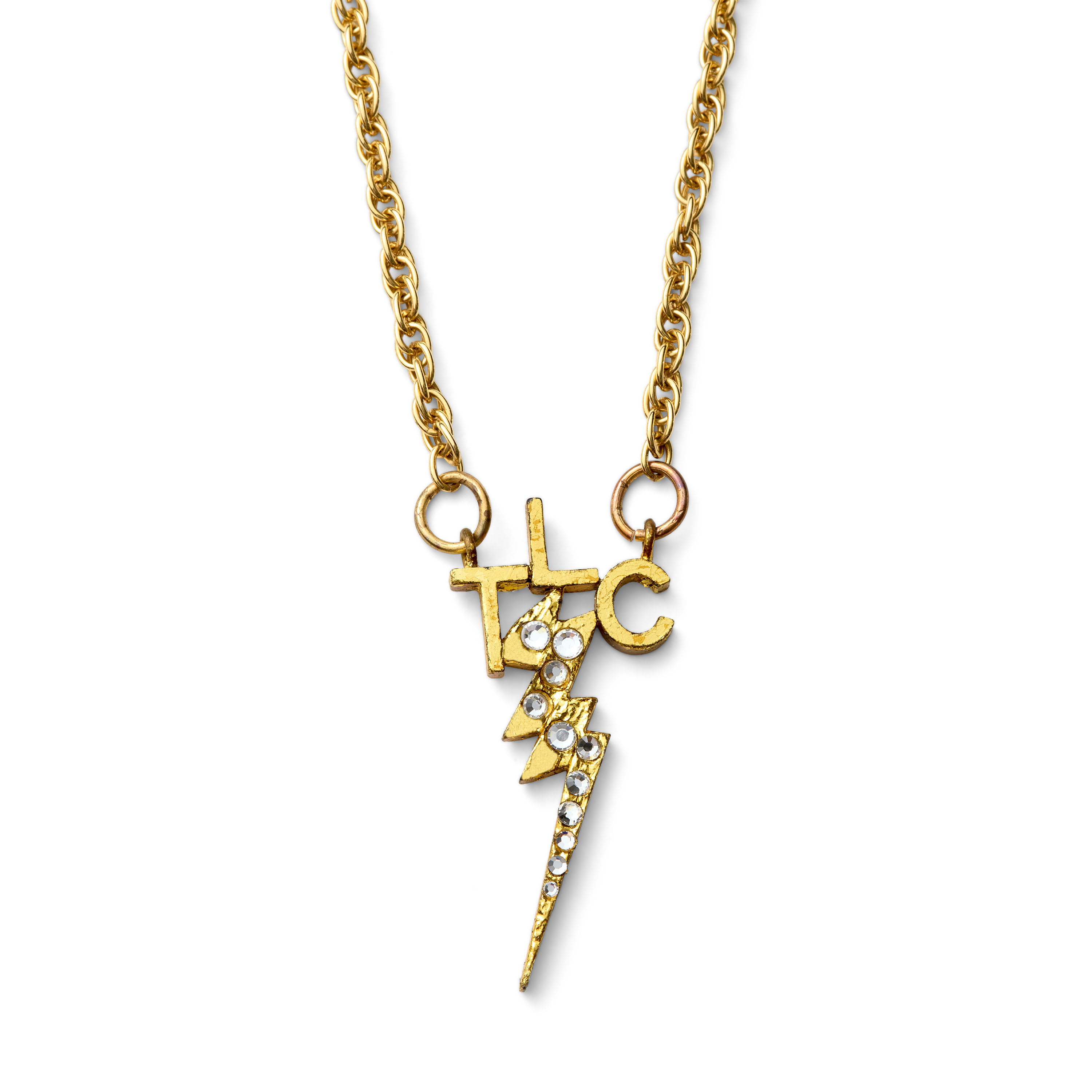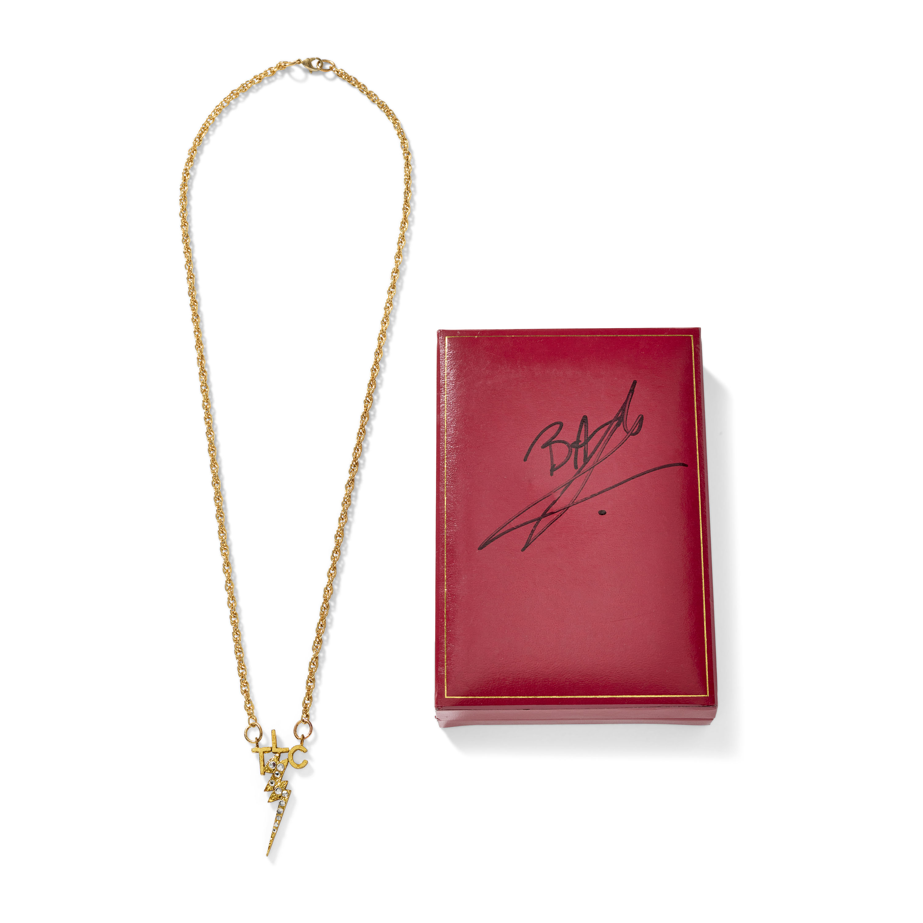 This gold-toned chain necklace was created for Olivia DeJonge in her portrayal of Priscilla Presley in Baz Luhrmann’s Elvis (2022). Its pendant bears the initials “TLC” which stands for “Tender Loving Care," the female counterpart to Elvis Presley's famed "TCB" "Taking Care of Business" motto. This logo was originally designed by Priscilla Presley and produced by Elvis's personal jeweler, Lowell Hayes, and features a lightning bolt, signifying "in a flash." While the TCB pendants were reserved for the men of Elvis' entourage, the "Memphis Mafia", the TLC versions were commissioned by Elvis as gifts for the most important women in his life, including family members and close friends. Recognized today as an intimate extension of Elvis' personal iconography, this piece stands as both a symbolic artifact of Elvis' world and a cinematic artifact from the meticulous costume design behind Elvis (2022).