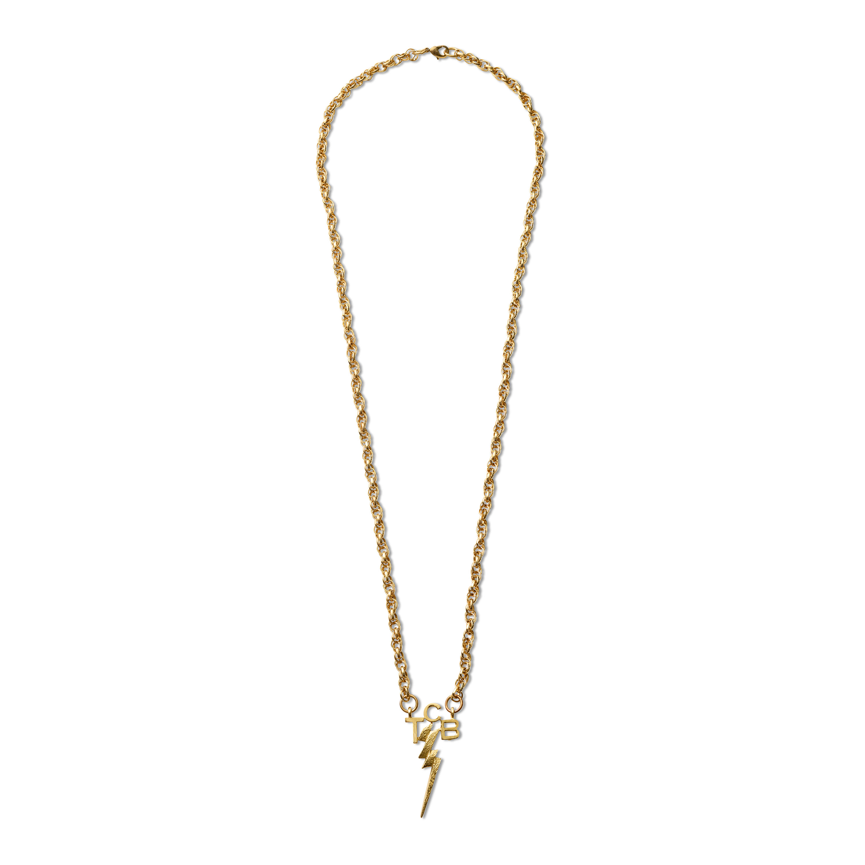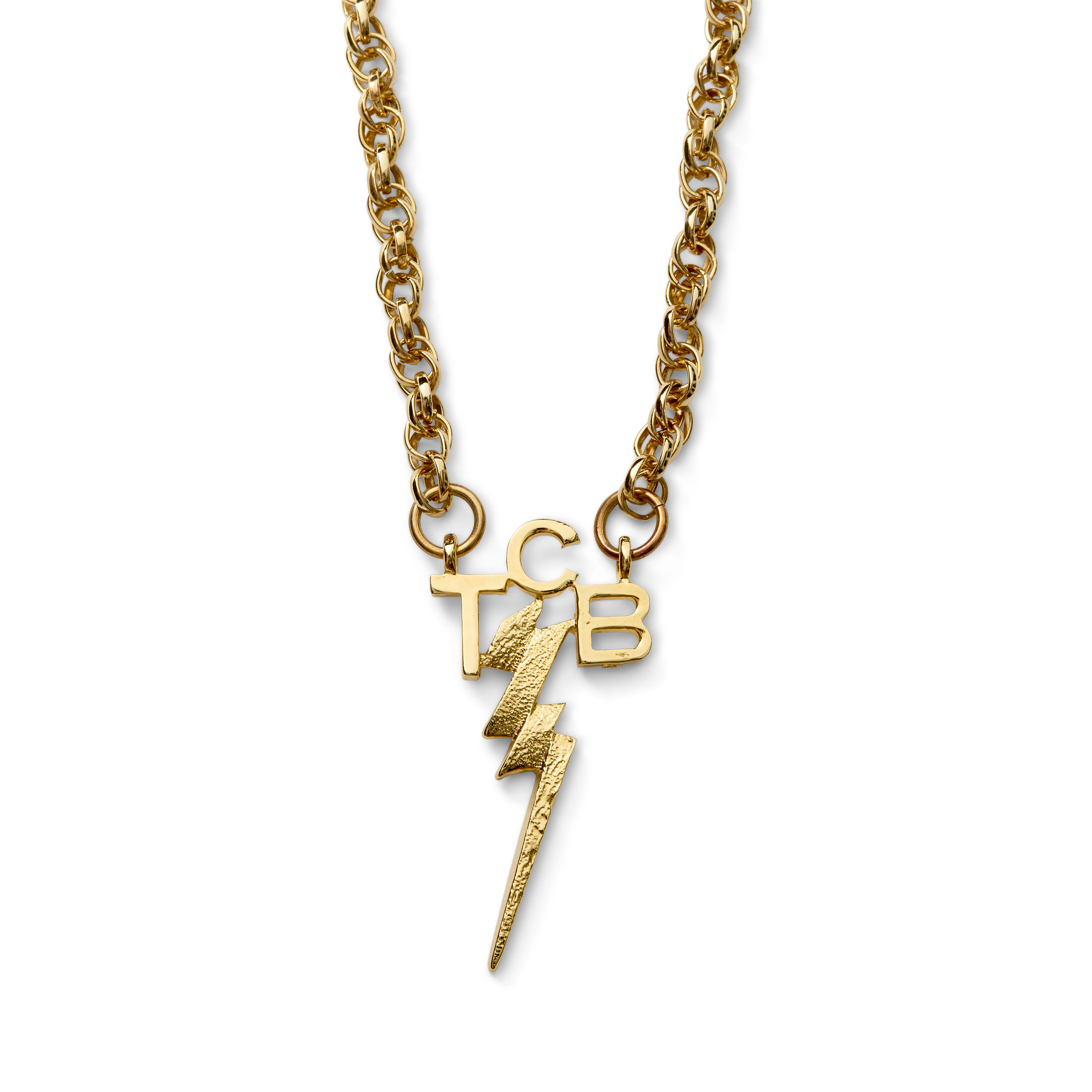 This gold-toned chain necklace was created for Austin Butler in his Academy Award–nominated portrayal of Elvis Presley in Baz Luhrmann’s Elvis (2022). The pendant bears the iconic initials “TCB" which stands for "Taking Care of Business," Elvis Presley’s enduring personal motto and the name of his famed backing group, the TCB Band. Designed by his wife, Priscilla Presley, the emblem is completed by a lightning bolt, signifying “in a flash.” Widely recognized among fans, the logo became synonymous with Elvis’ identity, appearing on custom jewelry and even on his private jet. Elvis’ personal jeweler, Lowell Hayes, produced the original TCB (and the female counterpart, TLC) jewelry, which Elvis bestowed upon members of his trusted inner circle. The TCB pendants were reserved for the men of his entourage, the “Memphis Mafia”, and served as a mark of loyalty and brotherhood, while the TLC version was gifted to women in his life, including family and close friends. With its understated design and cultural resonance, this piece offers collectors both a tangible link to Elvis’ world and a cinematic artifact of the meticulous costume design behind Elvis (2022).