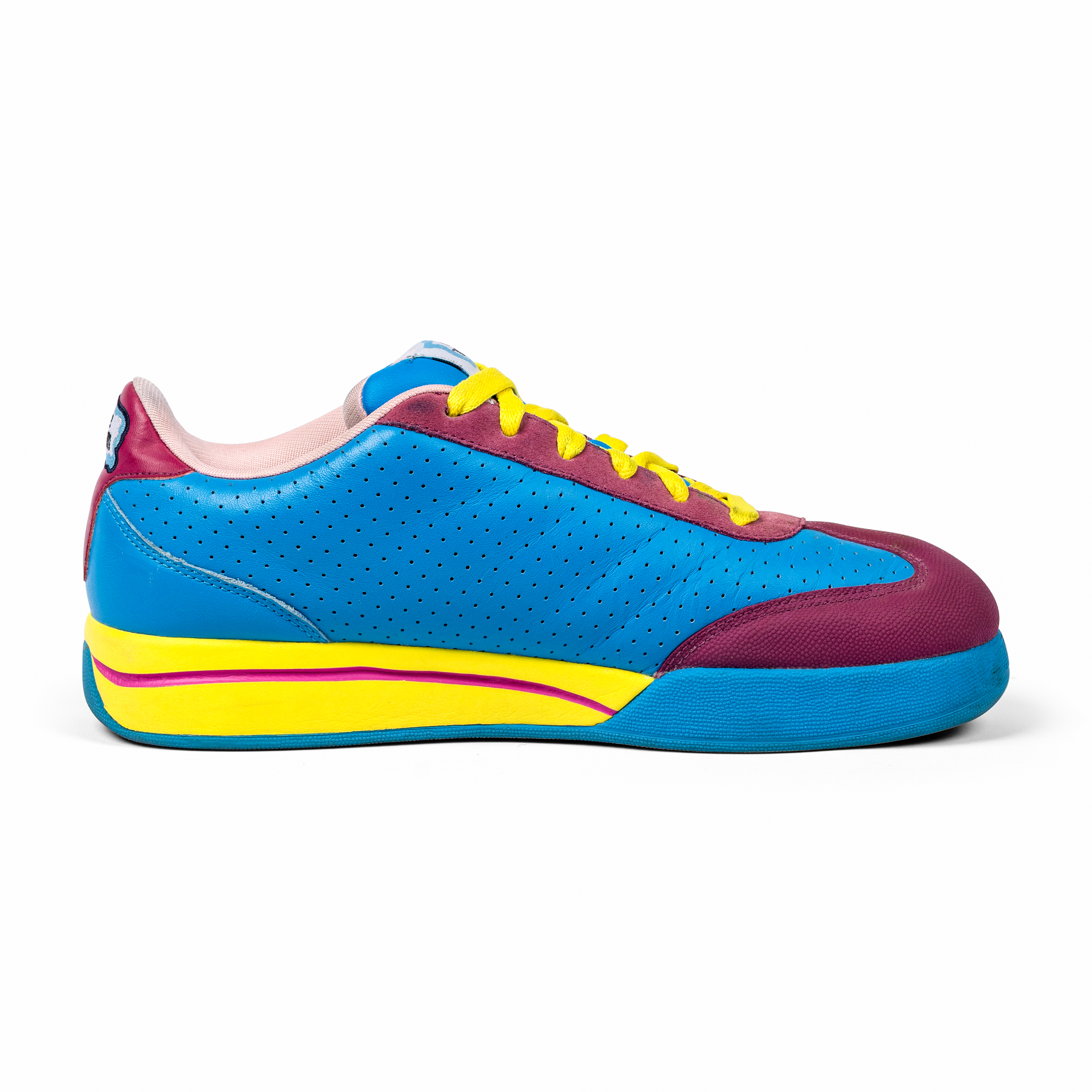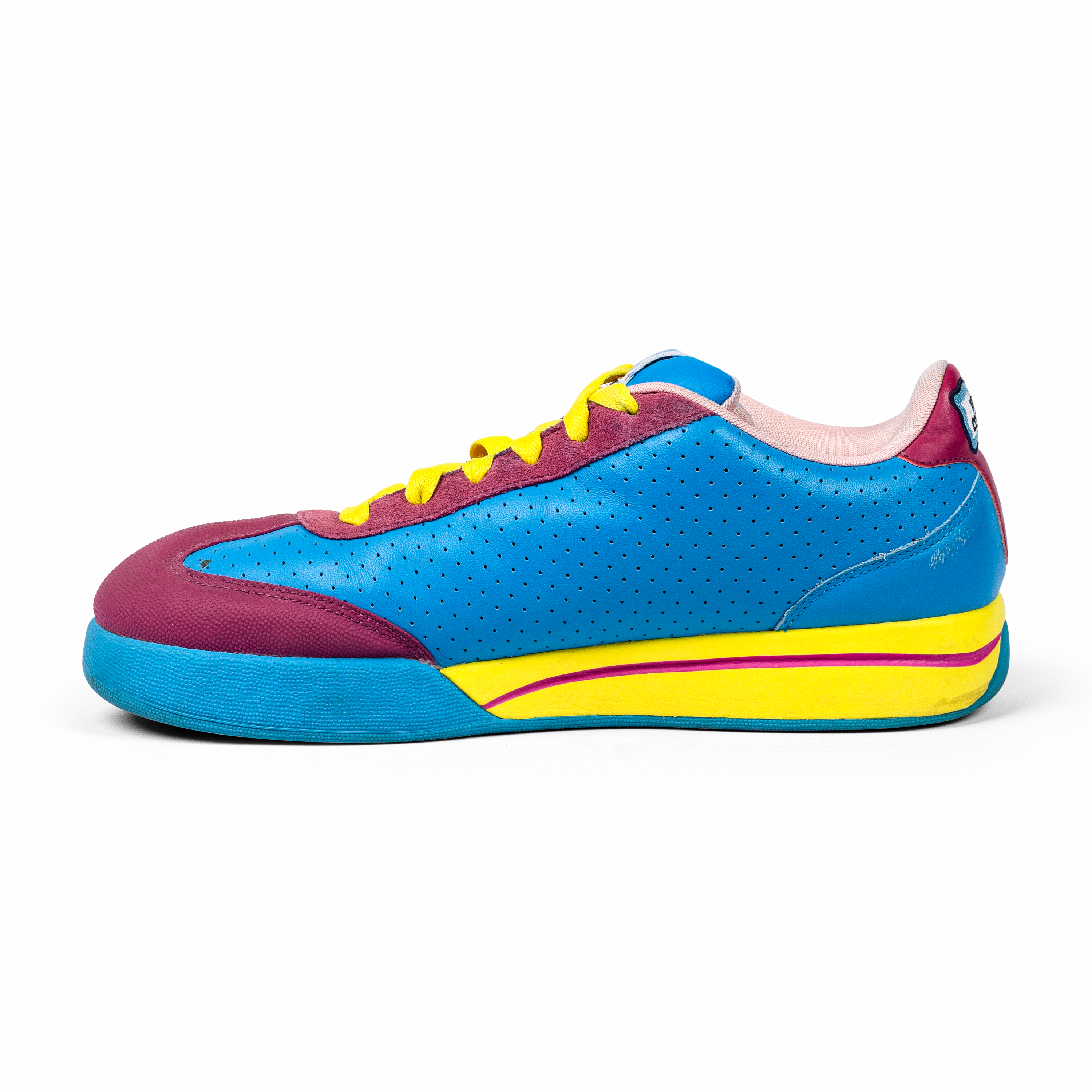 A rare triple-branded collaboration, these sneakers unite Billionaire Boys Club, Ice Cream, and Reebok and introduce one bold yet streamlined silhouette. Produced in shades of watermelon pink, blue, and yellow, the design embodies early-2000s color blocking and BBC’s playful luxury aesthetic. Lightweight yet expressive, the “Board Flip” captures the energy of Pharrell’s cross-brand creativity at its cultural and design peak.