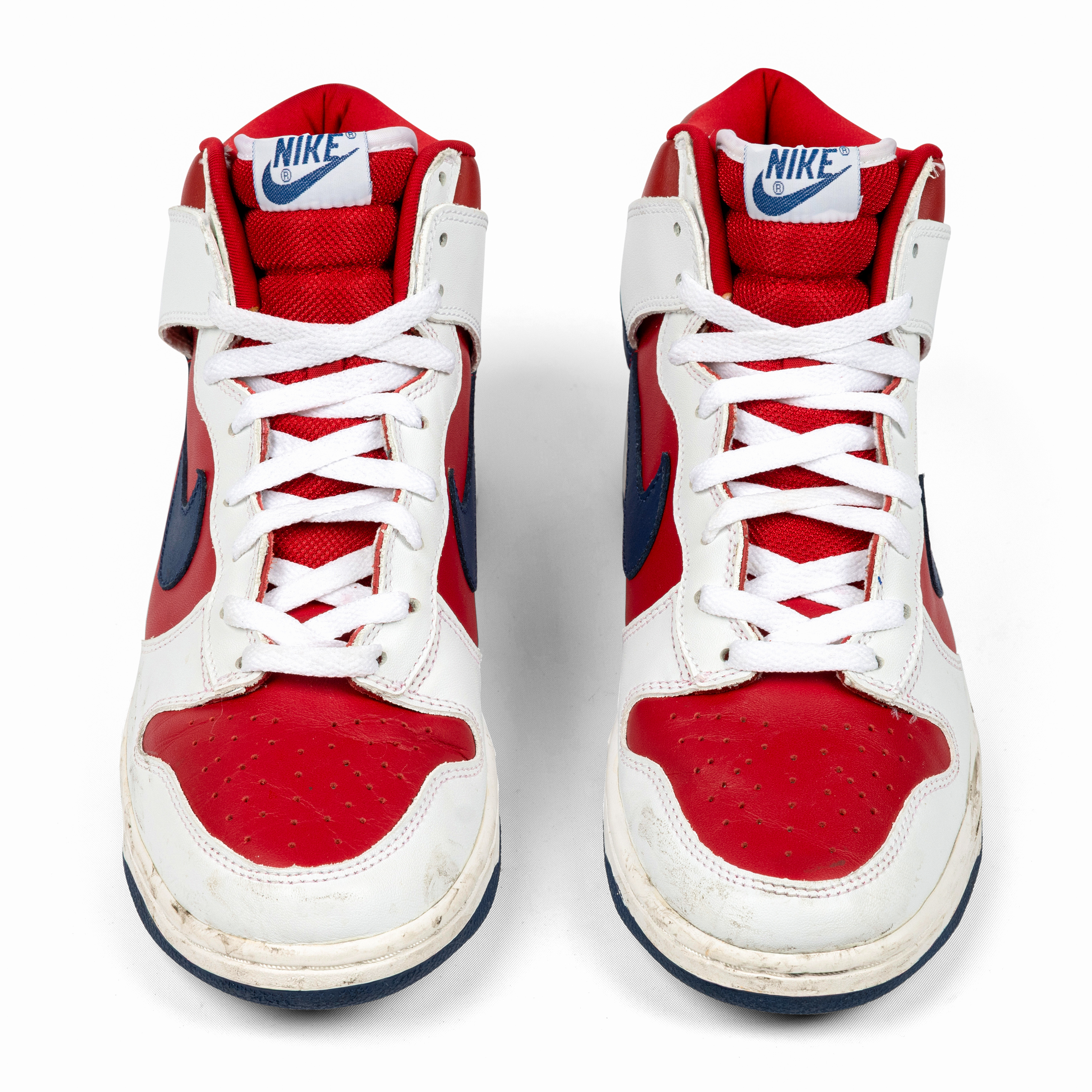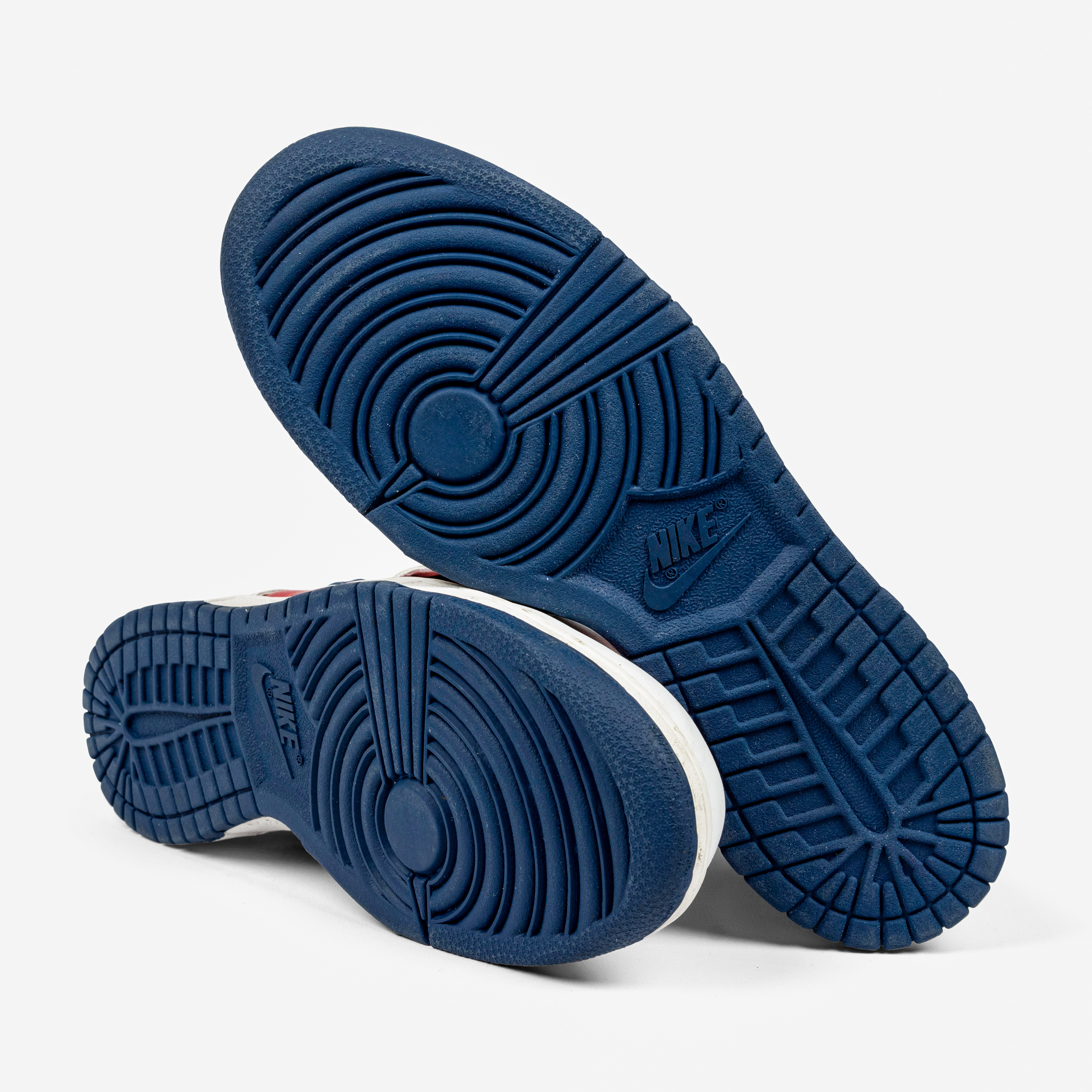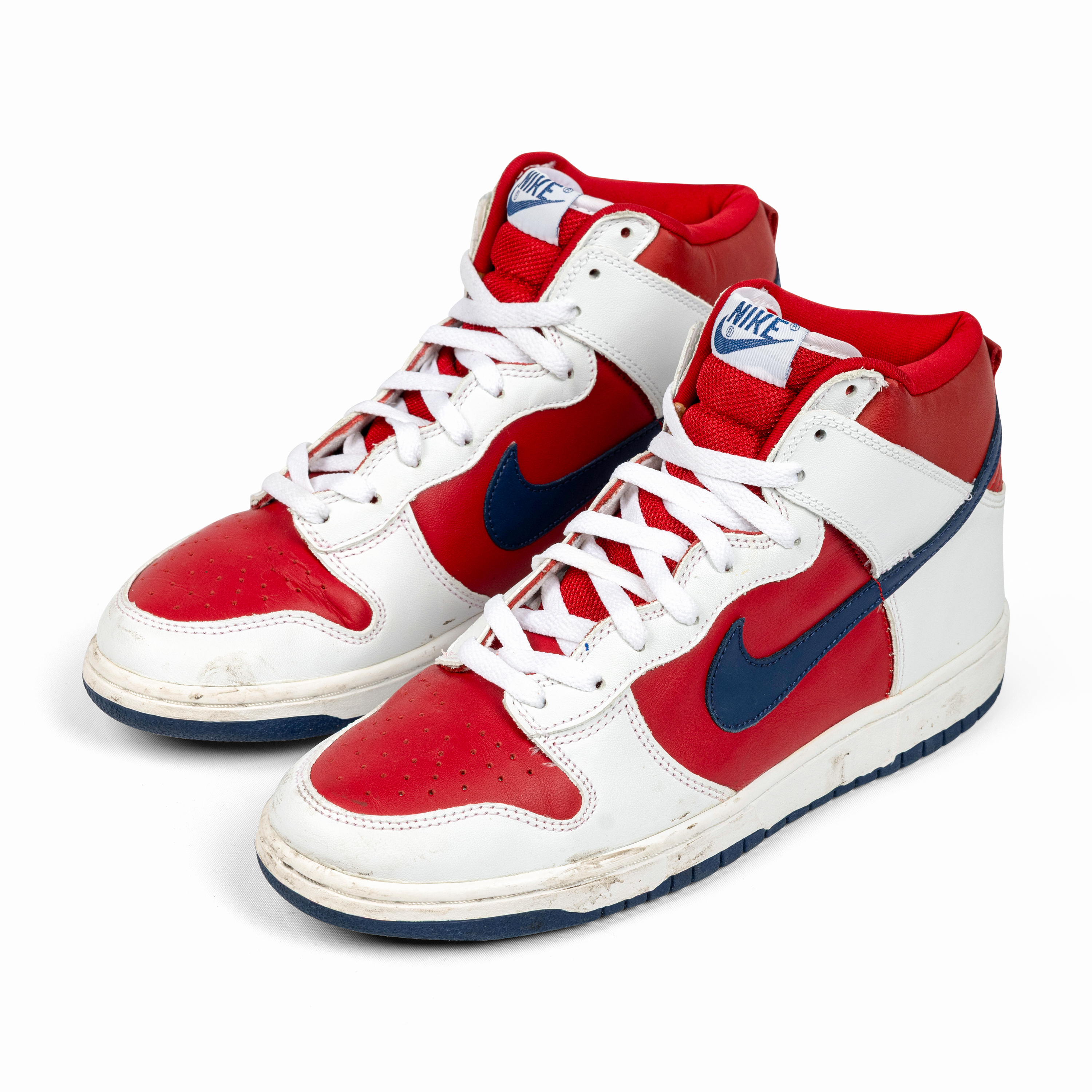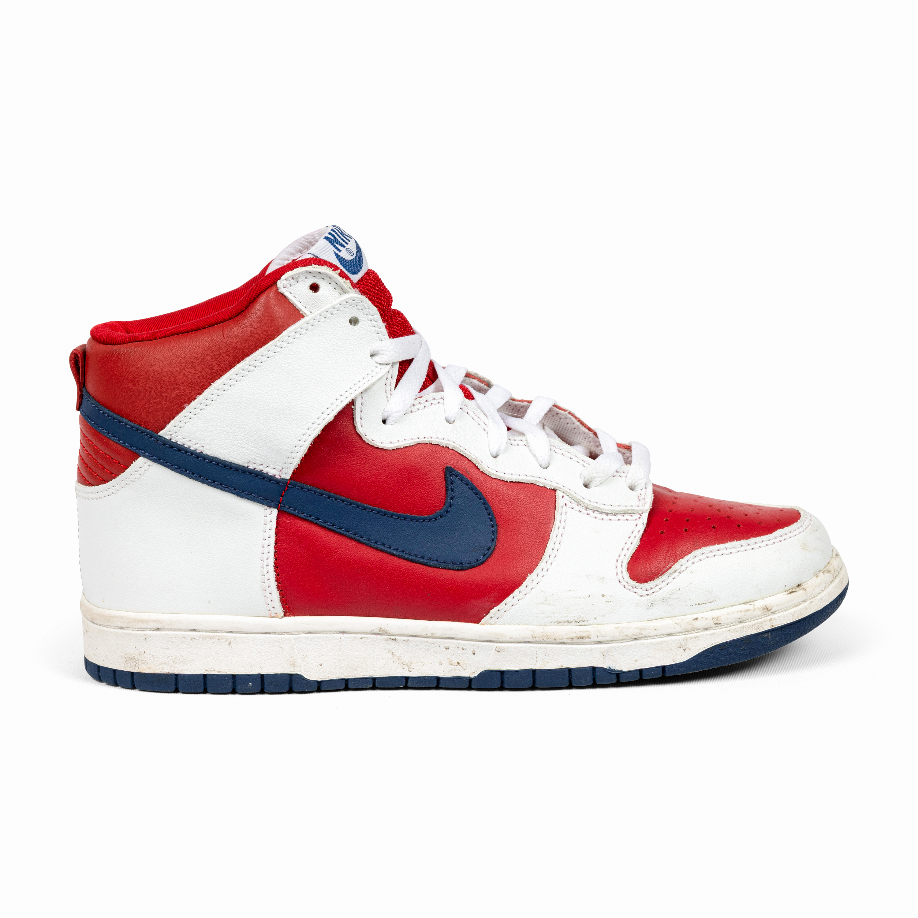 Released in 2002, the Nike Dunk High “Rapid Varsity Red” captures the energetic, experimental spirit of early-2000s colorways. The combination of red and white leather uppers, accented by blue swooshes and outsoles, gives this pair a vibrant, athletic appeal rooted in Dunk heritage.