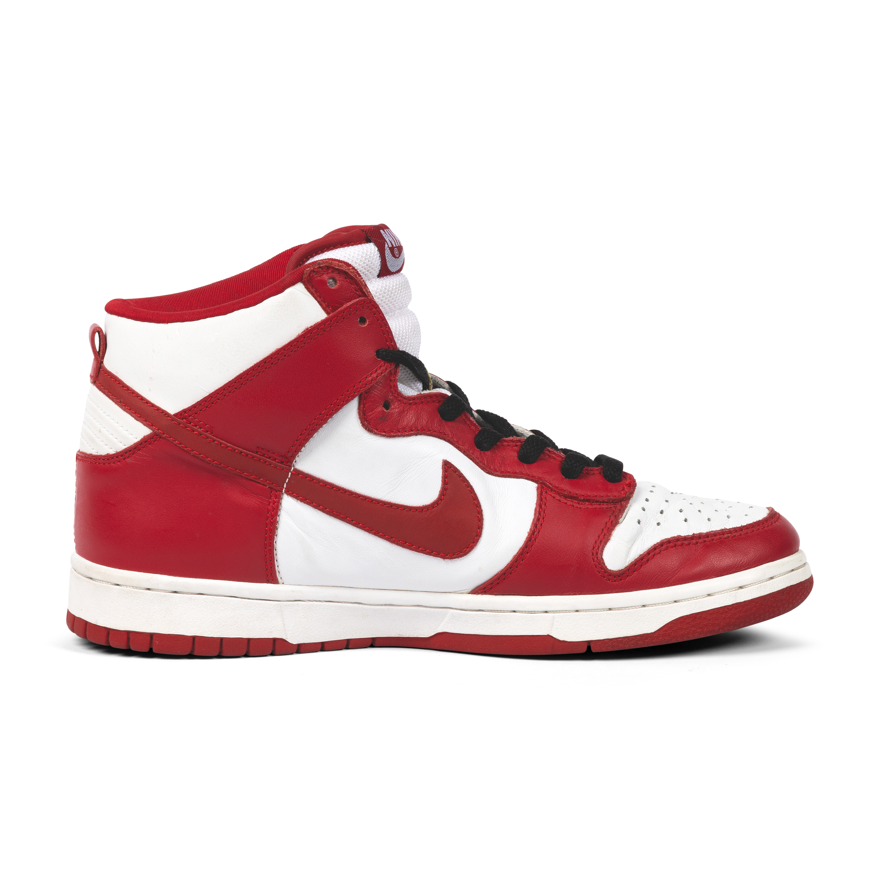 A continuation of Nike’s celebrated collegiate color series, these Dunk High “St. John’s” from 2002 feature red and white leather uppers inspired by St. John’s University. The design embodies the Dunk’s evolution from hardwood essential to cultural icon, bridging sport, streetwear, and design.