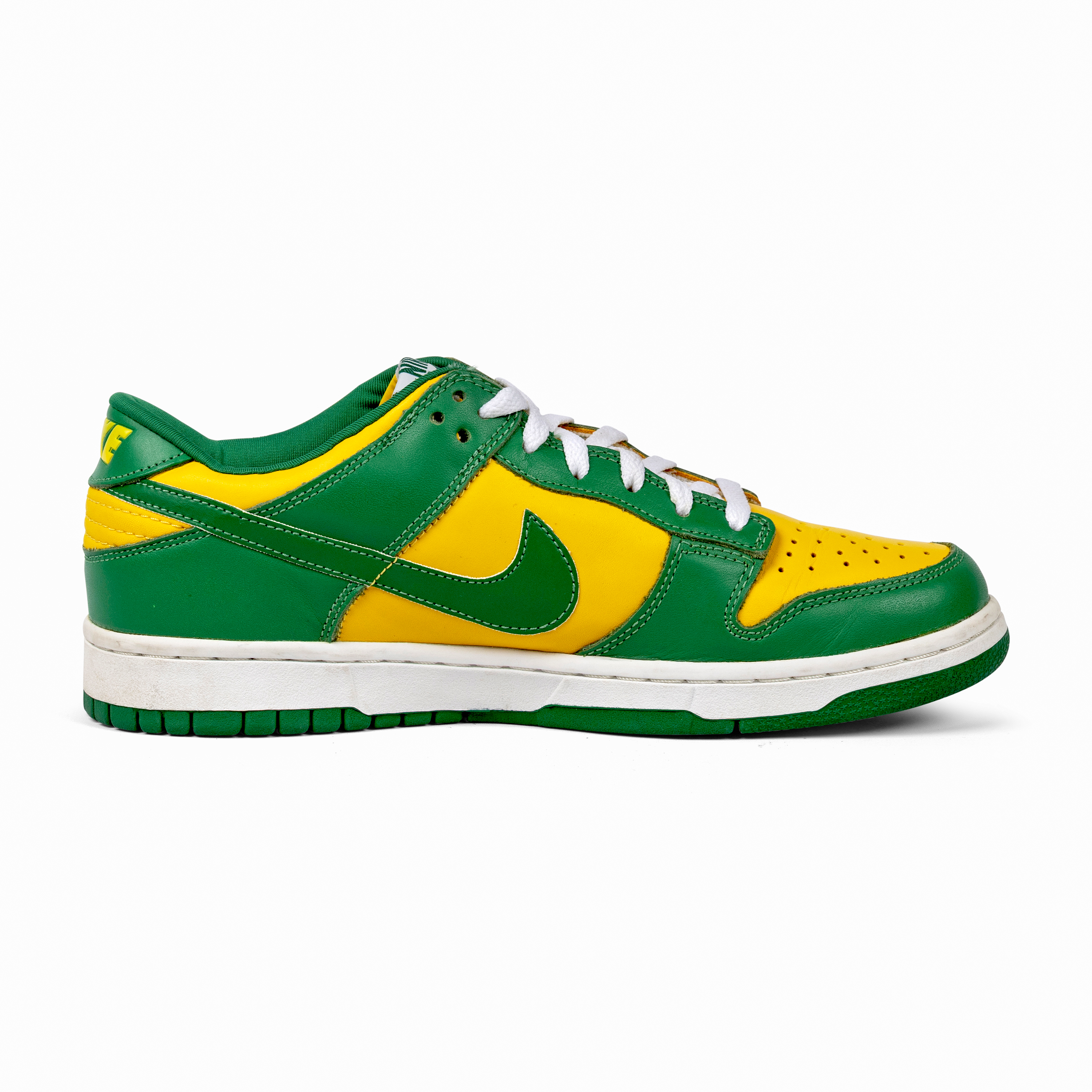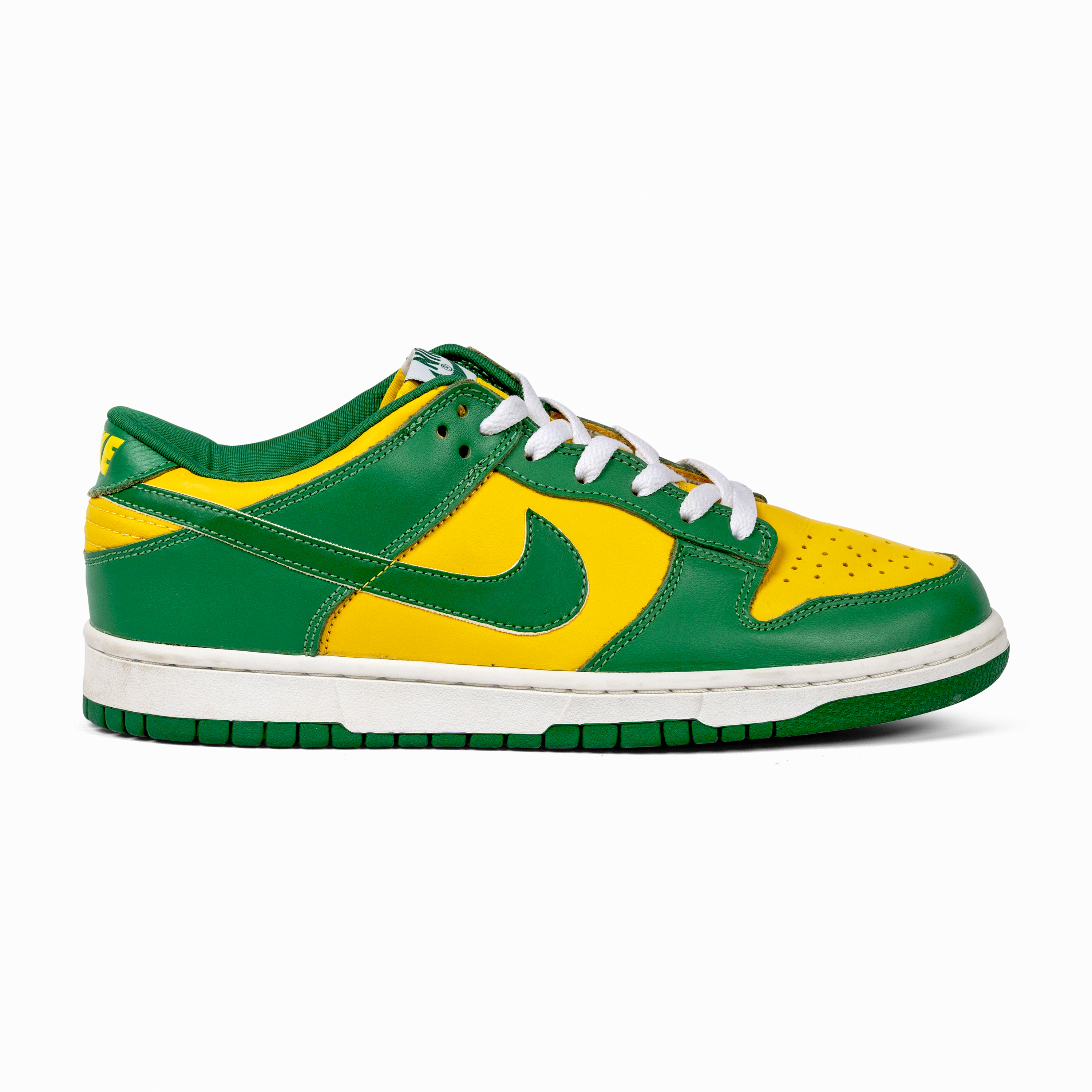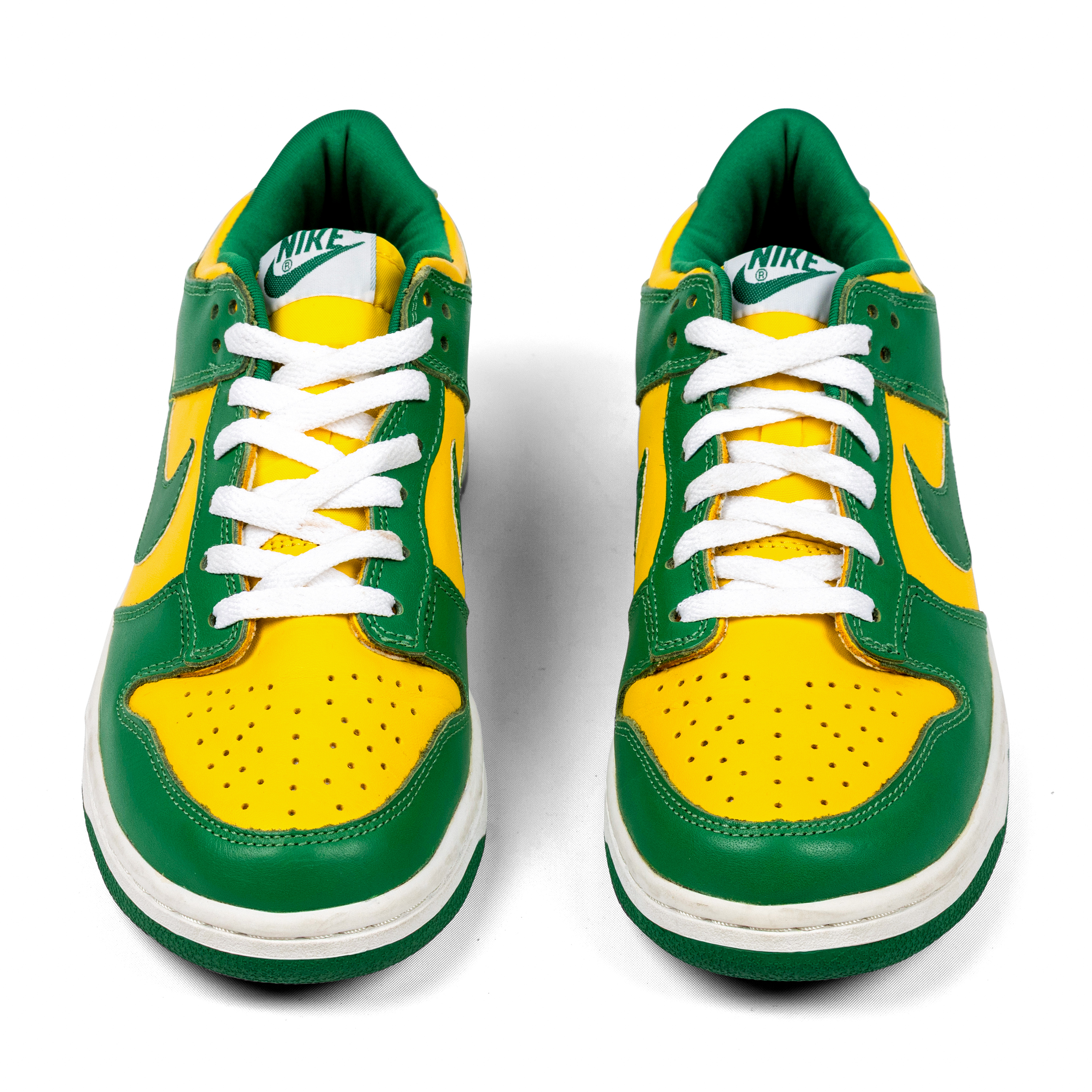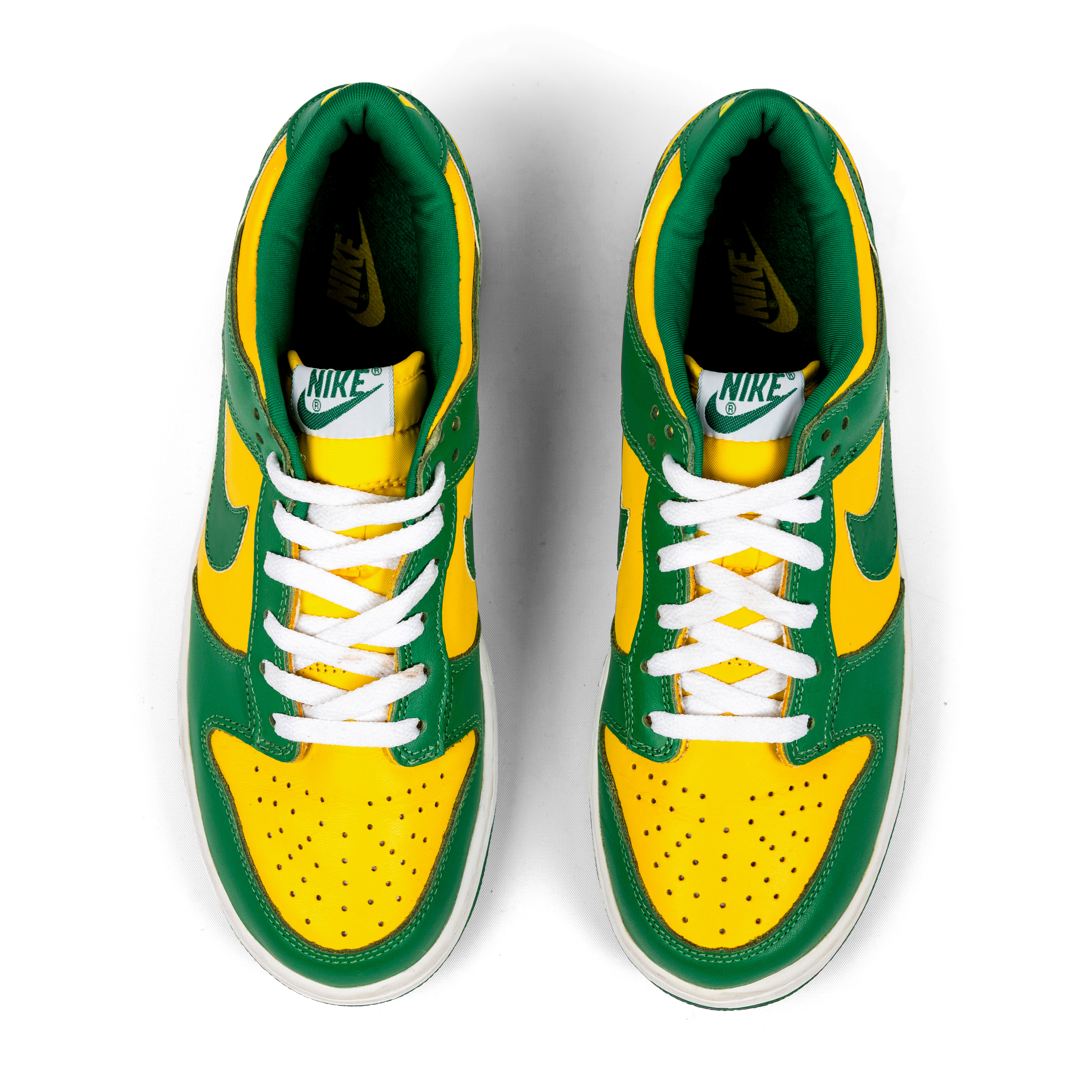 The bold colorway and balanced construction made it one of the standout Dunks of its era—now widely regarded as a grail among early collectors. The shoes were nicknamed “Brazil” after their bold colorway, which is officially Pine Green and Varsity Maize.