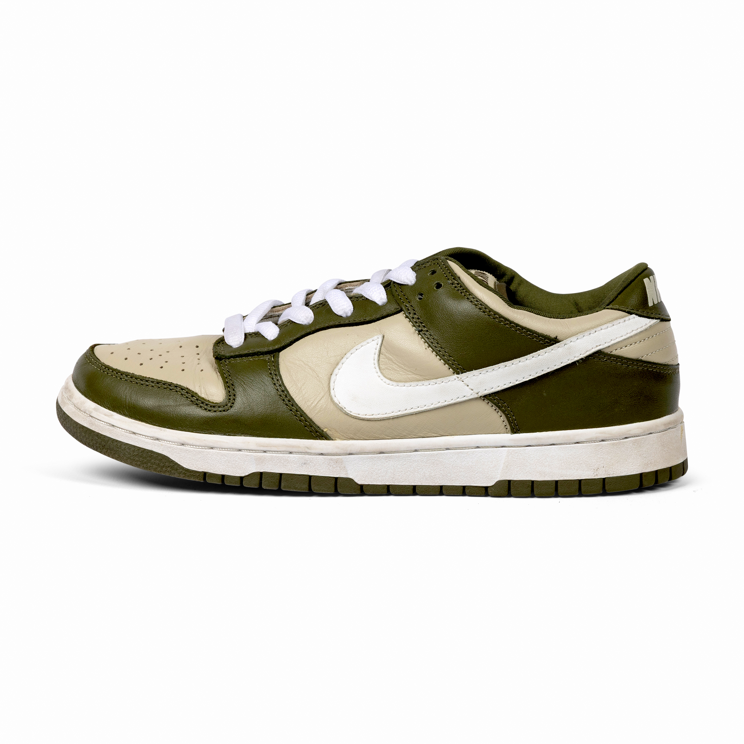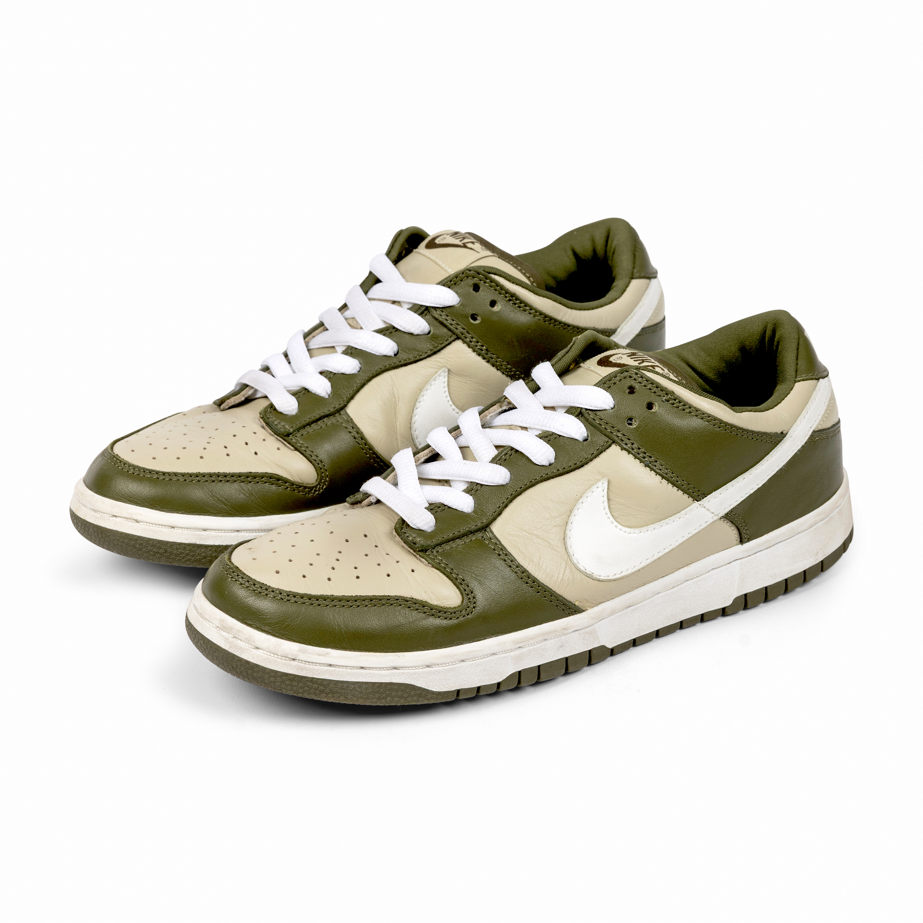 Released in 2002 as part of the Dunk Pro B line—an important precursor to Nike SB—the “Olive” colorway showcases layered tones of taupe, olive green, and white. Its padded tongues and rope laces embody the skate-oriented reengineering that would soon define the Dunk SB series.