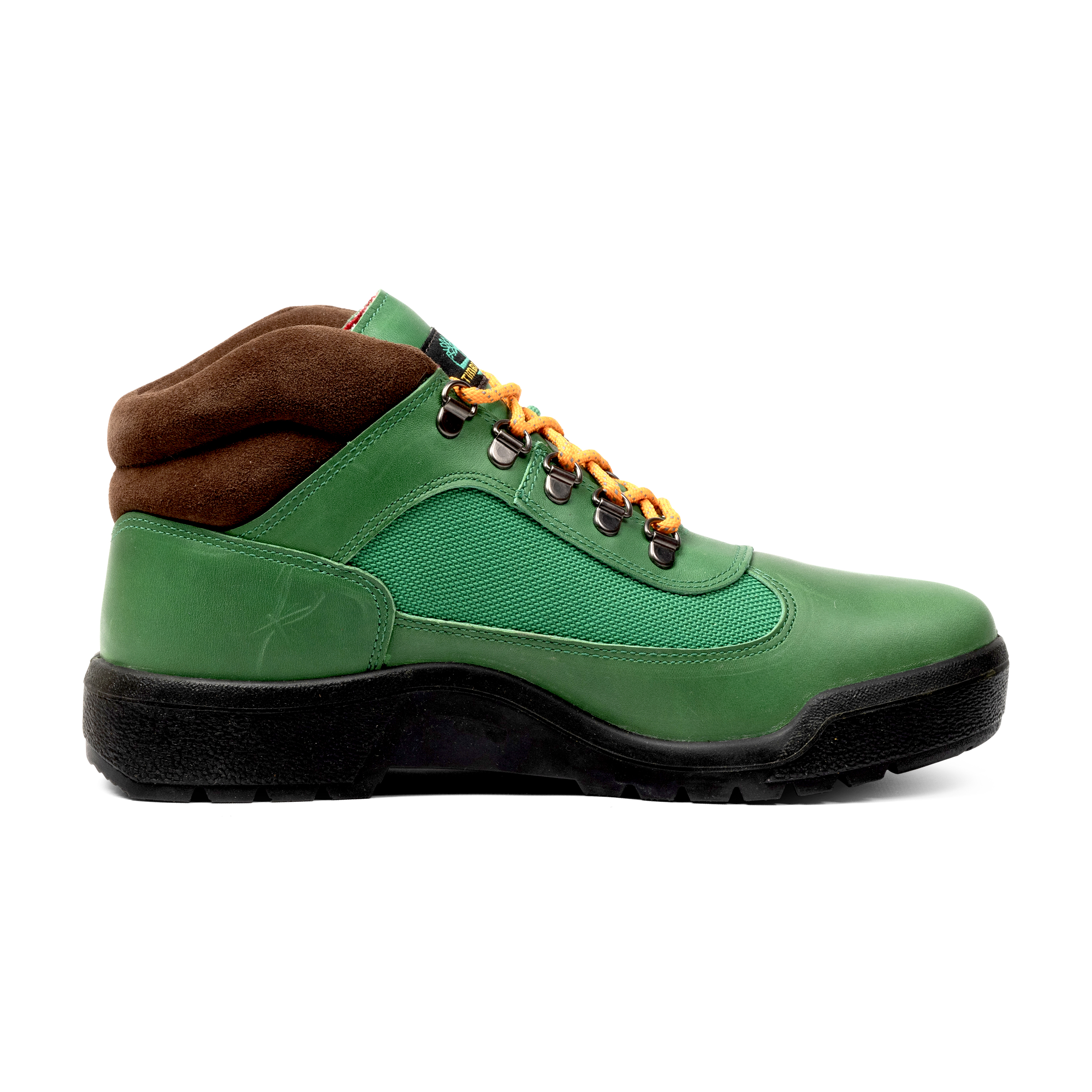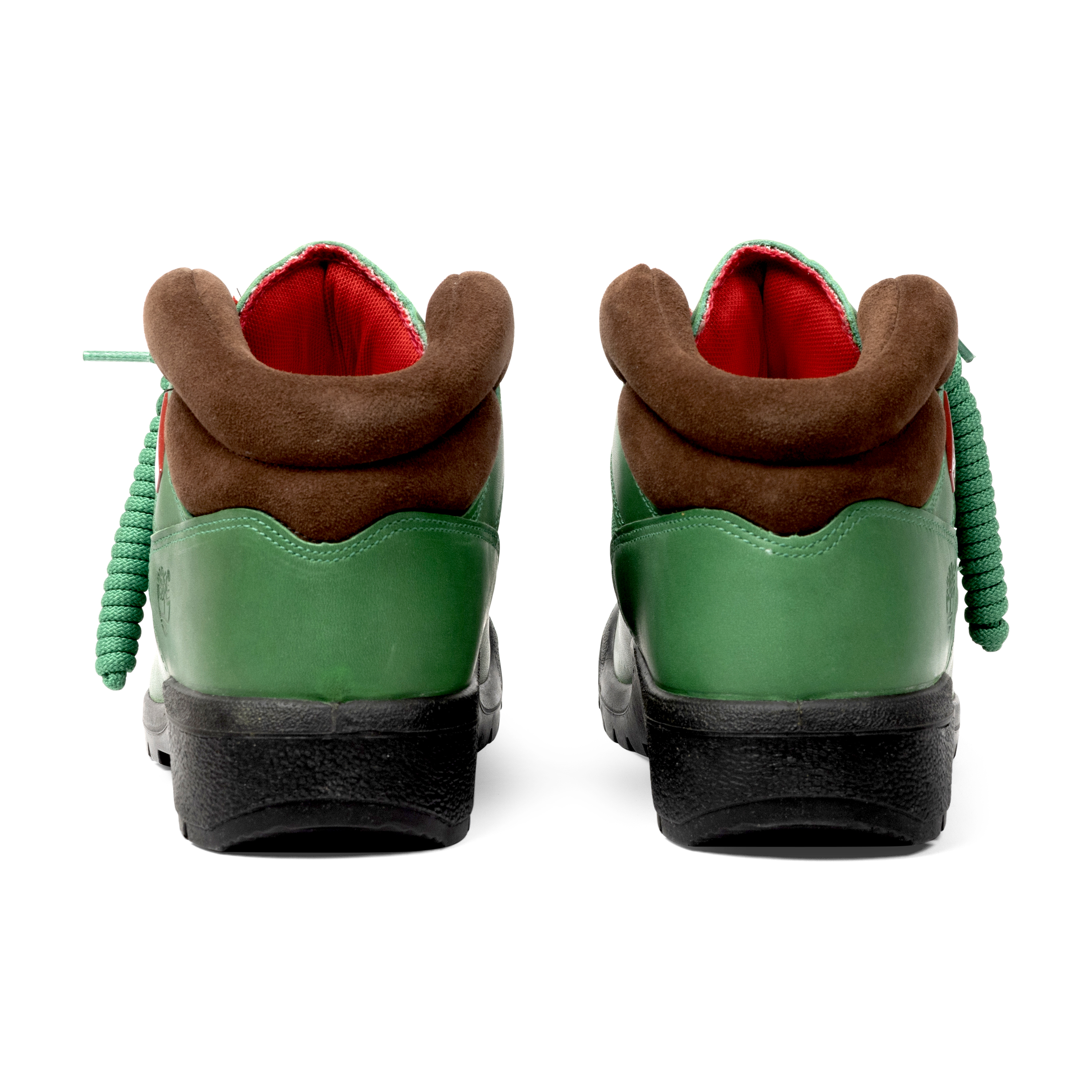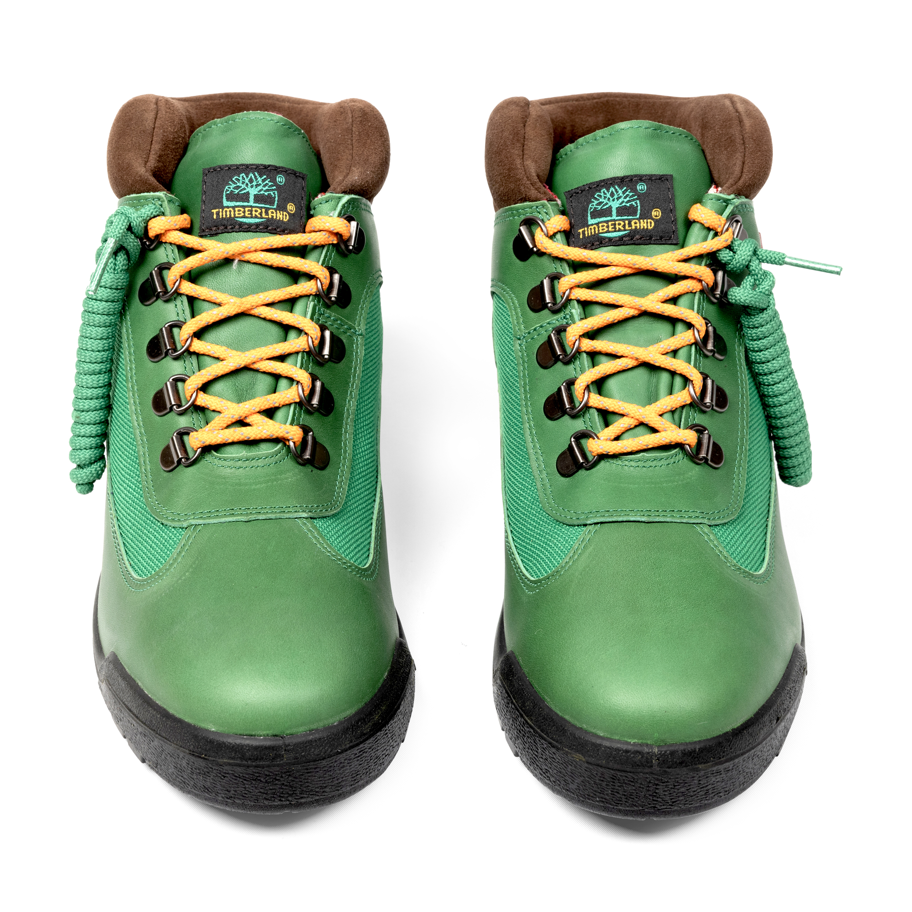 A bold reinterpretation of Timberland’s heritage hiking silhouette, this Supreme collaboration features a vivid green leather upper contrasted by orange laces and a deep brown padded collar. Blending utilitarian craftsmanship with streetwear flair, the design preserves Timberland’s rugged DNA while infusing it with Supreme’s unmistakable color-forward, urban sensibility. The result is a hard-to-find release that perfectly captures the intersection of function, fashion, and cultural influence.