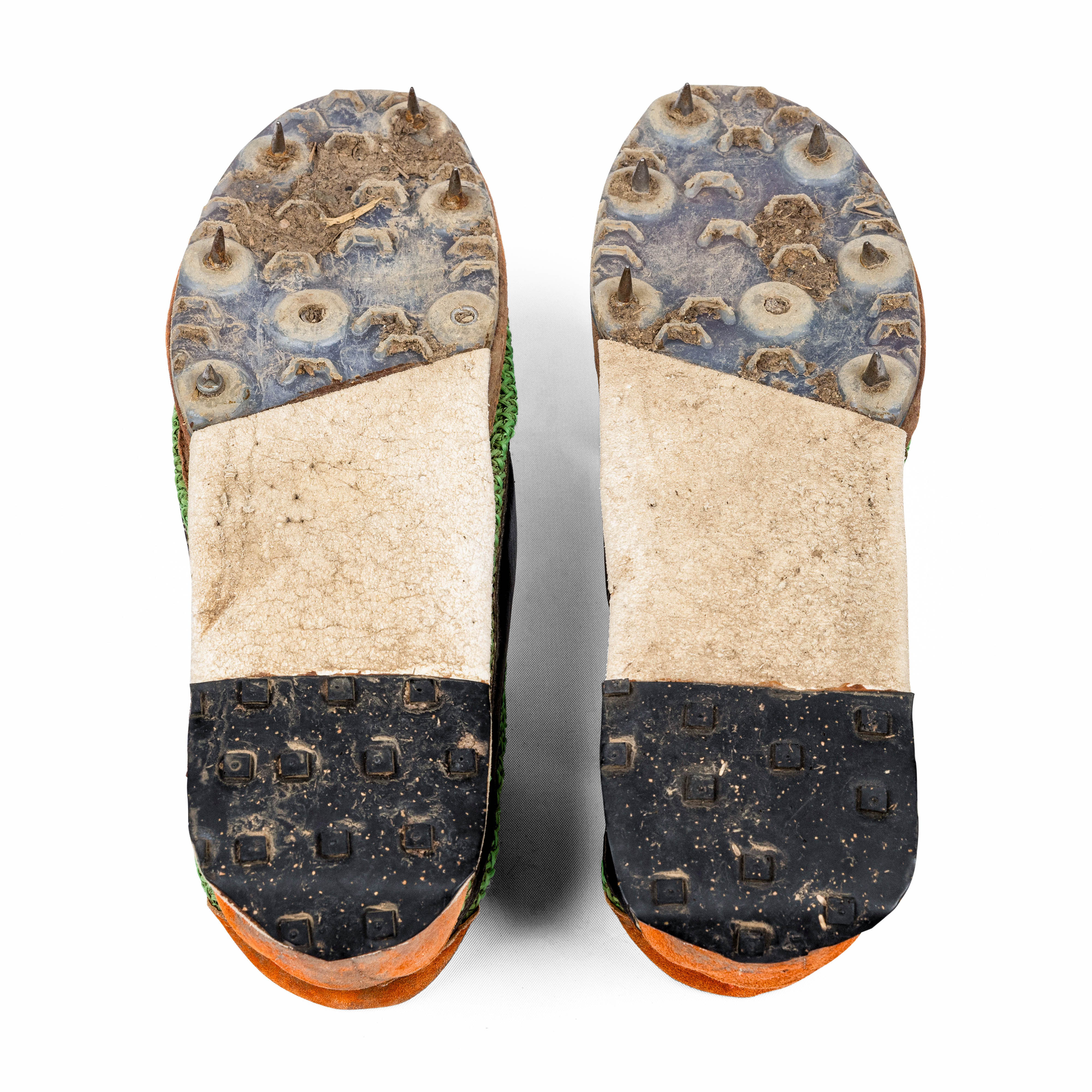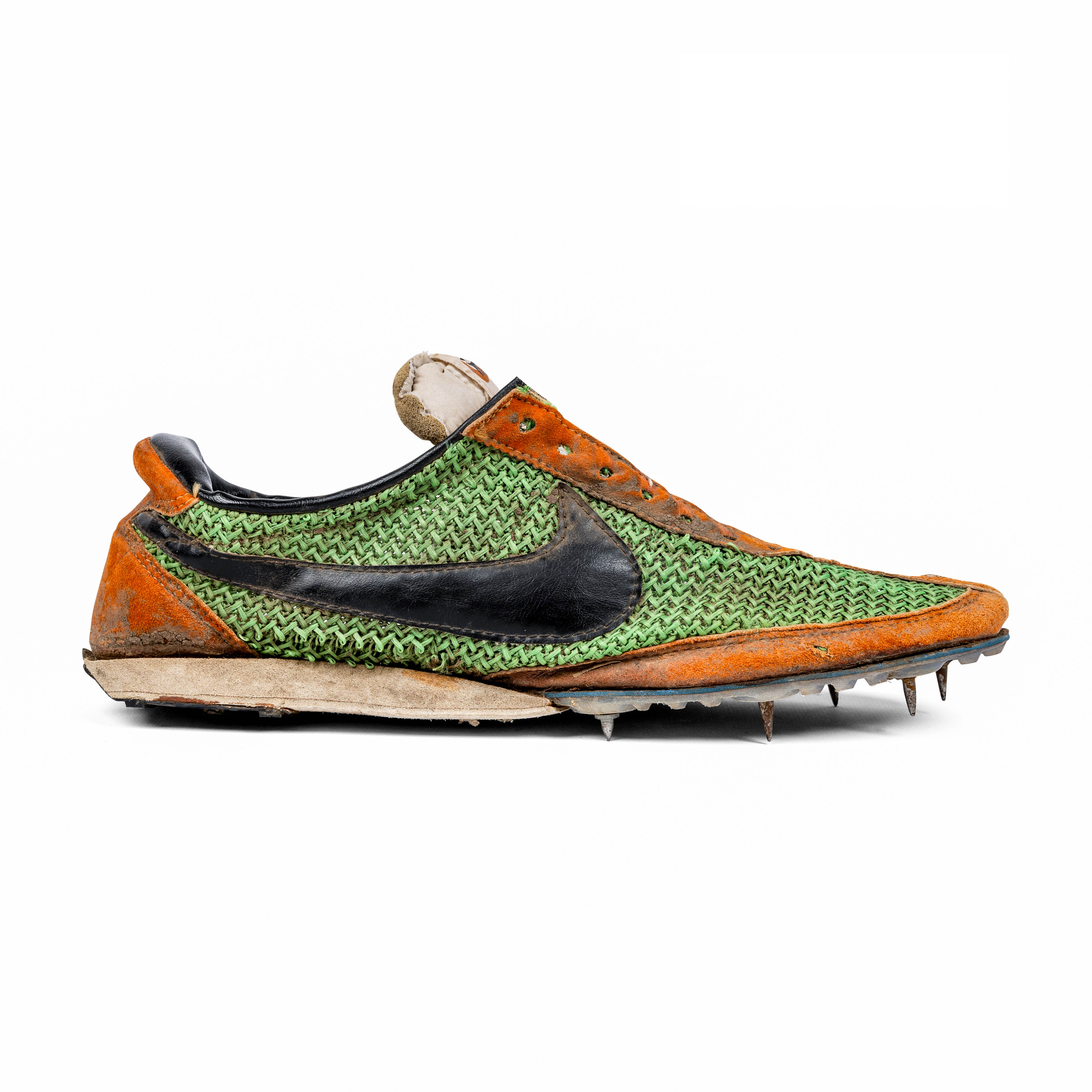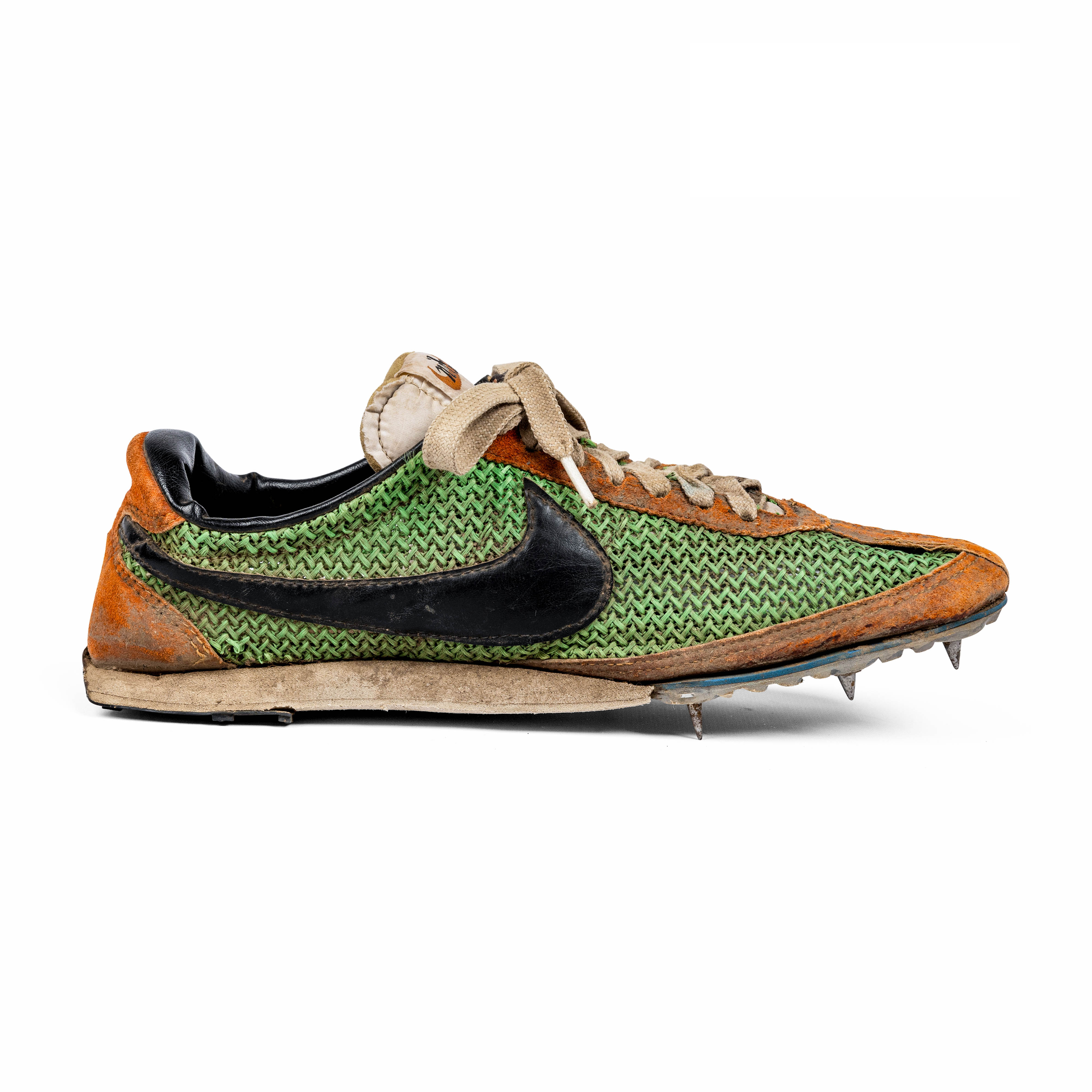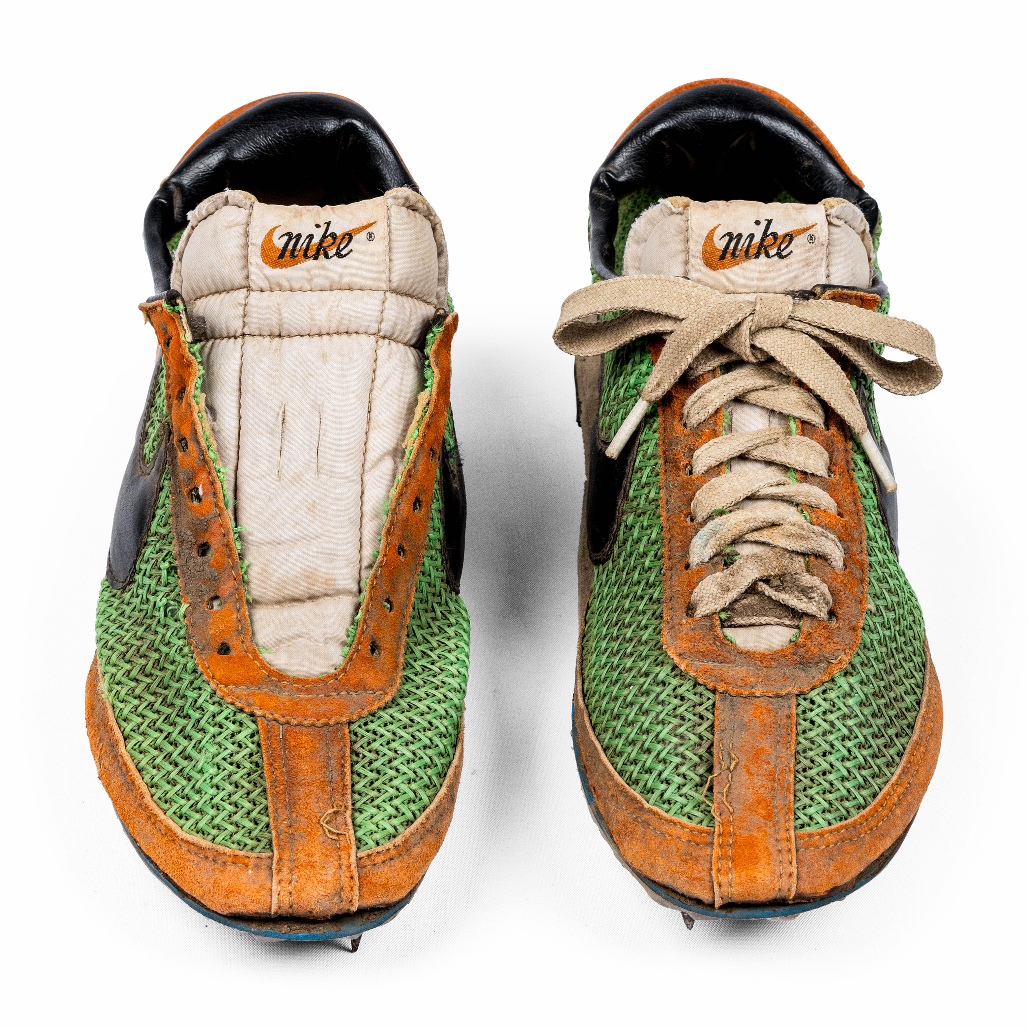 The waffle sole, famously conceived by Bowerman at the breakfast table while eating waffles with his wife, remains one of the most foundational design breakthroughs in sports footwear history. Bowerman was also known for retaining most of the custom spikes he made for his runners, often requesting that they be returned after competition, making surviving athlete-held examples exceptionally rare.
