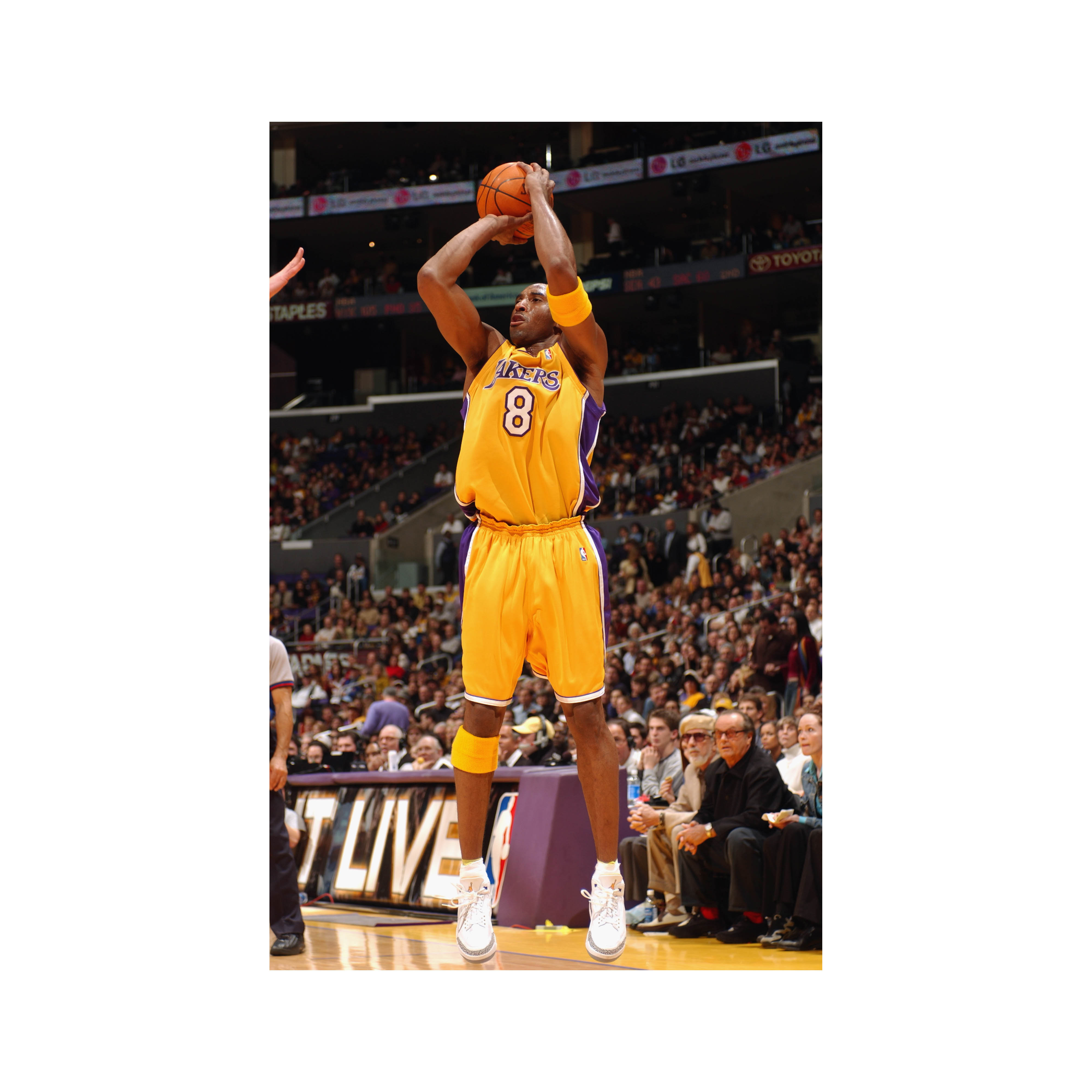 Bryant first wore this exact pair on February 14, 2003, against the San Antonio Spurs, recording 44 points, 6 rebounds, 4 assists, 4 steals, and 2 blocks.