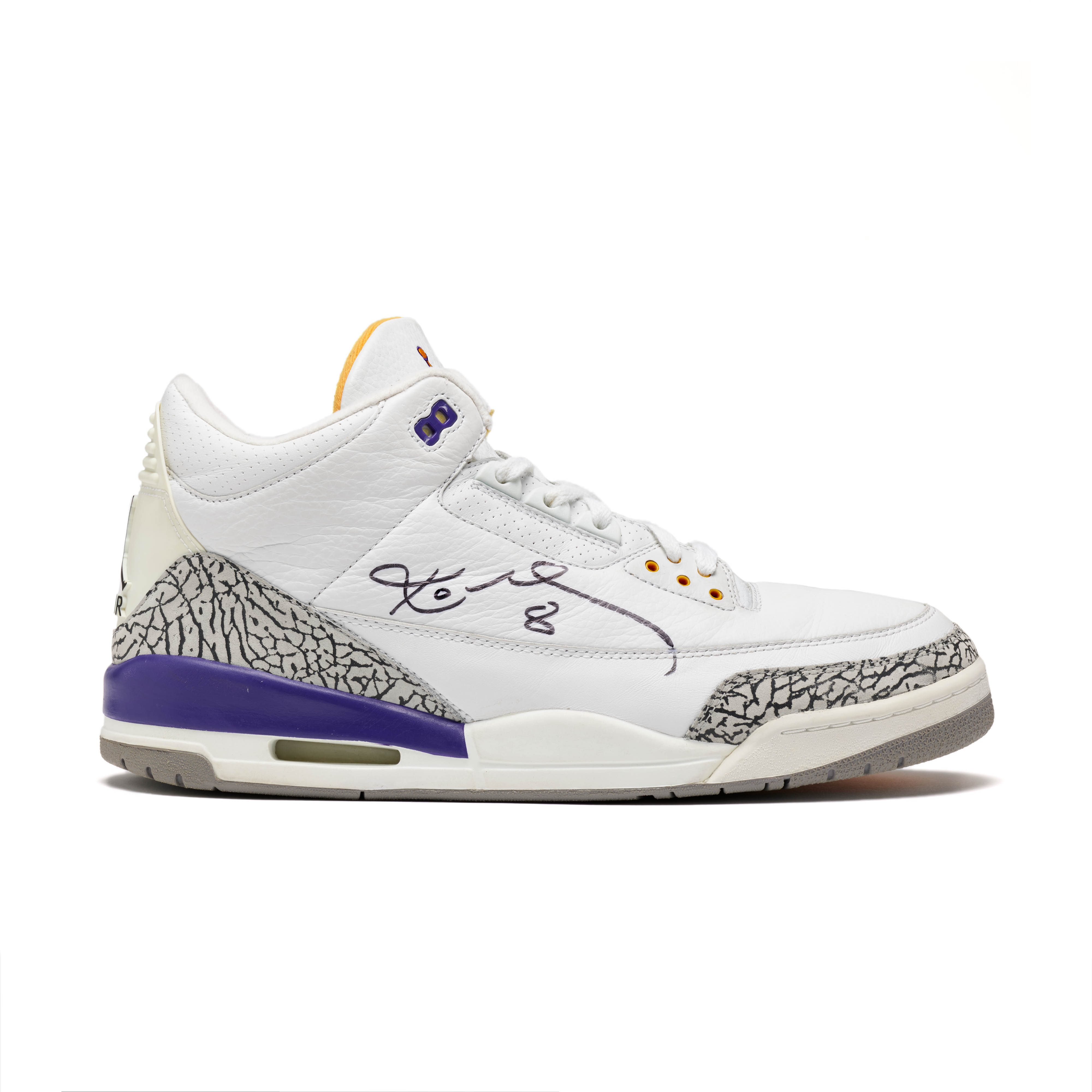 Within this context, game-worn, photo-matched examples from the Sneaker Free Agency era—particularly Air Jordan III Player Exclusives—represent the pinnacle of Kobe Bryant sneaker collecting.