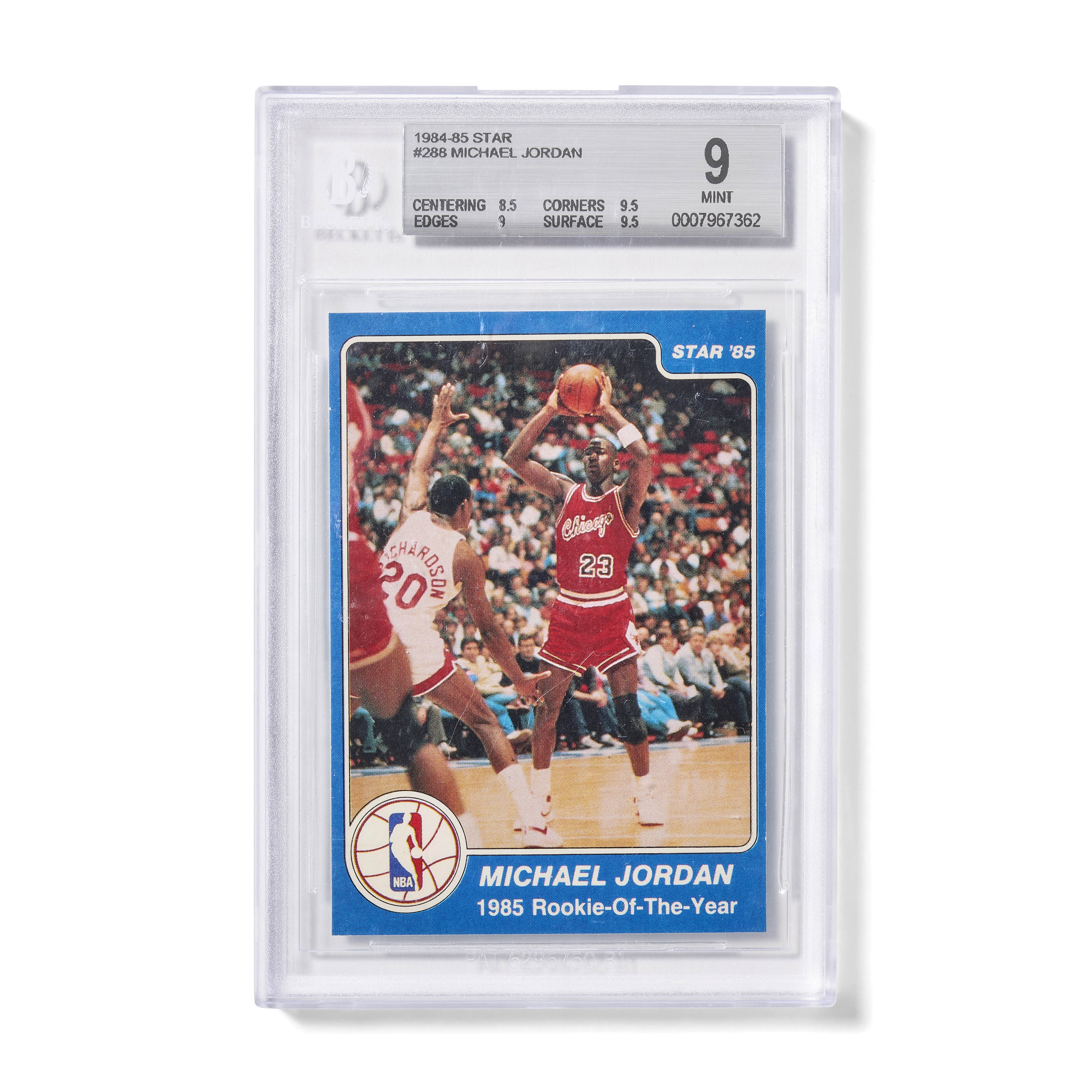 The 1984–85 Star #288 commemorates Michael Jordan’s Rookie of the Year season and was issued during his inaugural NBA campaign. It predates the iconic 1986–87 Fleer release by two years and is considerably rarer, enhancing its desirability among serious collectors.