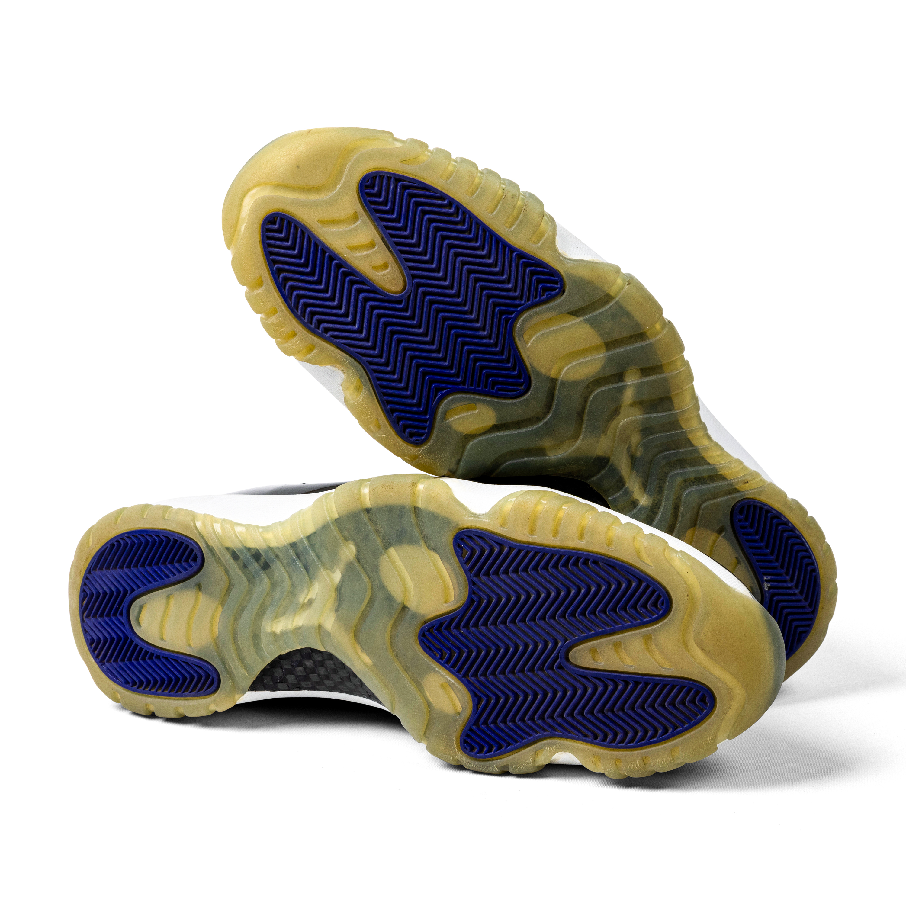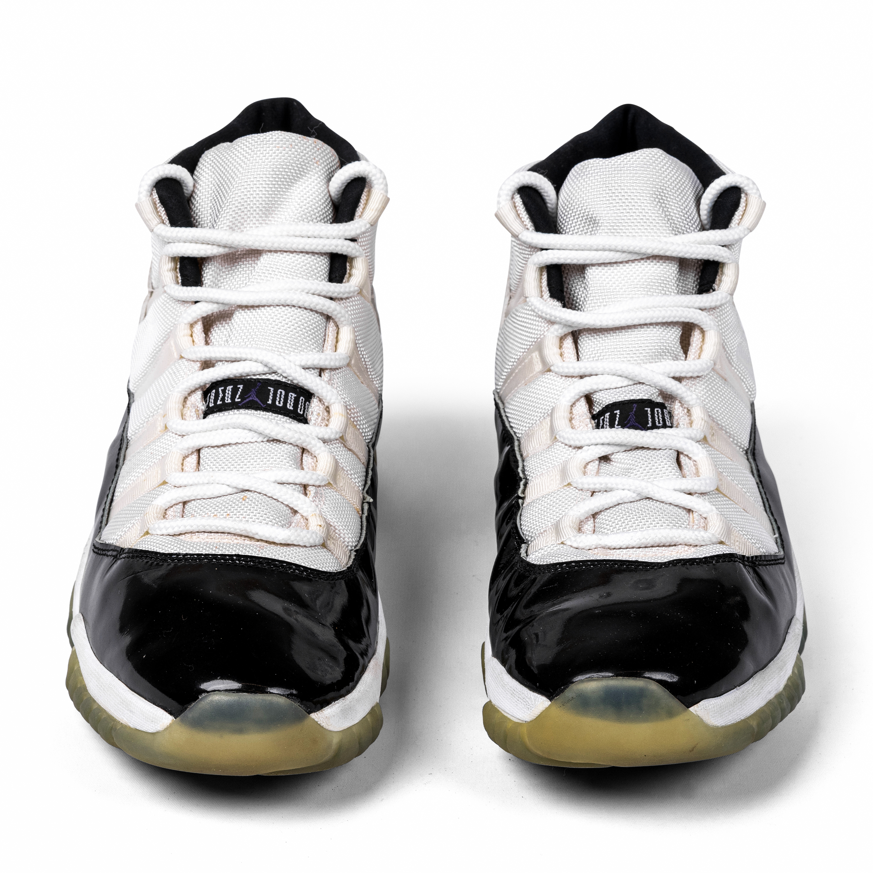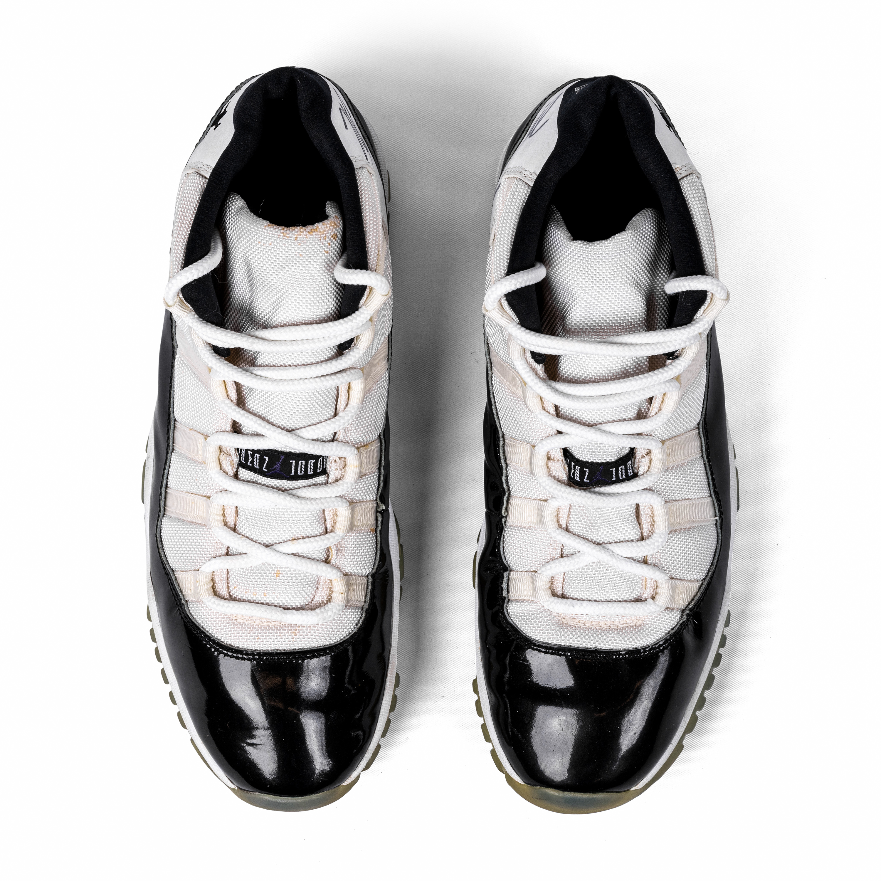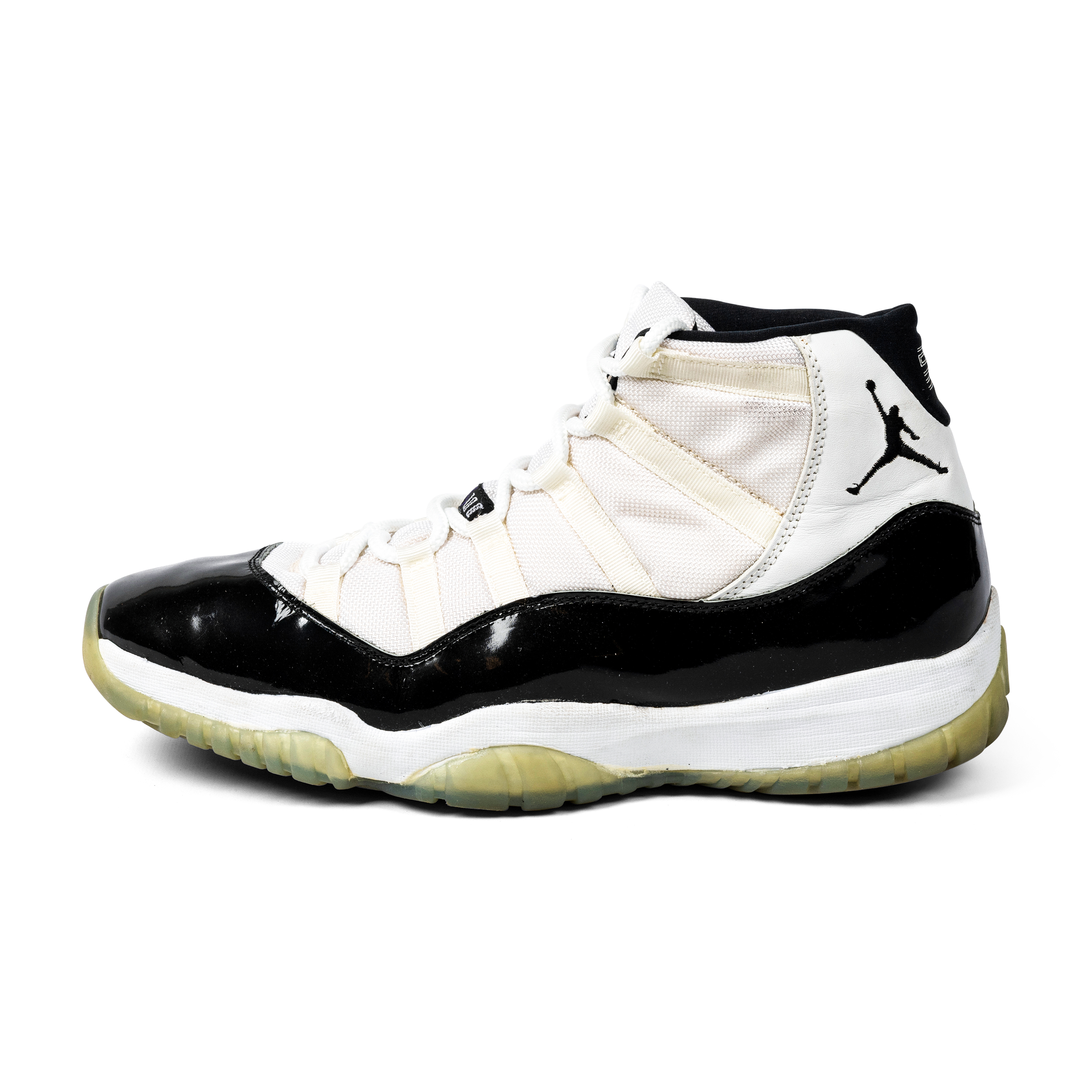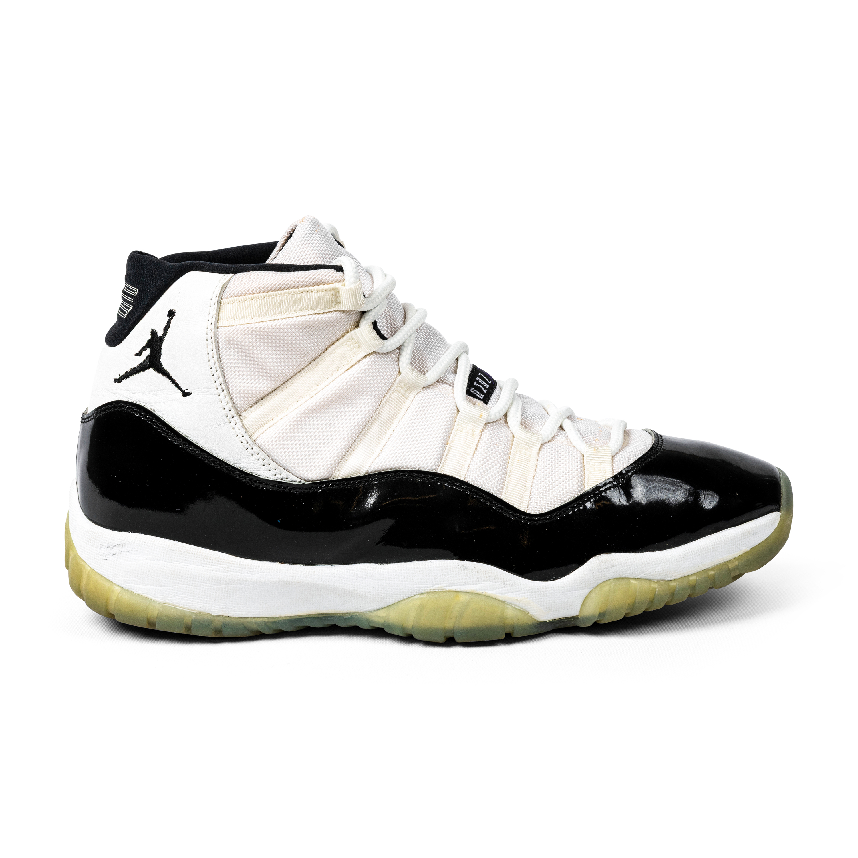 Designed by Tinker Hatfield, the Air Jordan 11 was the first Air Jordan to feature patent leather uppers and Carbon Fiber, making it an instant classic on and off the court. Tinker Hatfield and Michael Jordan have both said that the Air Jordan 11 is their favorite of all the Air Jordan models. The shoes have become highly coveted by sneaker collectors, with annual Nike December holiday releases since 2008 that sell out immediately. Nike has released the Concord Air Jordan 11s to the public in 1995, 2000, 2011, and 2018, but the original Player Sample pairs made for and worn by Michael Jordan remain the most valuable and historically significant.