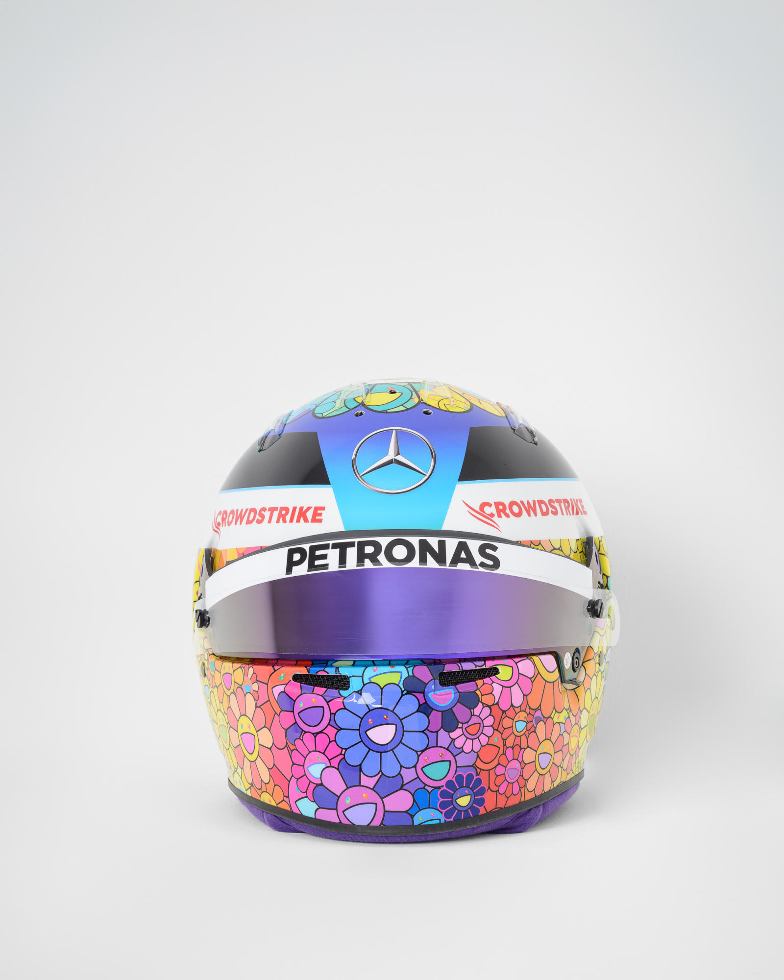 Worn by Lewis Hamilton in the Suzuka Japanese Grand Prix, this helmet was custom designed by Takashi Murakami for 2023 race.