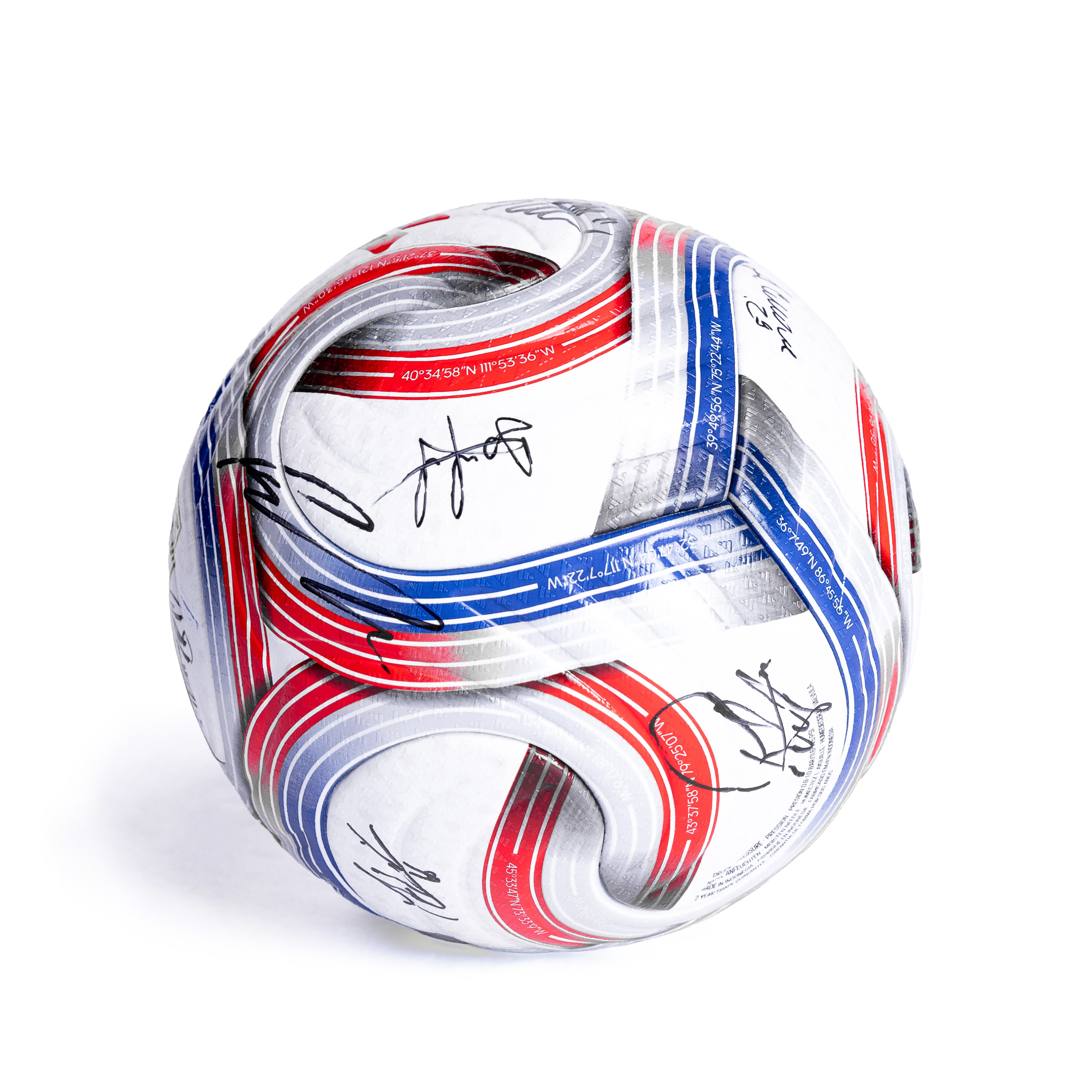 An official adidas MLS 2026 Pro Match Ball, featuring thermally bonded seamless construction and Pro-Quality certification for elite-level performance. This ball is signed by the LAFC 2026 roster, including Denis Bouanga, Hugo Lloris, Son Heung-Min, Ryan Hollingshead, Eddie Segura, Mark Delgado, Timothy Tillman, Sergi Palencia, and teammates across the squad.