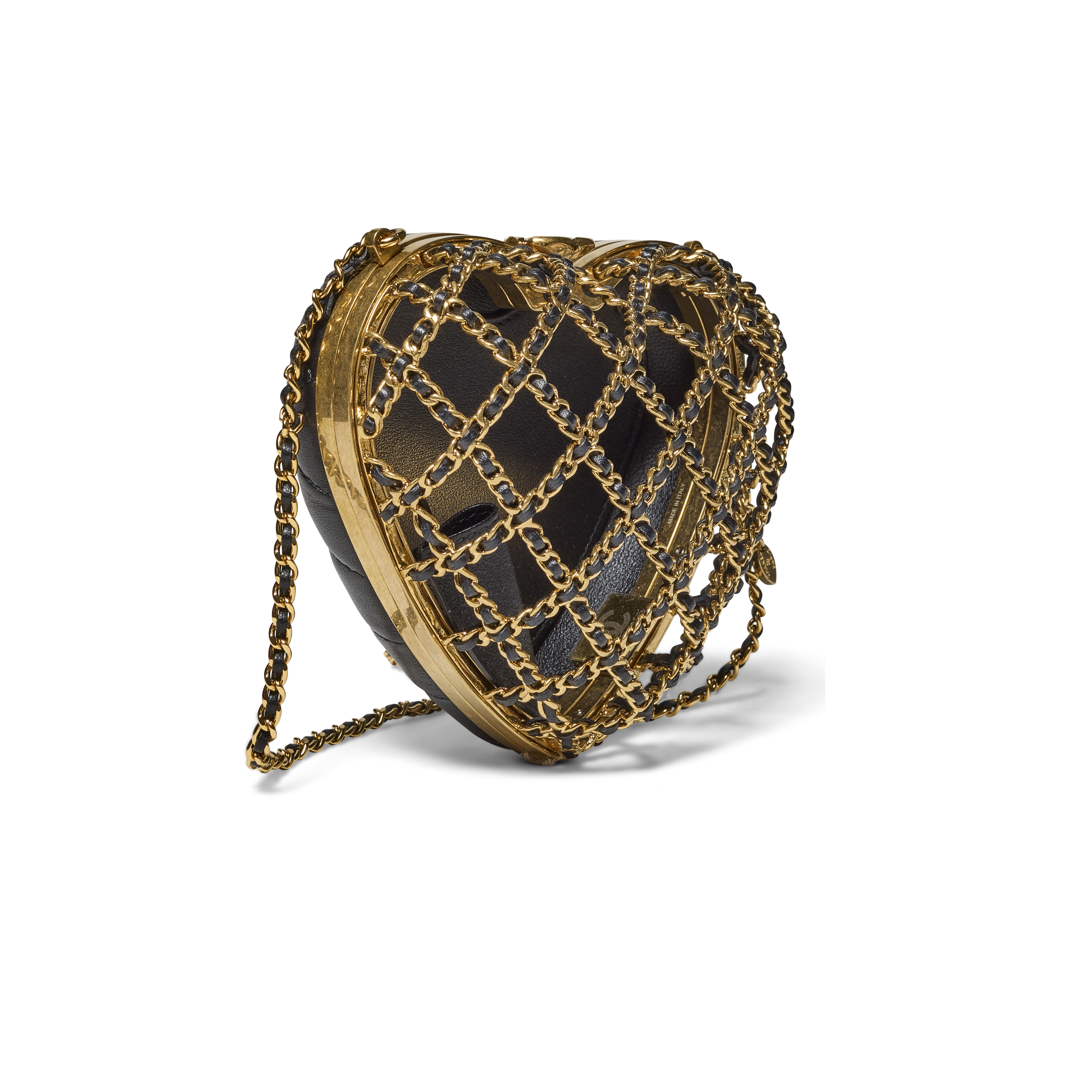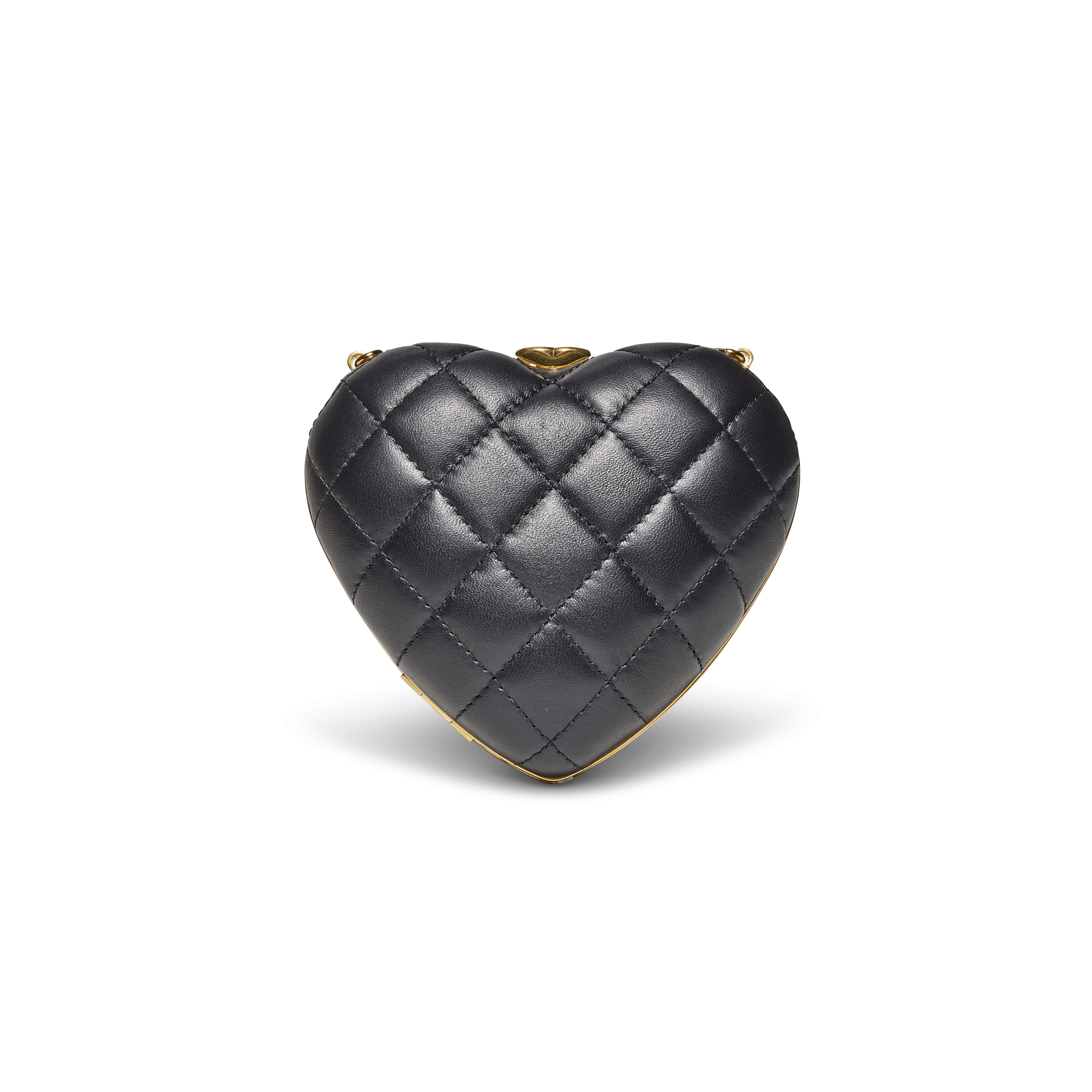 The Chanel Black Lambskin & Metal Heart Minaudière is a charming fusion of whimsy and refined craftsmanship. Its sculptural heart-shaped silhouette pairs smooth leather with polished metal accents, creating a striking balance of softness and structure. Finished with signature Chanel detailing, it offers a playful yet elegant statement that captures the Maison’s flair for iconic, collectible designs.