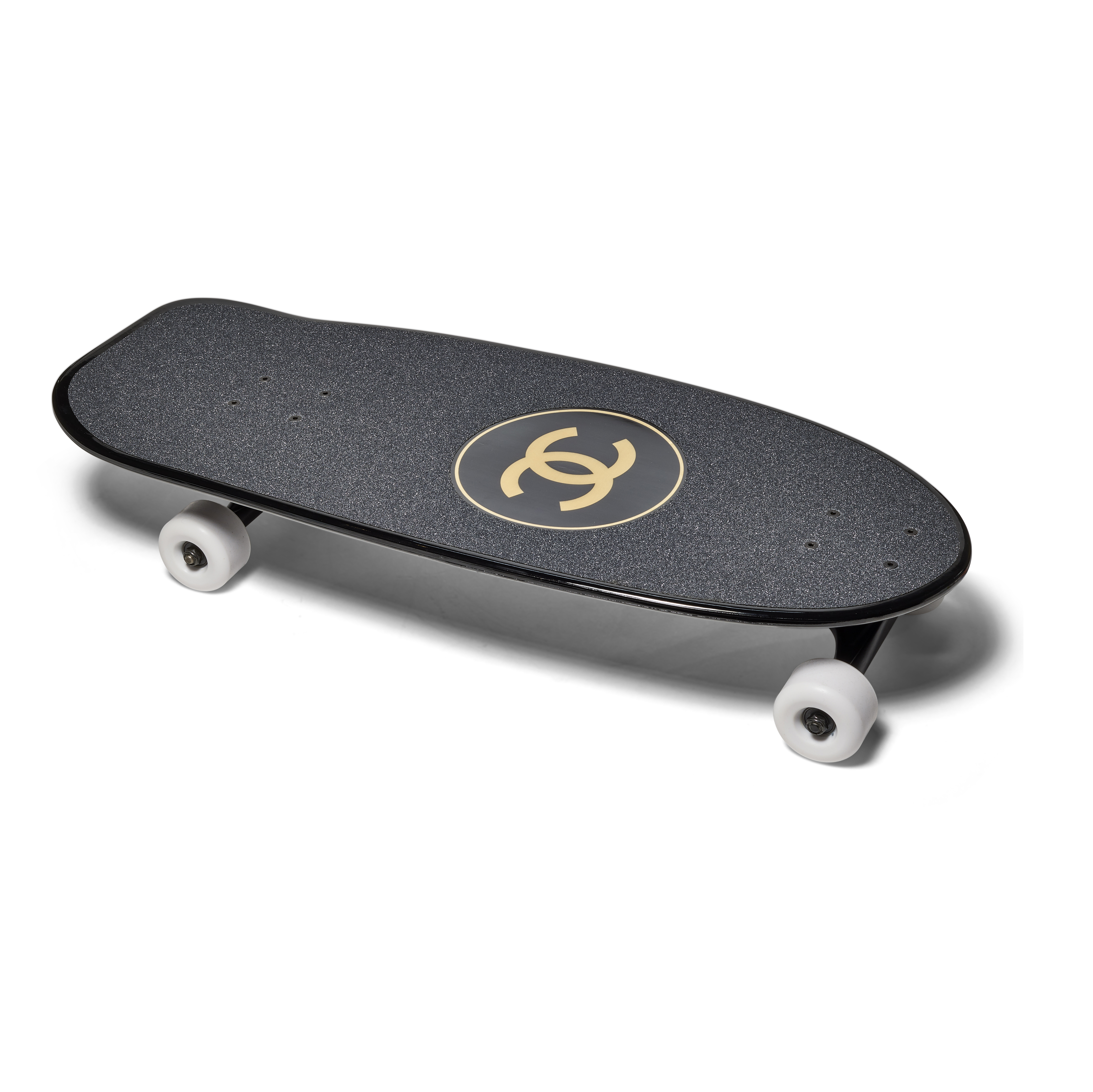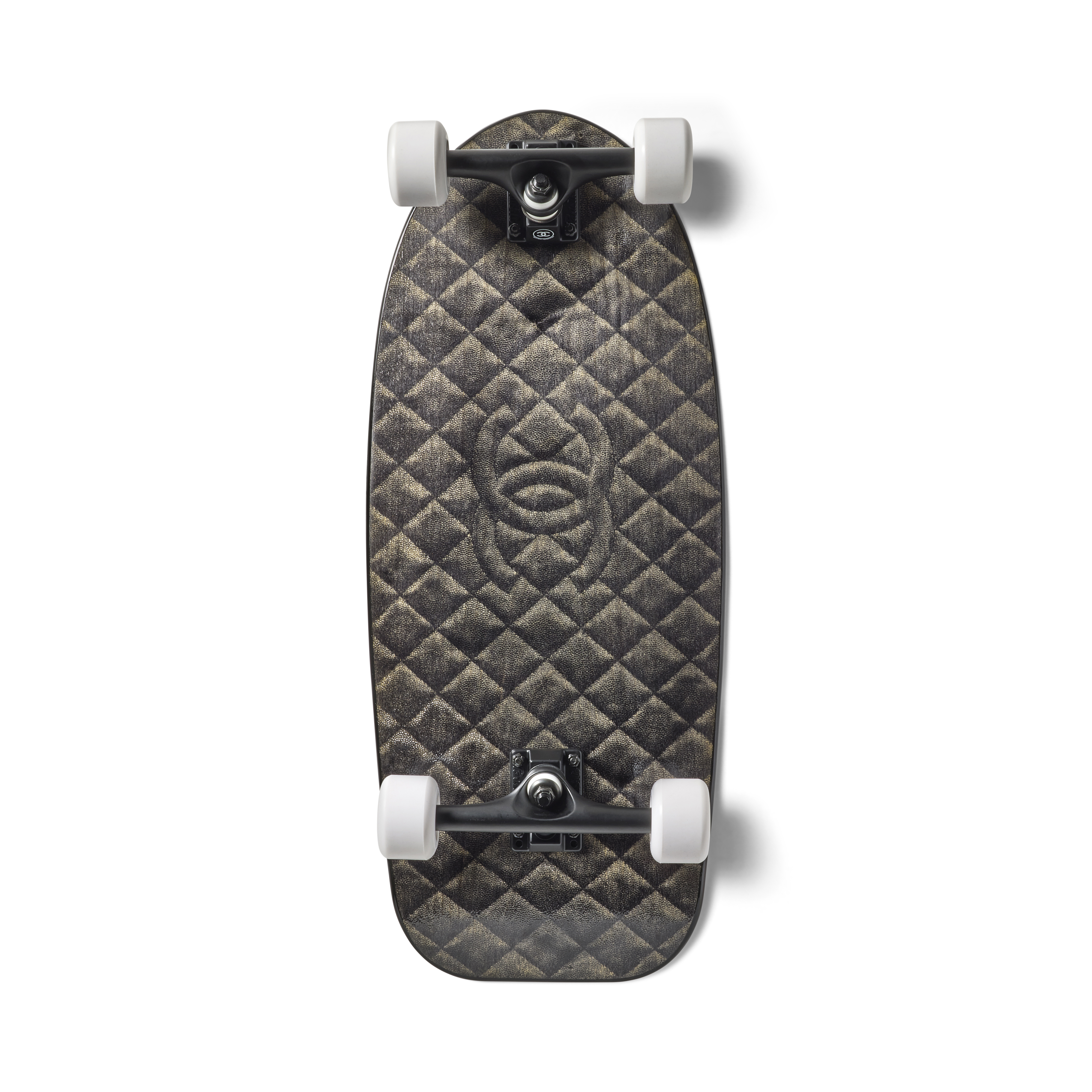The Chanel Black Monogram Skateboard is a striking fusion of luxury craftsmanship and street sport aesthetics. Its sleek black top is adorned with interlocking white Cs, while the underside showcases a quilted pattern that nods to Chanel’s most iconic design codes. Bold, refined, and highly collectible, it elevates a classic skateboarding silhouette into a remarkable expression of the brand’s innovative spirit.