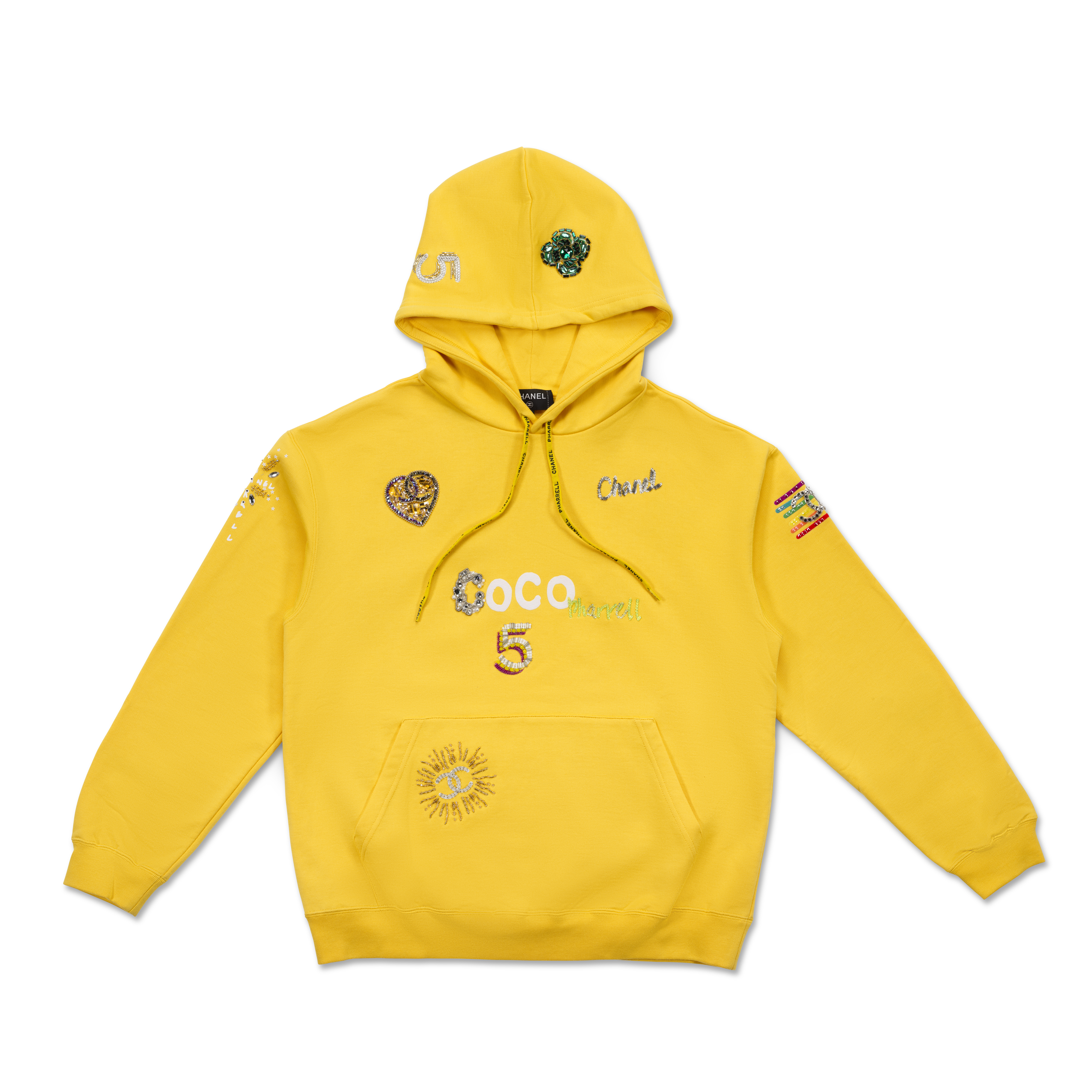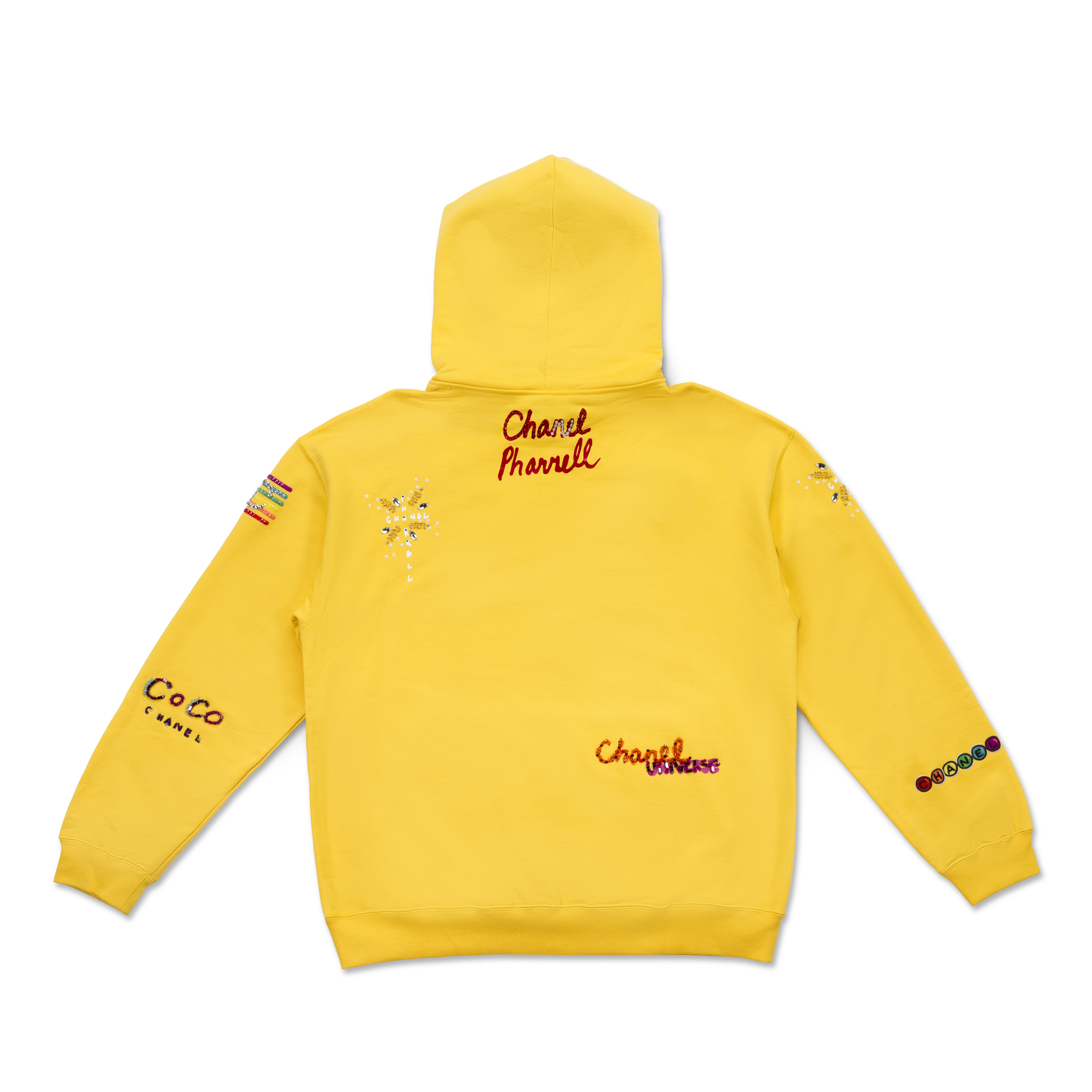 This vibrant yellow hoodie from the Chanel x Pharrell collection captures the collaborative line’s joyful, street-inflected energy. Crafted in soft cotton and detailed with beaded lettering and designs, the piece blends Pharrell’s signature playfulness with Chanel’s elevated craftsmanship. Bold, comfortable, and instantly recognizable, it stands as one of the spirited expressions of this groundbreaking collaboration.