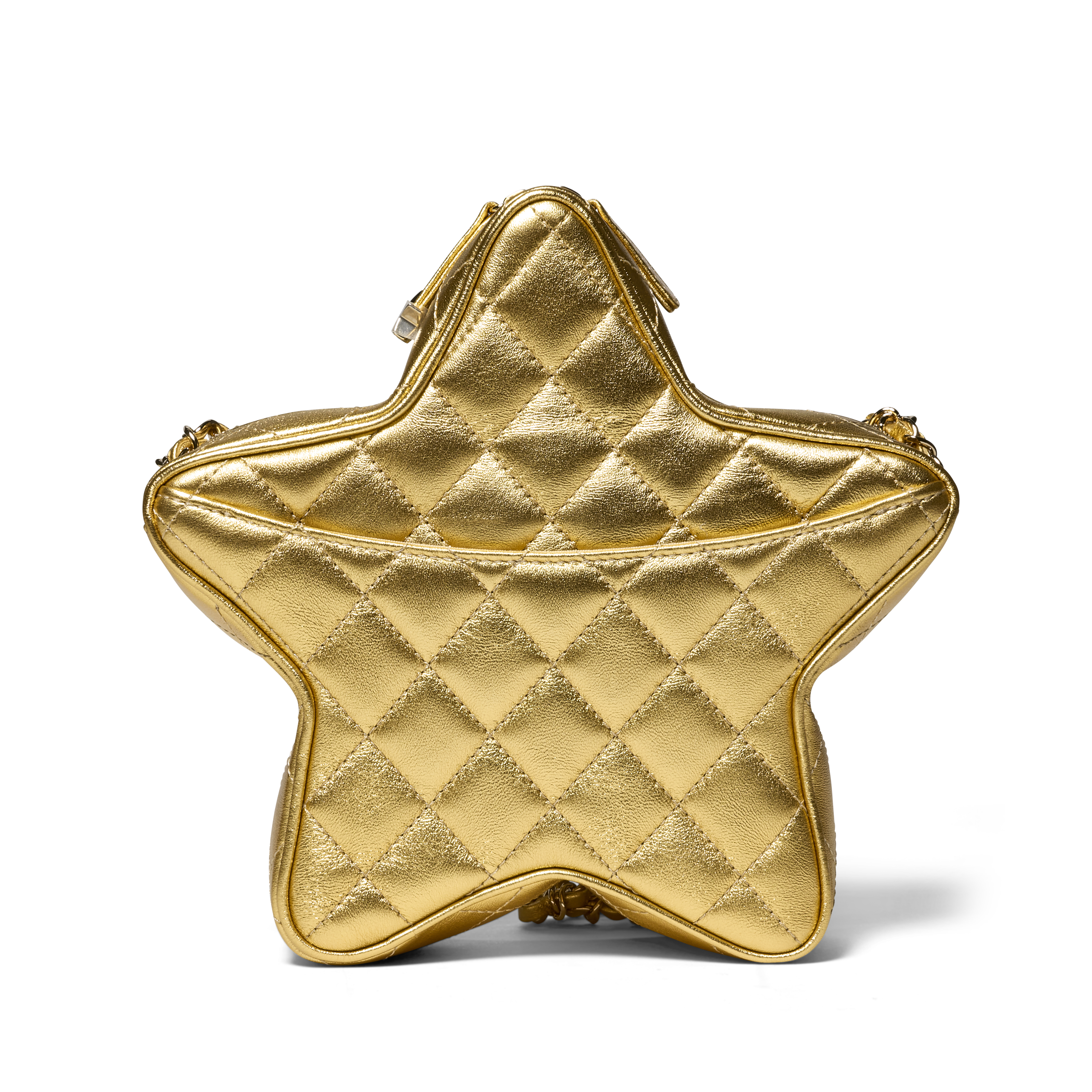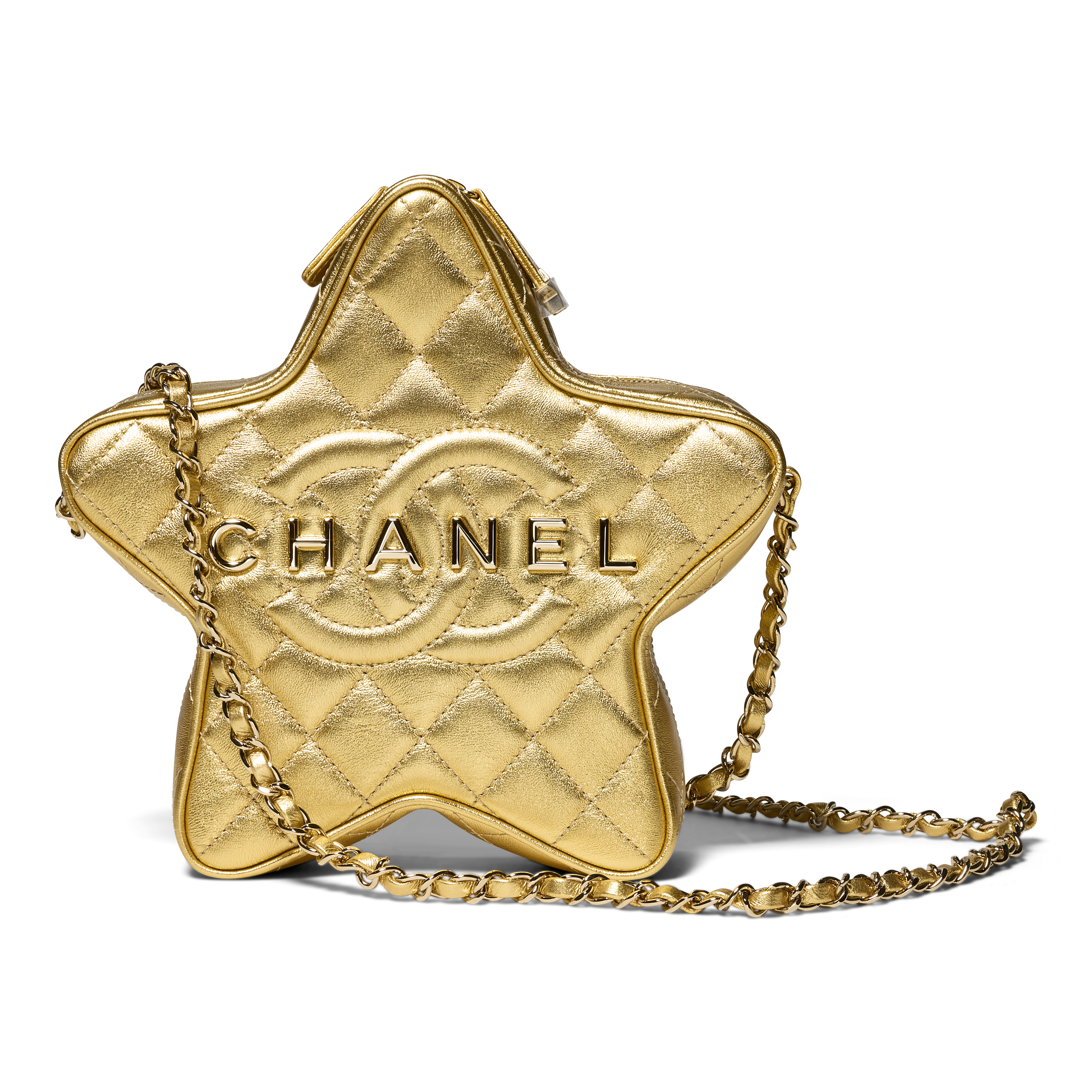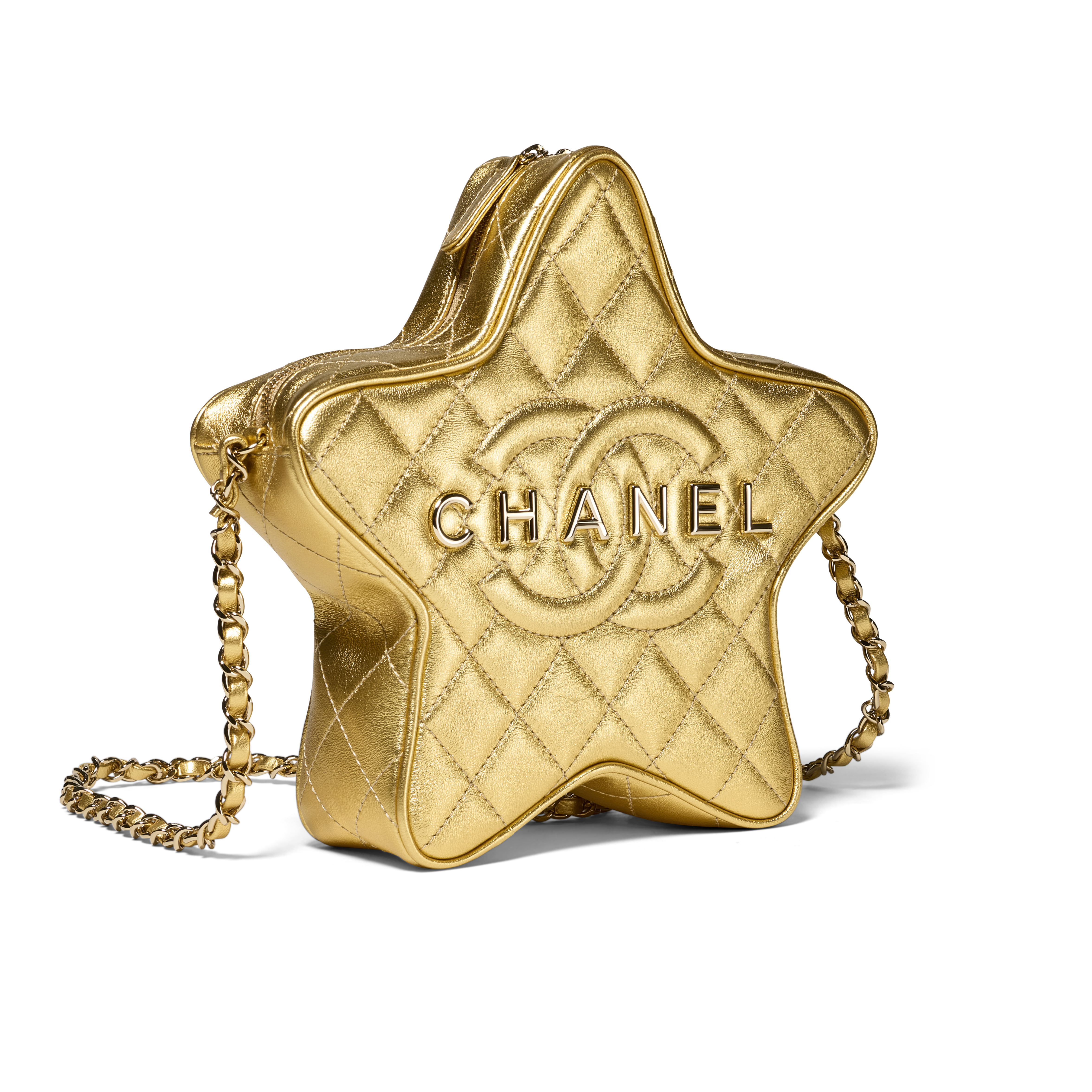The Chanel Runway Gold Calfskin Star Handbag from the Resort 2024 collection embodies the youthful, feminine spirit that defined the season’s playful aesthetic. Crafted in radiant gold calfskin and shaped into a striking star silhouette, it reflects the collection’s celebration of fun and modern whimsy. Bold, charming, and highly collectible, it captures the fresh, imaginative energy of the collection.