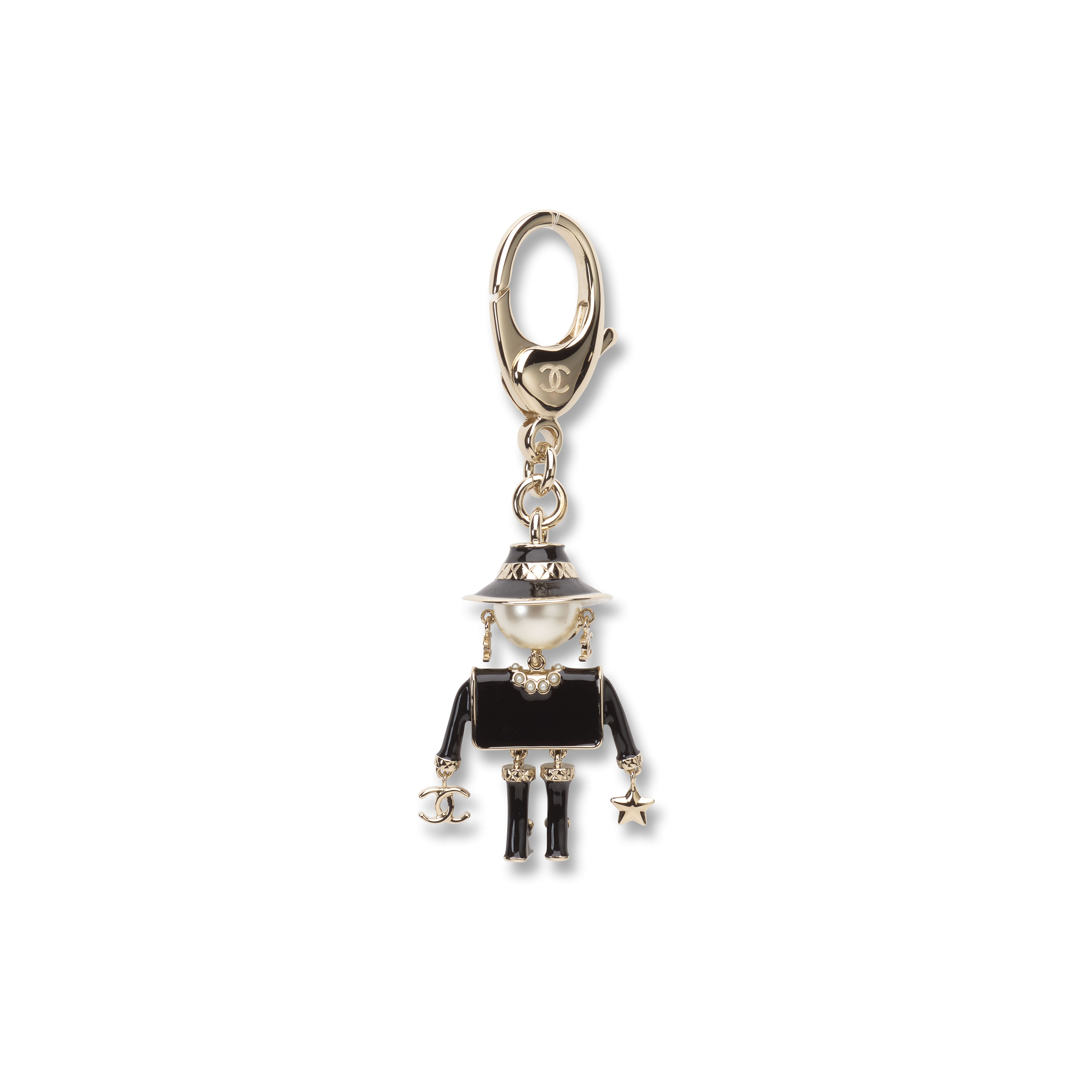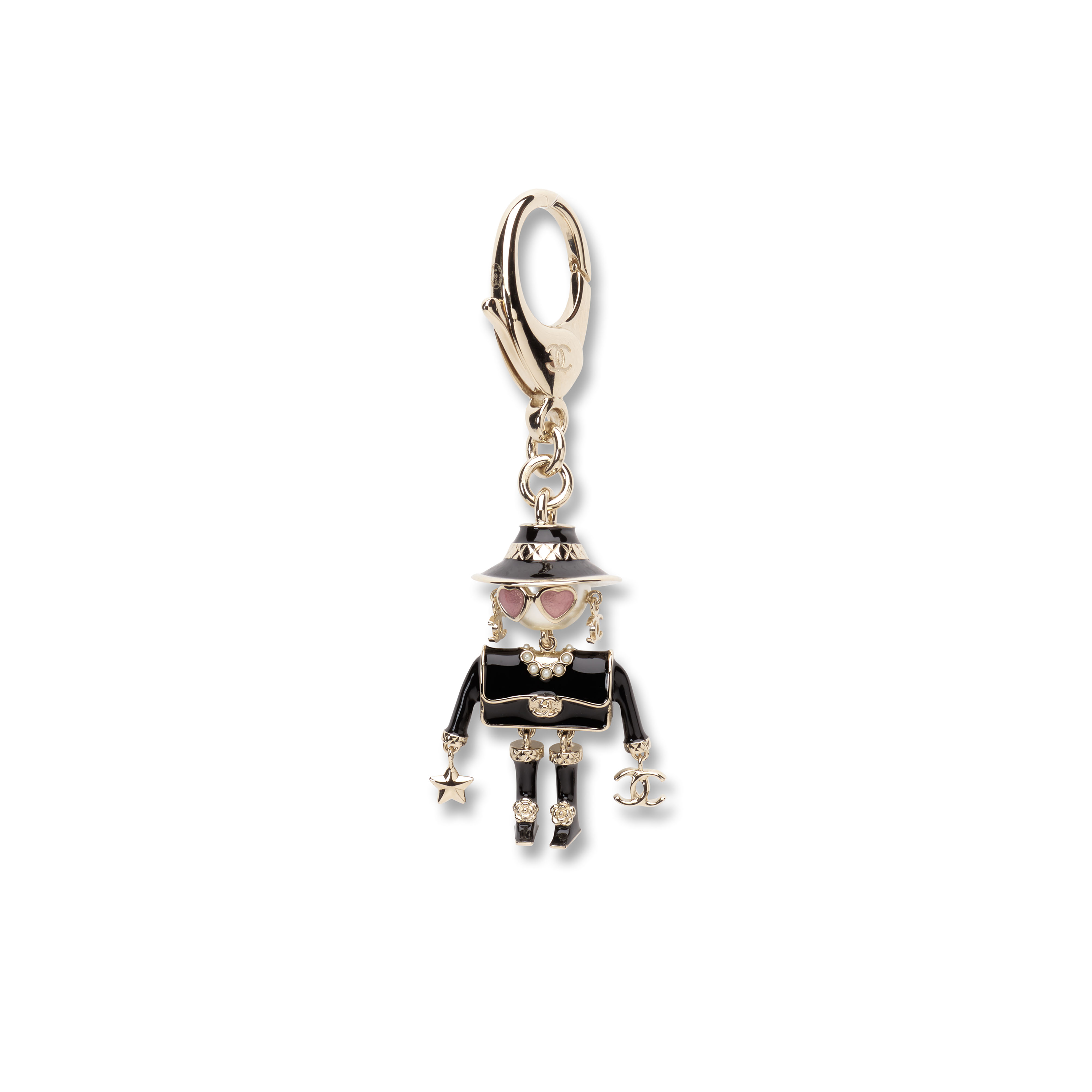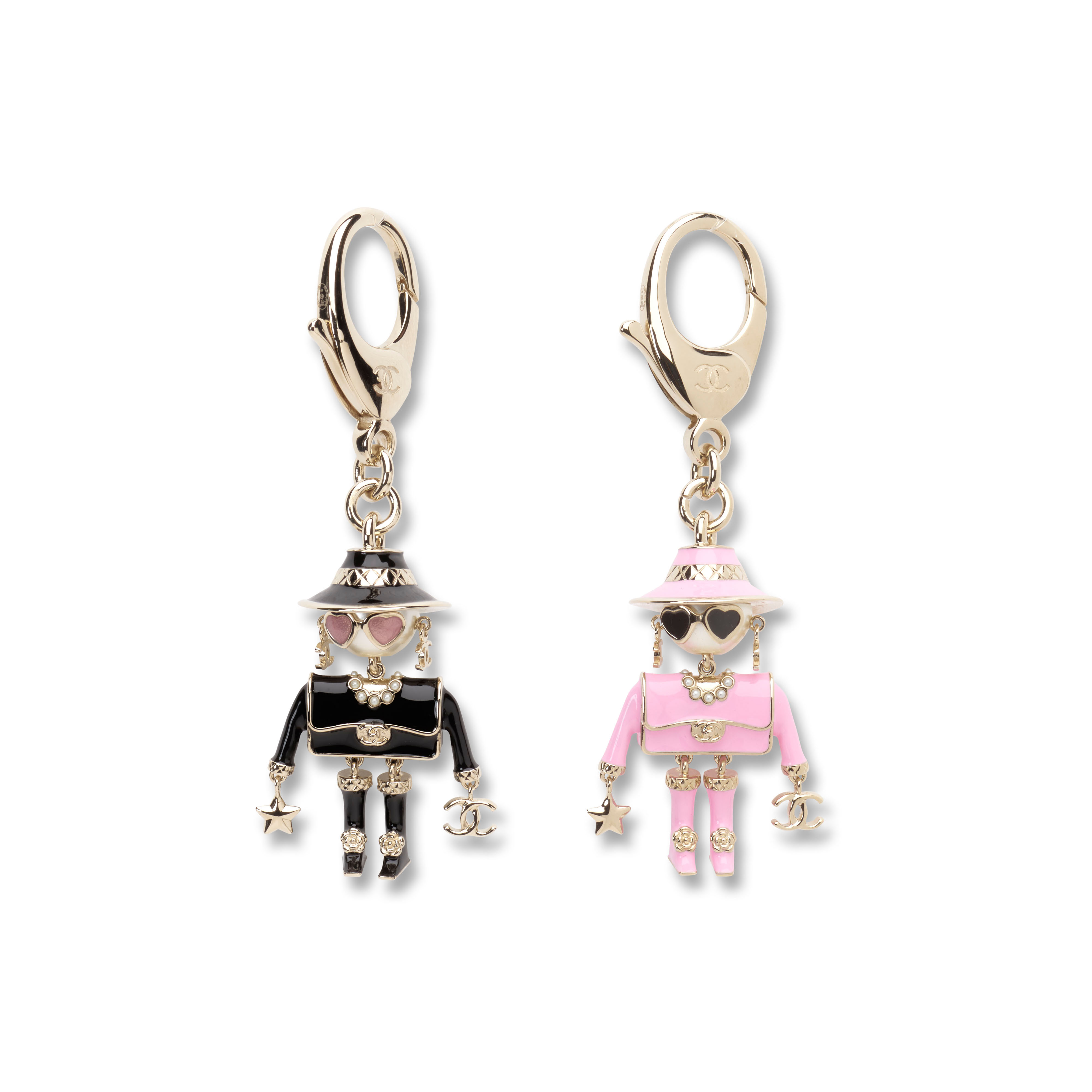 The second charm mirrors the same delightful design in a contrasting palette, presenting Gabrielle in chic black with vivid pink heart sunglasses. She also wears CC earrings, a faux pearl necklace and the signature Chanel hat, with one hand holding a gold star and the other a CC emblem. Together, the pair forms a collectible set that captures Chanel’s blend of elegance, humor and craftsmanship, making them perfect for adorning a bag, keyring or display as miniature couture keepsakes.
