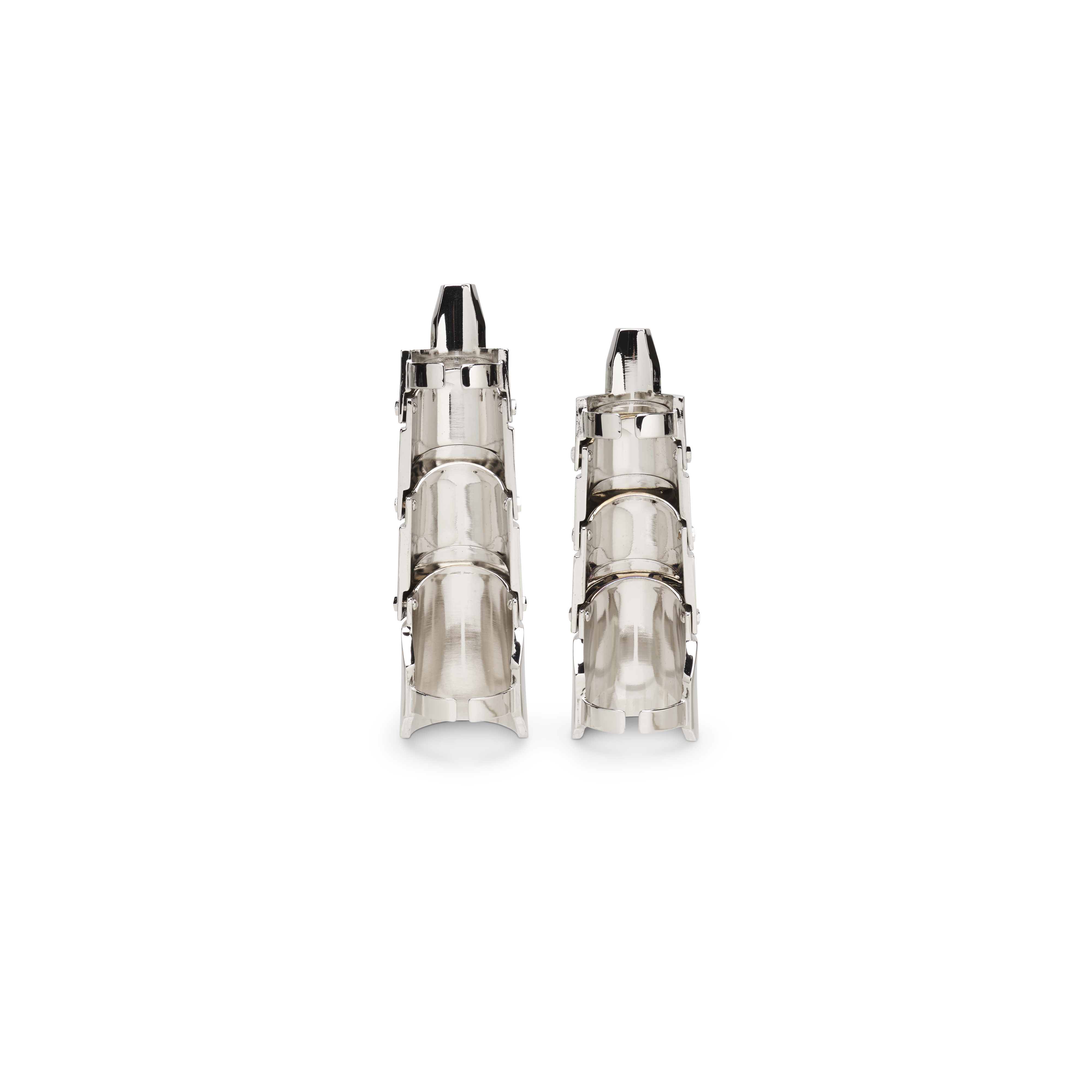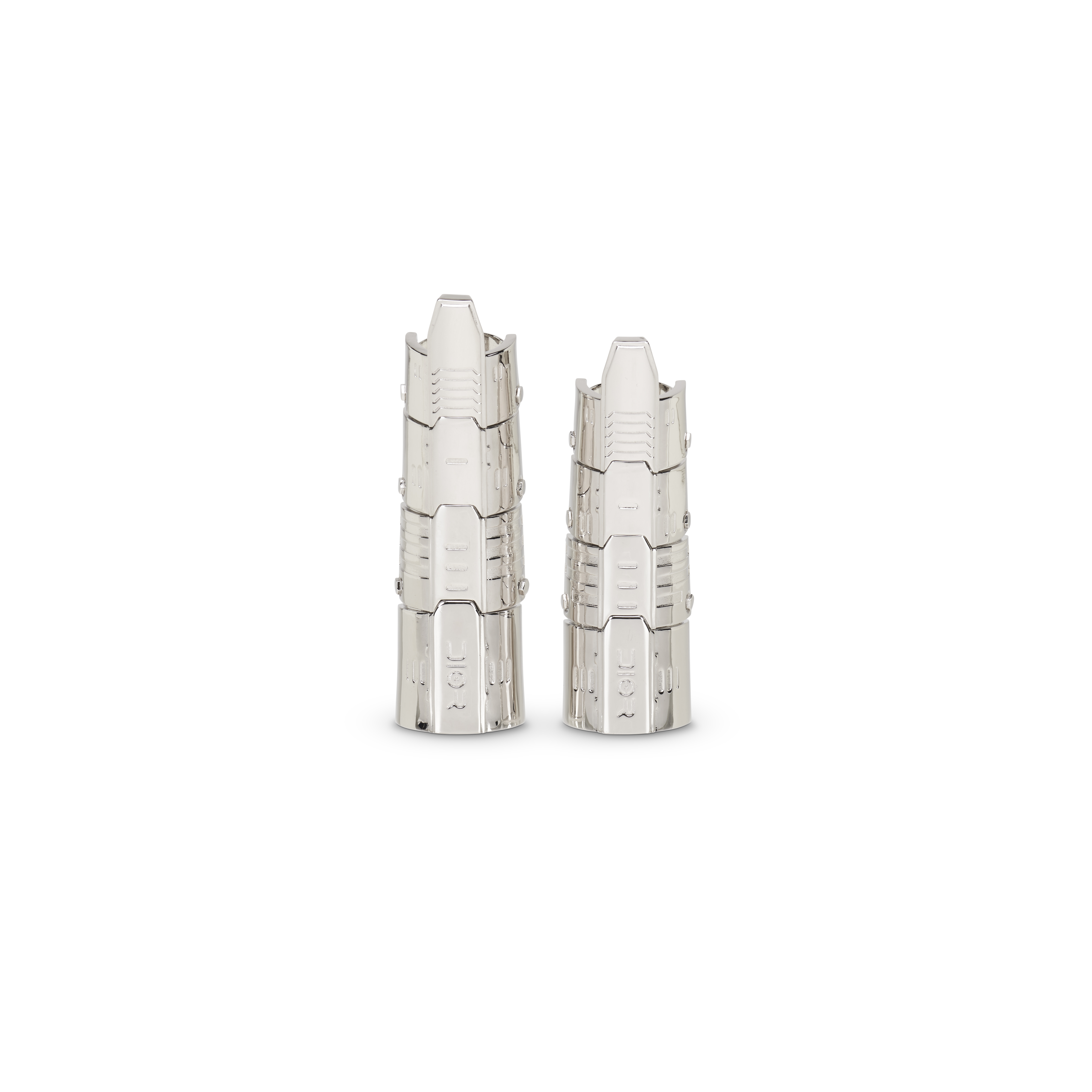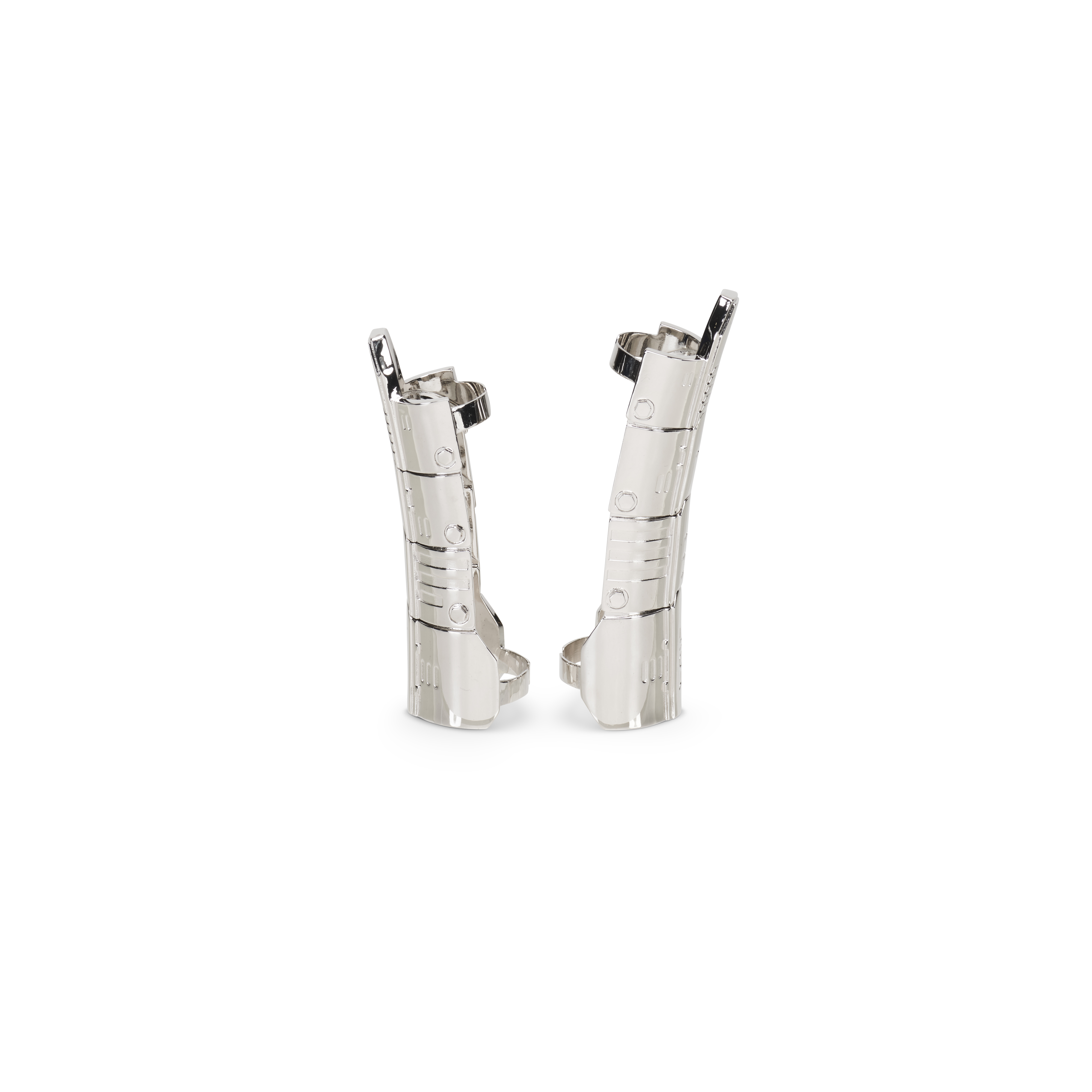 These striking Dior x Hajime Sorayama Limited Edition Finger Rings from Kim Jones' Men's Pre-Fall 2019 collection bring the futuristic aesthetic of Sorayama’s world directly into jewelry form. Designed to be worn on the index and middle fingers, each ring is crafted in a sleek, polished metal finish and engraved with the bold “DIOR” signature, echoing the streamlined, chrome-like surfaces that define Sorayama’s iconic visual language. Minimal yet instantly eye-catching, the rings embody the collaboration’s blend of couture precision and sci-fi inspired modernity, making them a rare and collectible accessory from one of Dior Men’s most celebrated creative partnerships.