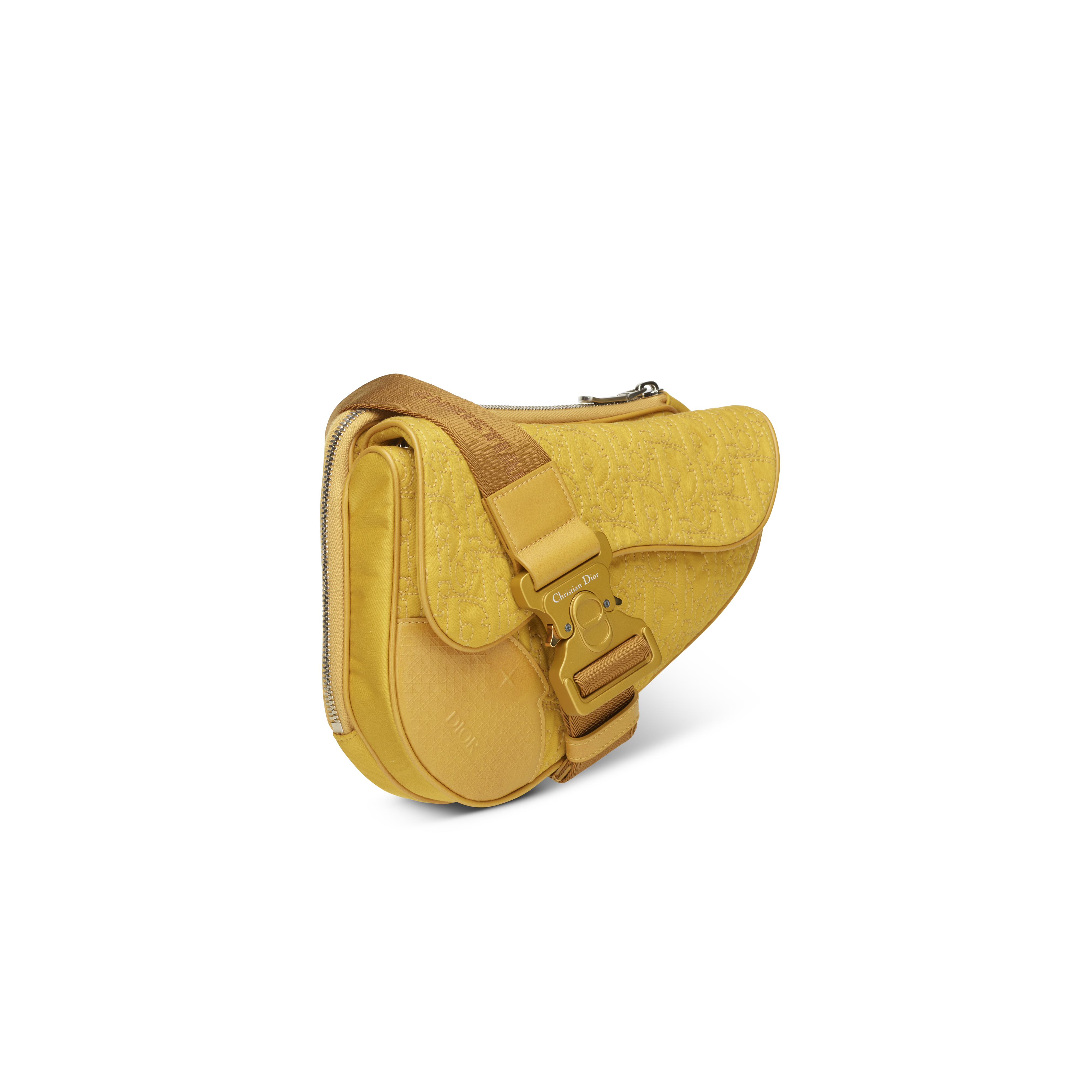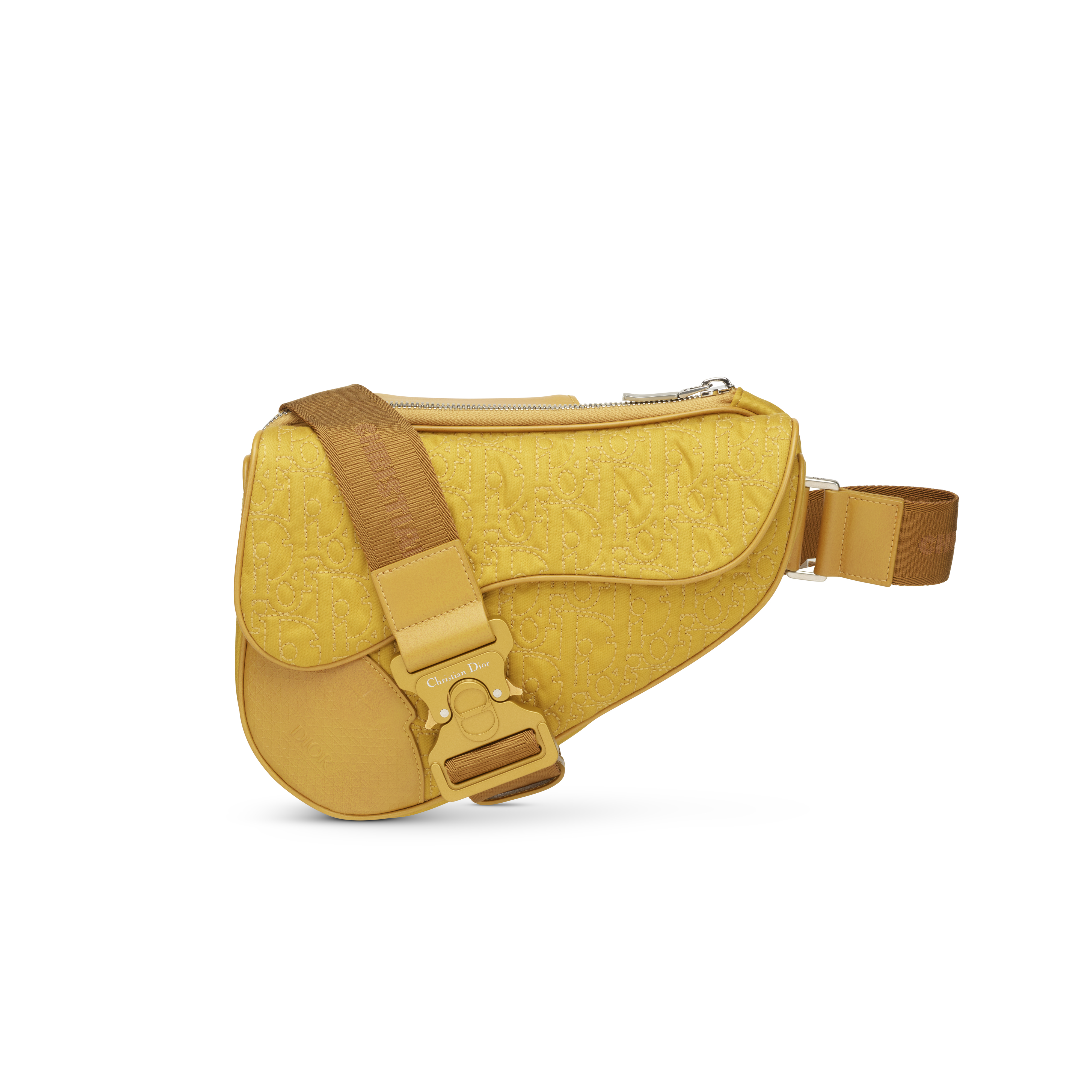 This rare Dior x Stone Island Saddle Bag, released in 2024, reimagines the iconic Saddle silhouette through the utilitarian lens of Stone Island’s technical design language. Crafted in vibrant yellow Dior monogram cloth with smooth yellow leather trim, the piece features a structured flap that secures with two hidden magnets and two zippered compartments. The adjustable strap is finished with a distinctive oversized buckle, adding a rugged, industrial touch to the classic form. Produced in an edition of only 88 pieces and individually numbered, this limited release stands as a highly collectible fusion of couture craftsmanship and modern functional design.