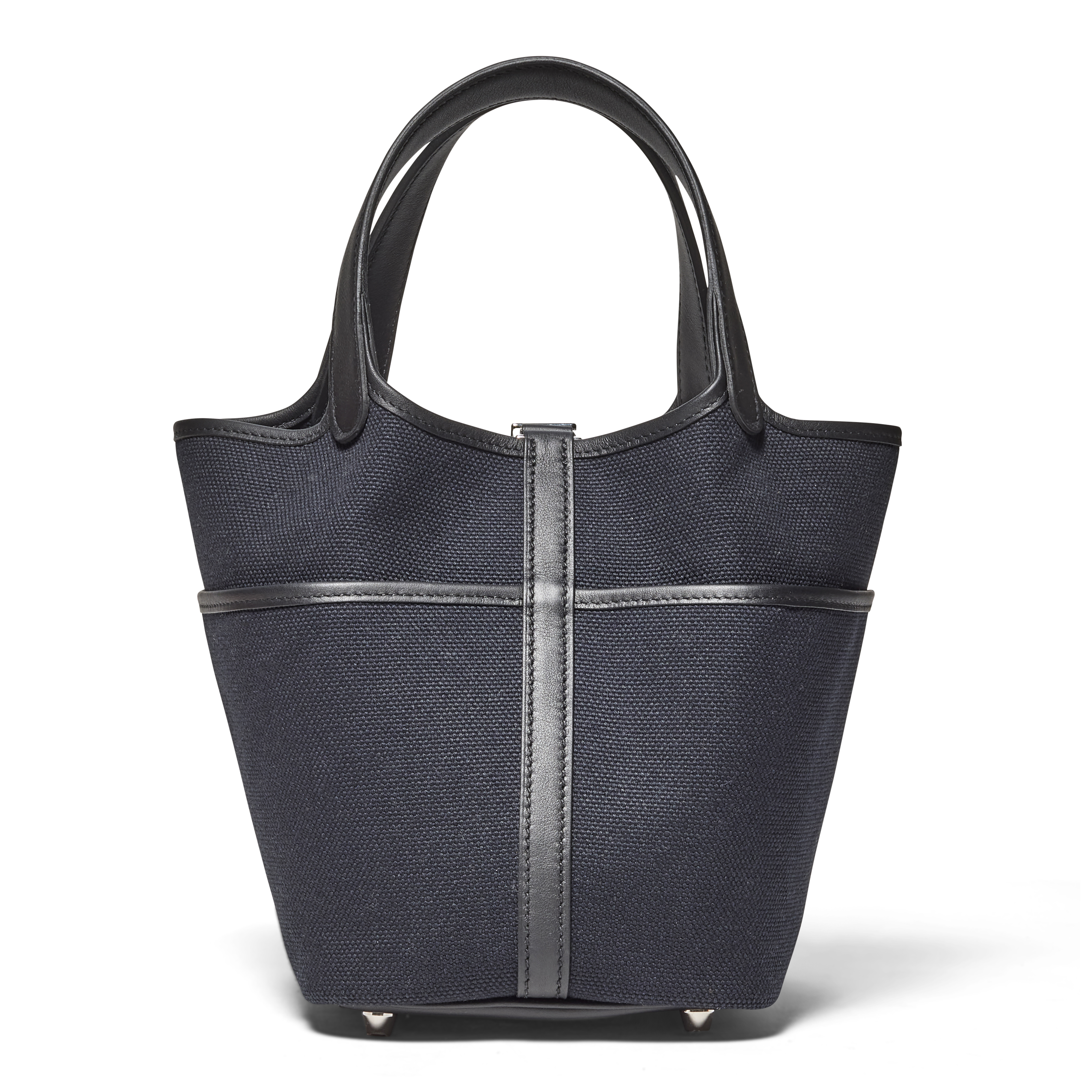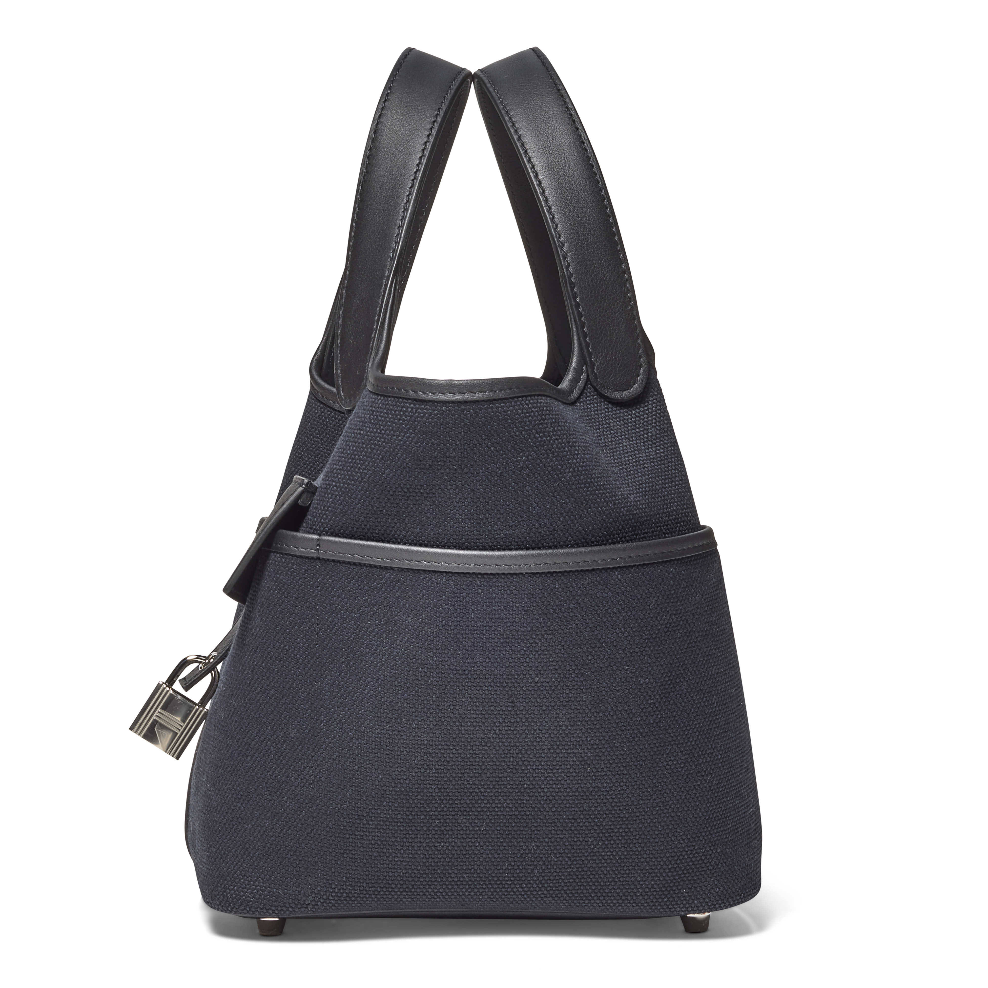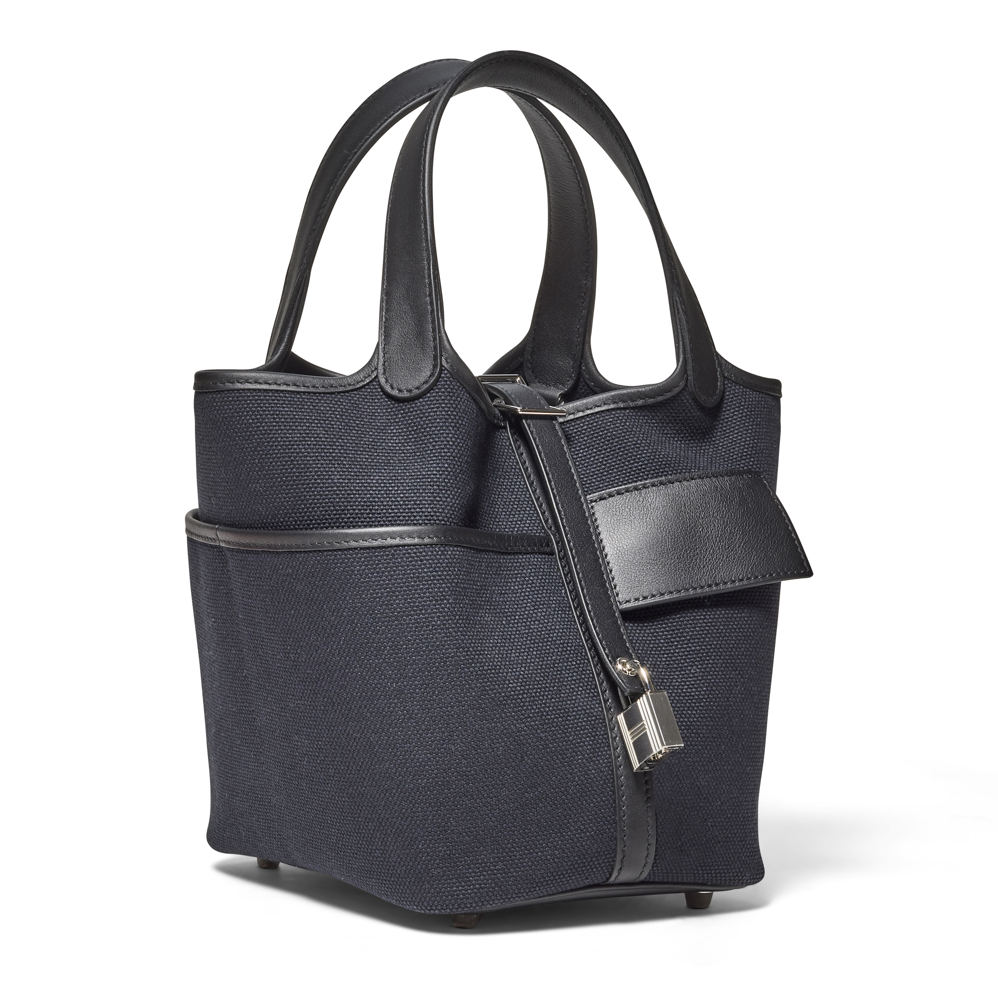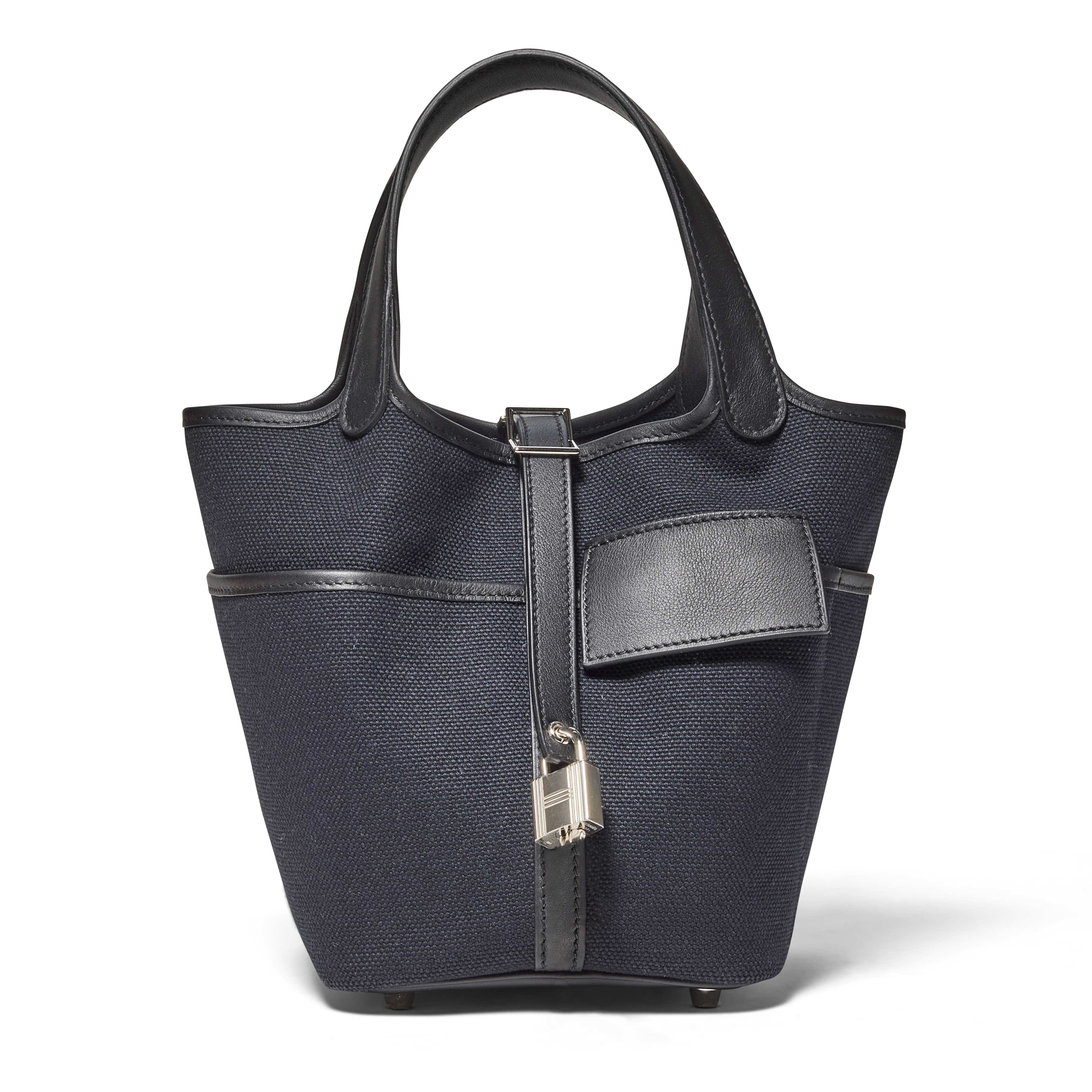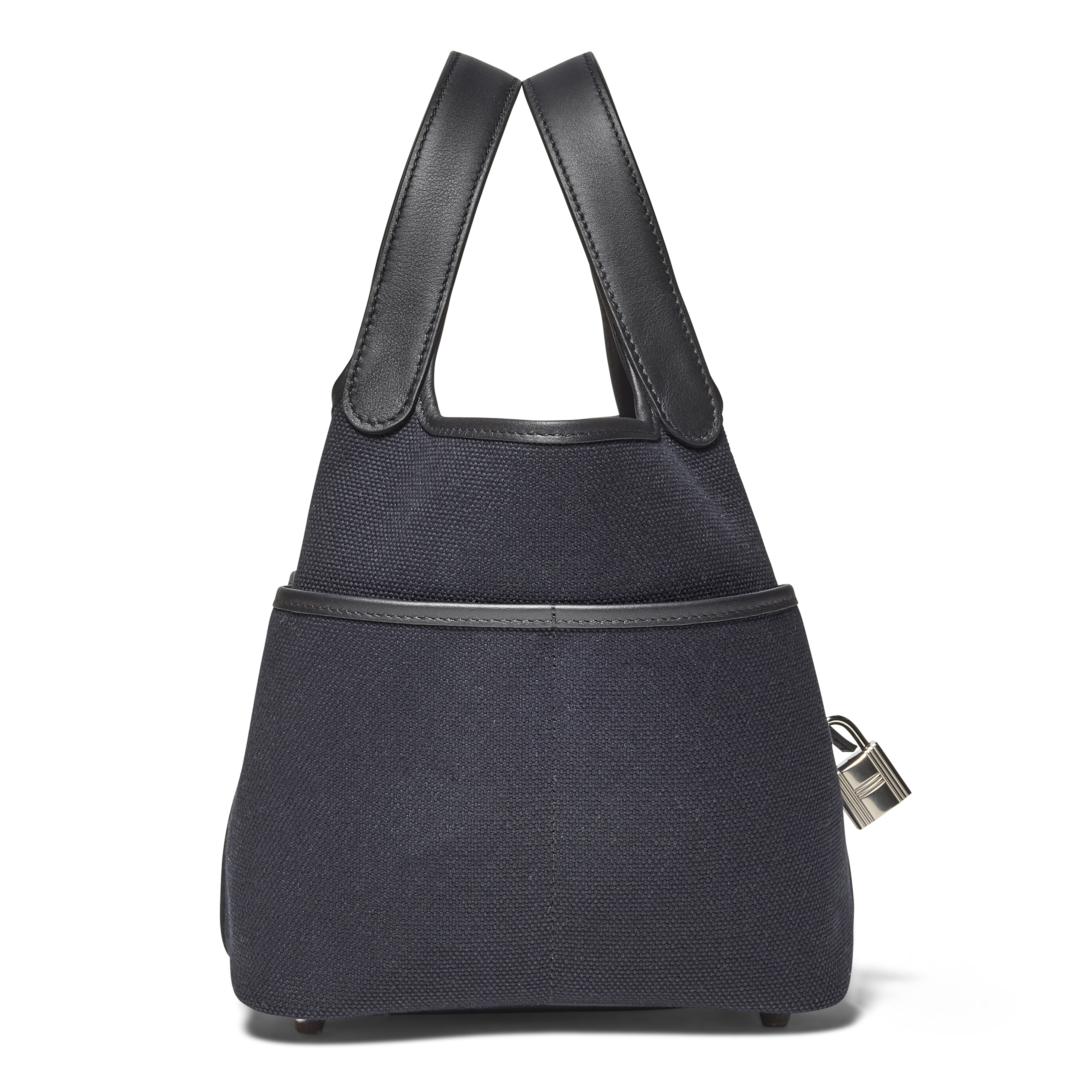 The Hermès Noir Swift Leather & Toile Goeland Picotin Cargo Lock 18 offers a modern, utilitarian twist on a beloved classic. Crafted in durable Goéland canvas with refined Noir accents and finished with palladium hardware, it balances practicality with effortless elegance. Its structured yet relaxed silhouette, complete with exterior cargo-style pockets, brings contemporary functionality to the iconic Picotin design.