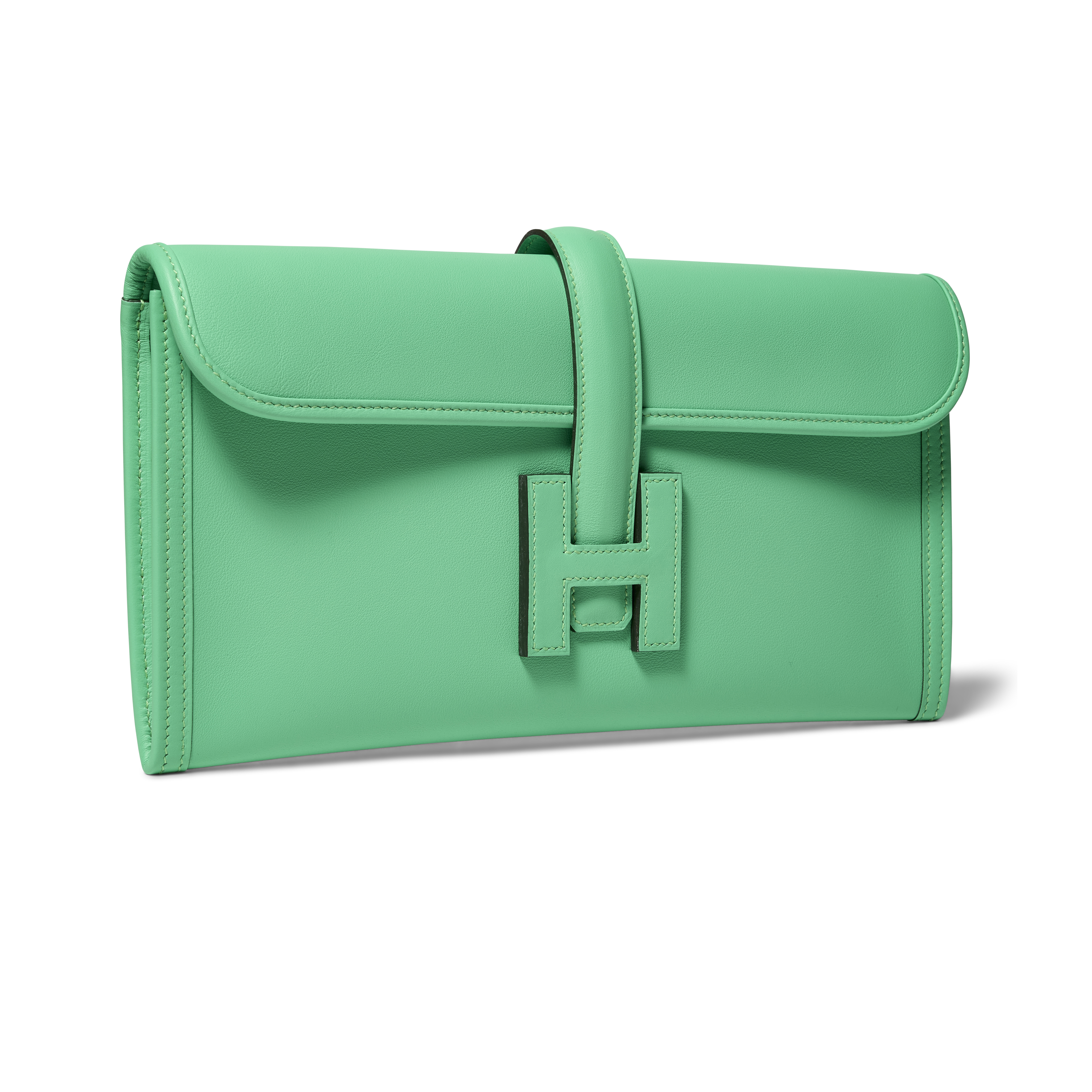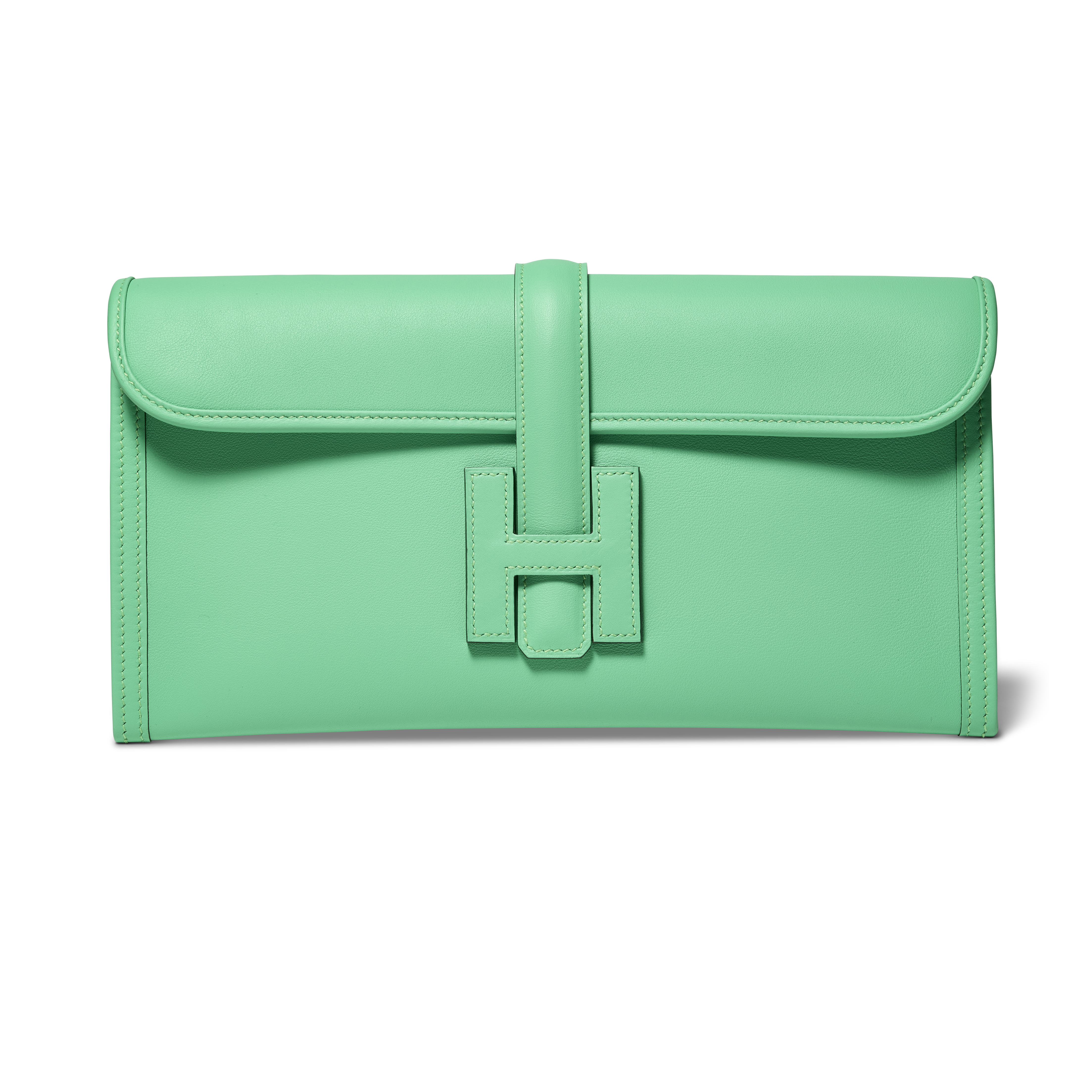 The Hermès Vert Comics Swift Leather Jige Elan 29 is a sleek clutch that highlights the Maison’s mastery of minimalism and craftsmanship. Its elongated leather silhouette is secured by the signature “H” tab closure. Perfectly sized for day-to-night versatility, this vibrant green clutch adds a sophisticated pop of color to any ensemble.