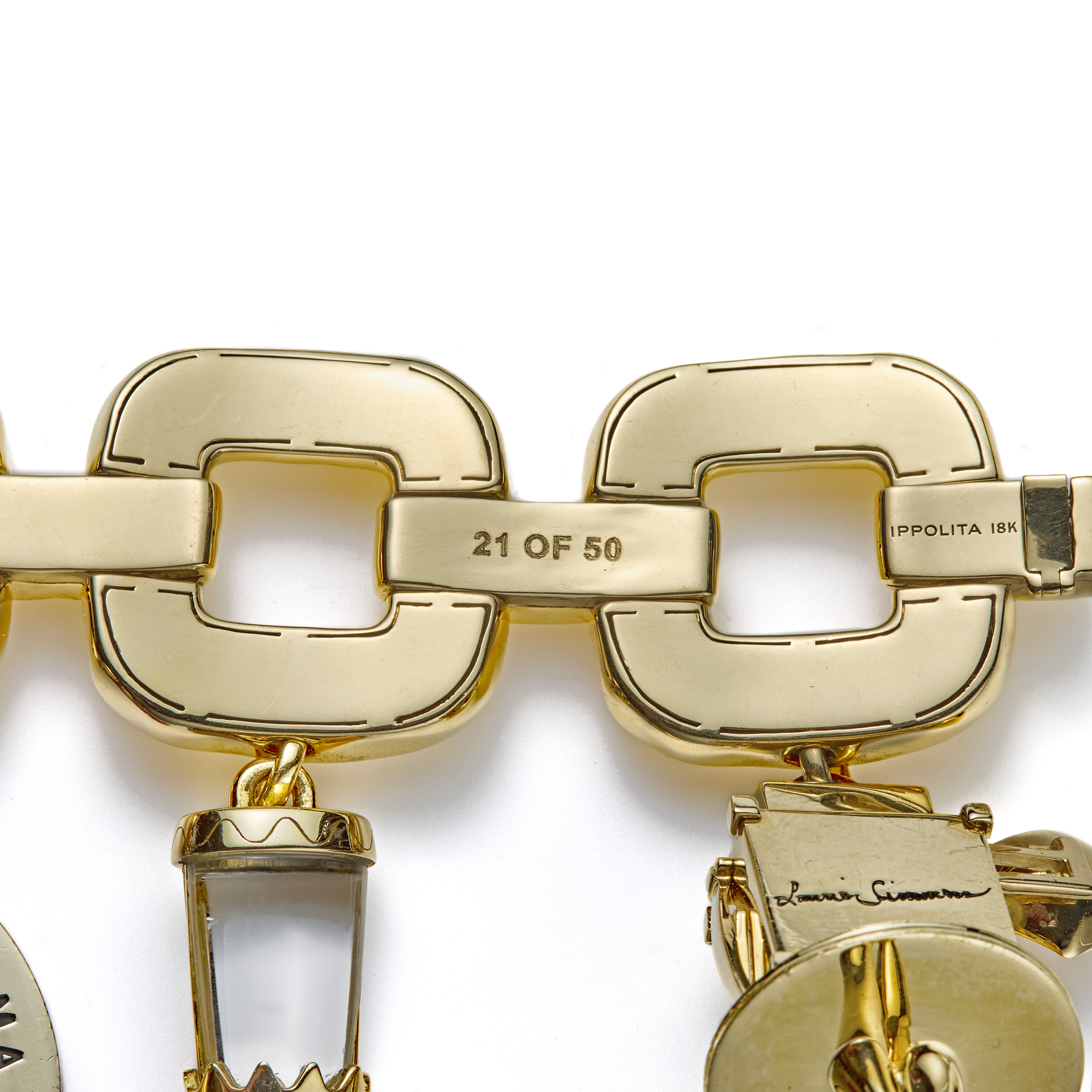 Bracelet signed Ippolita, 21 of 50, Ippolita, 18K. Each charm inscribed with the artist's signature. Weight: 176.06 gram.