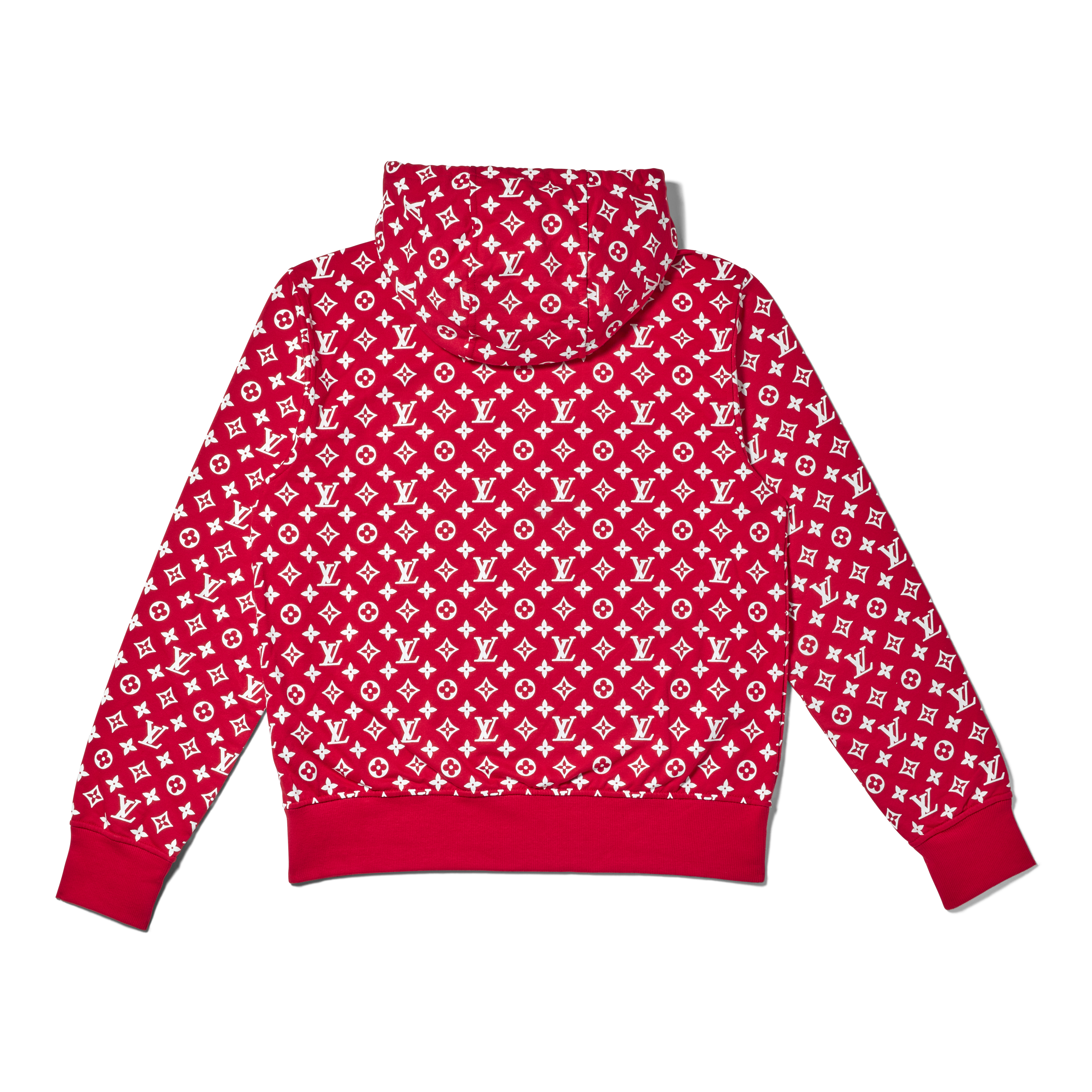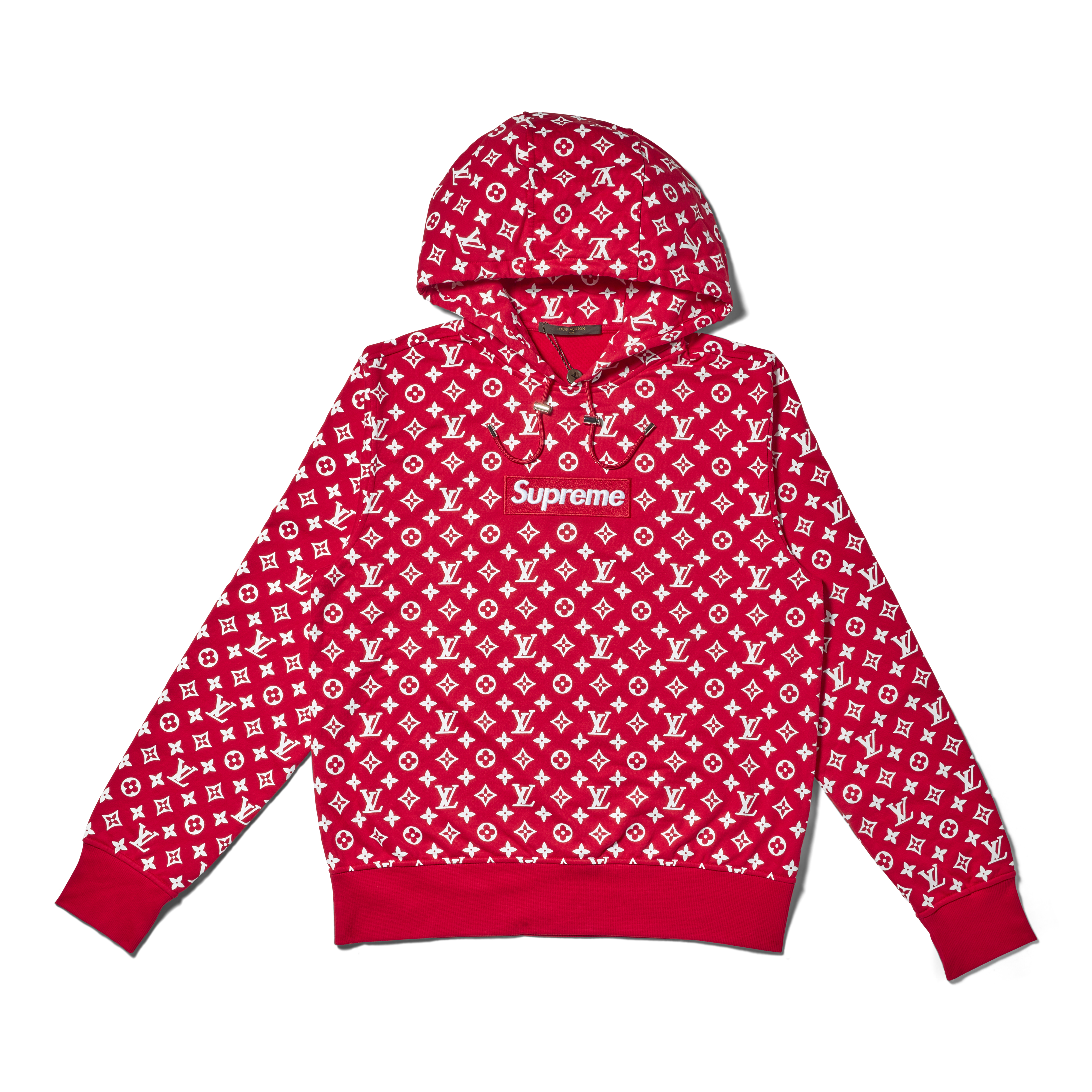 This sweatshirt from the Louis Vuitton x Supreme collection fuses Supreme’s iconic box logo with Louis Vuitton’s legendary Monogram, creating one of the more visually striking apparel pieces from the collaboration. The design balances high-fashion craftsmanship with streetwear attitude, producing a garment that became instantly symbolic of the partnership’s cultural impact.