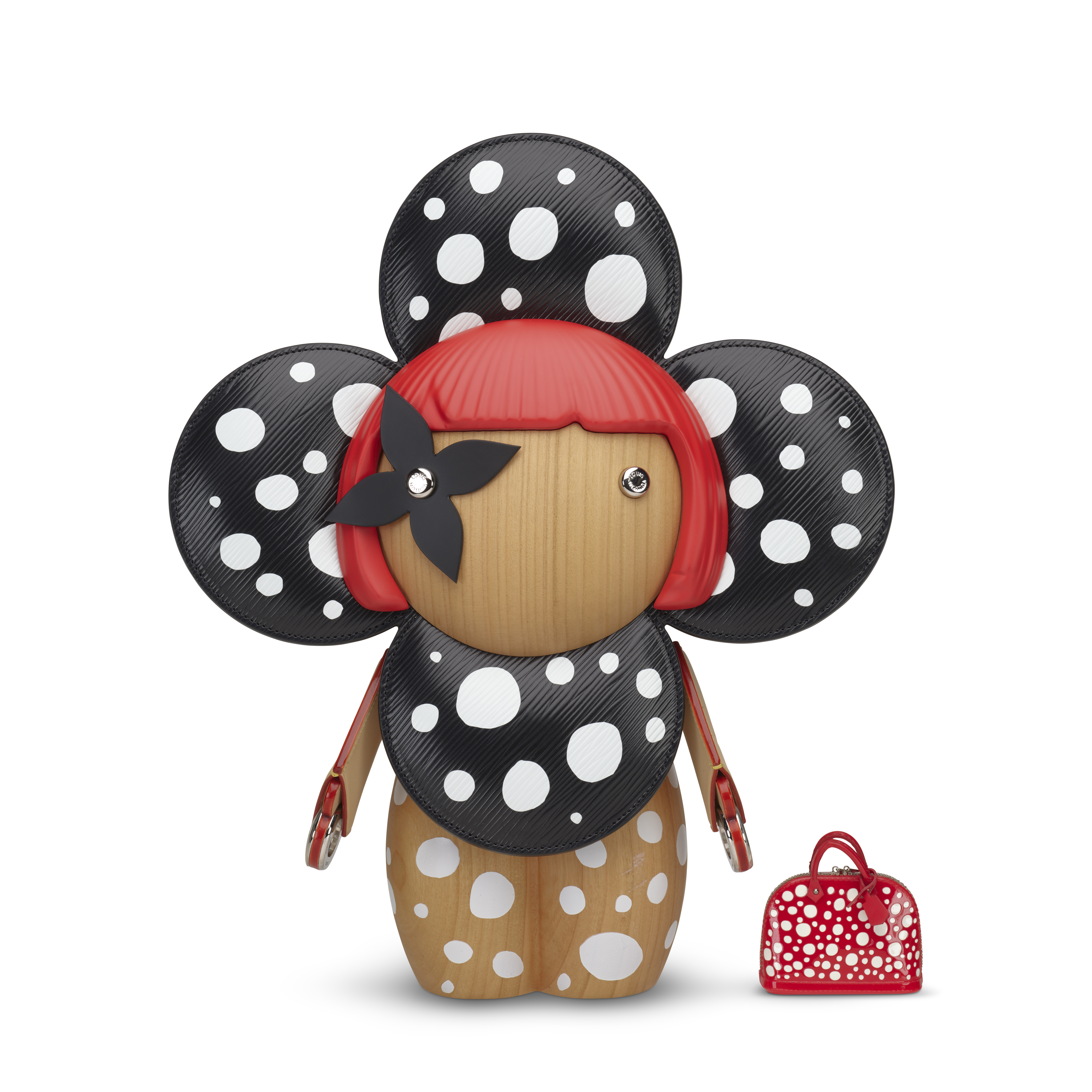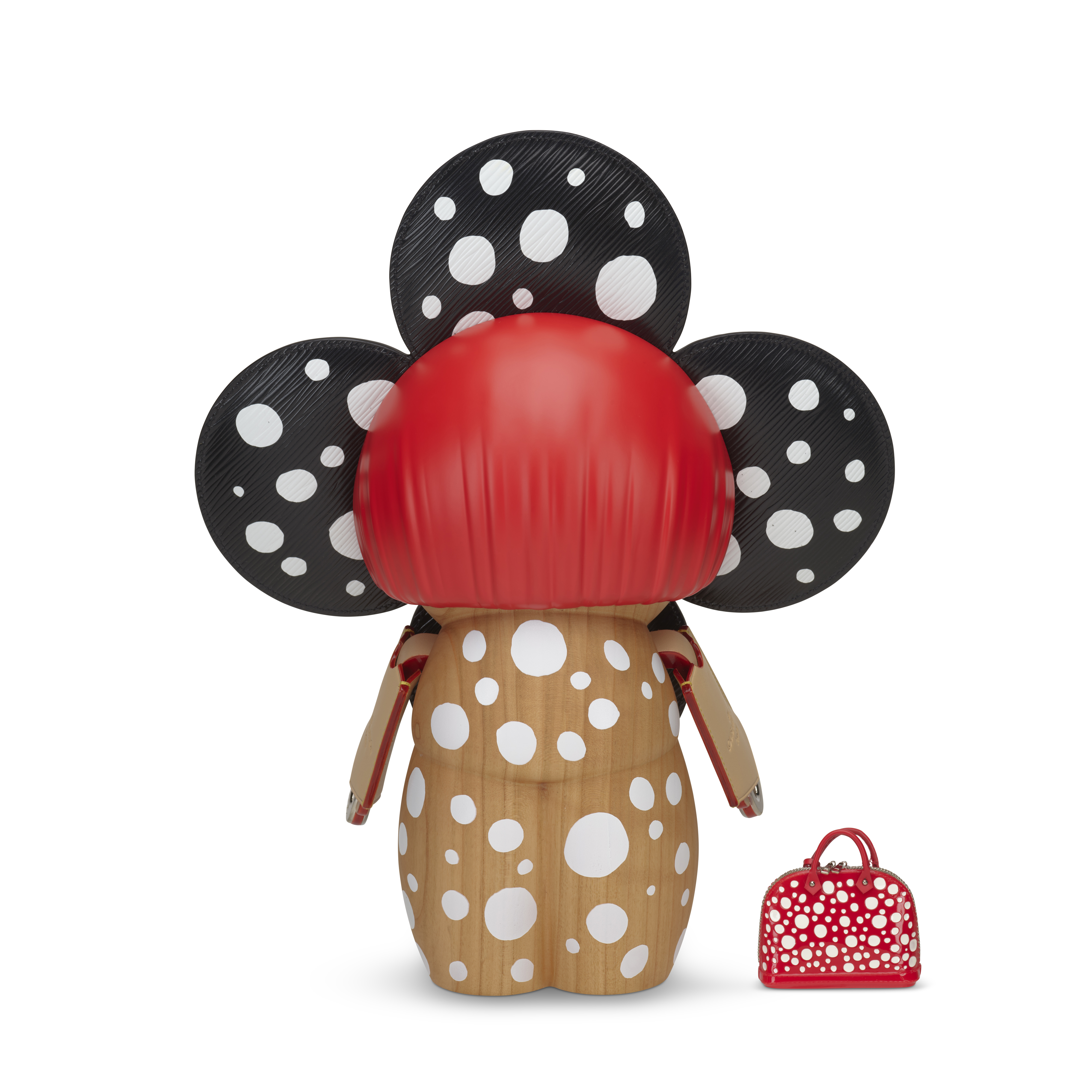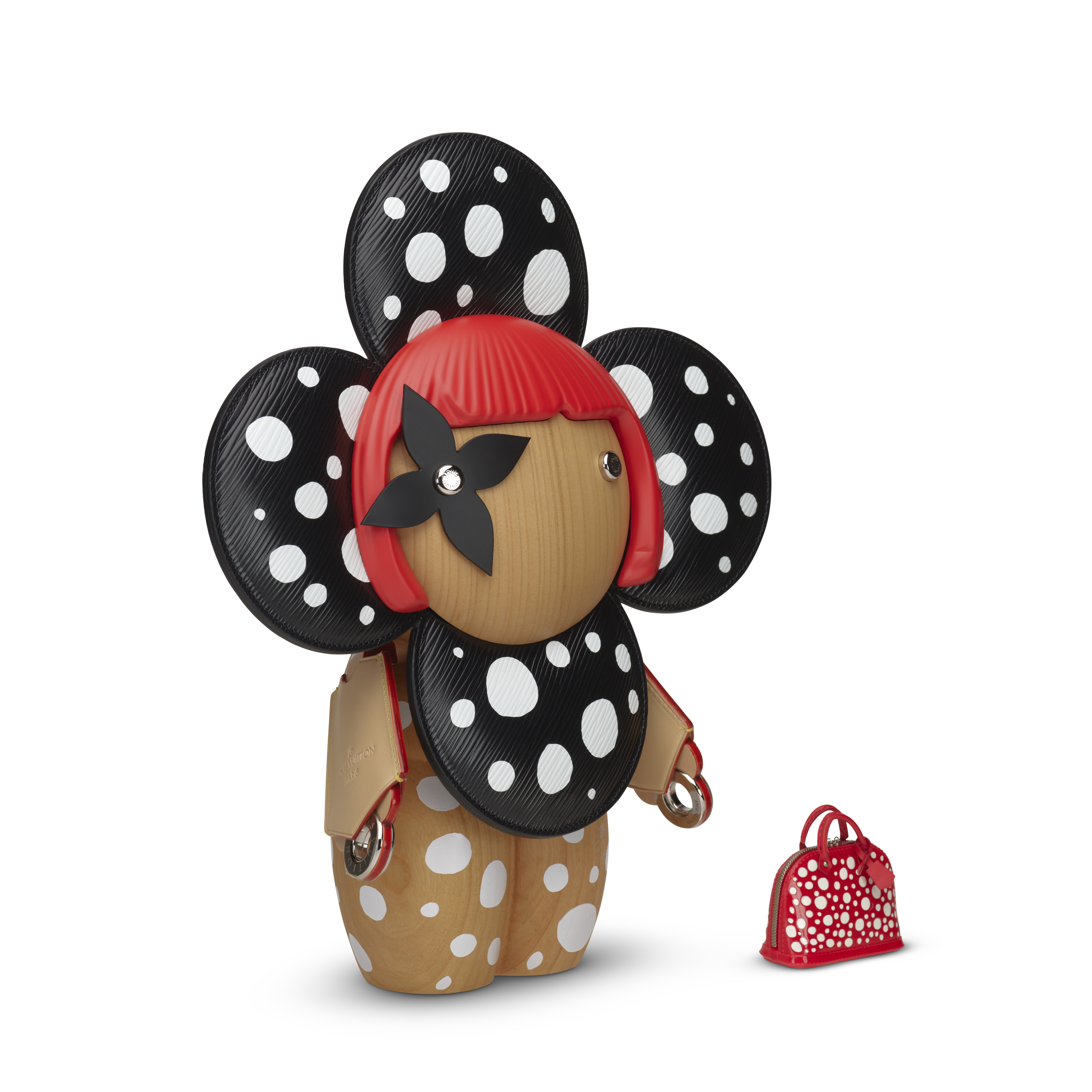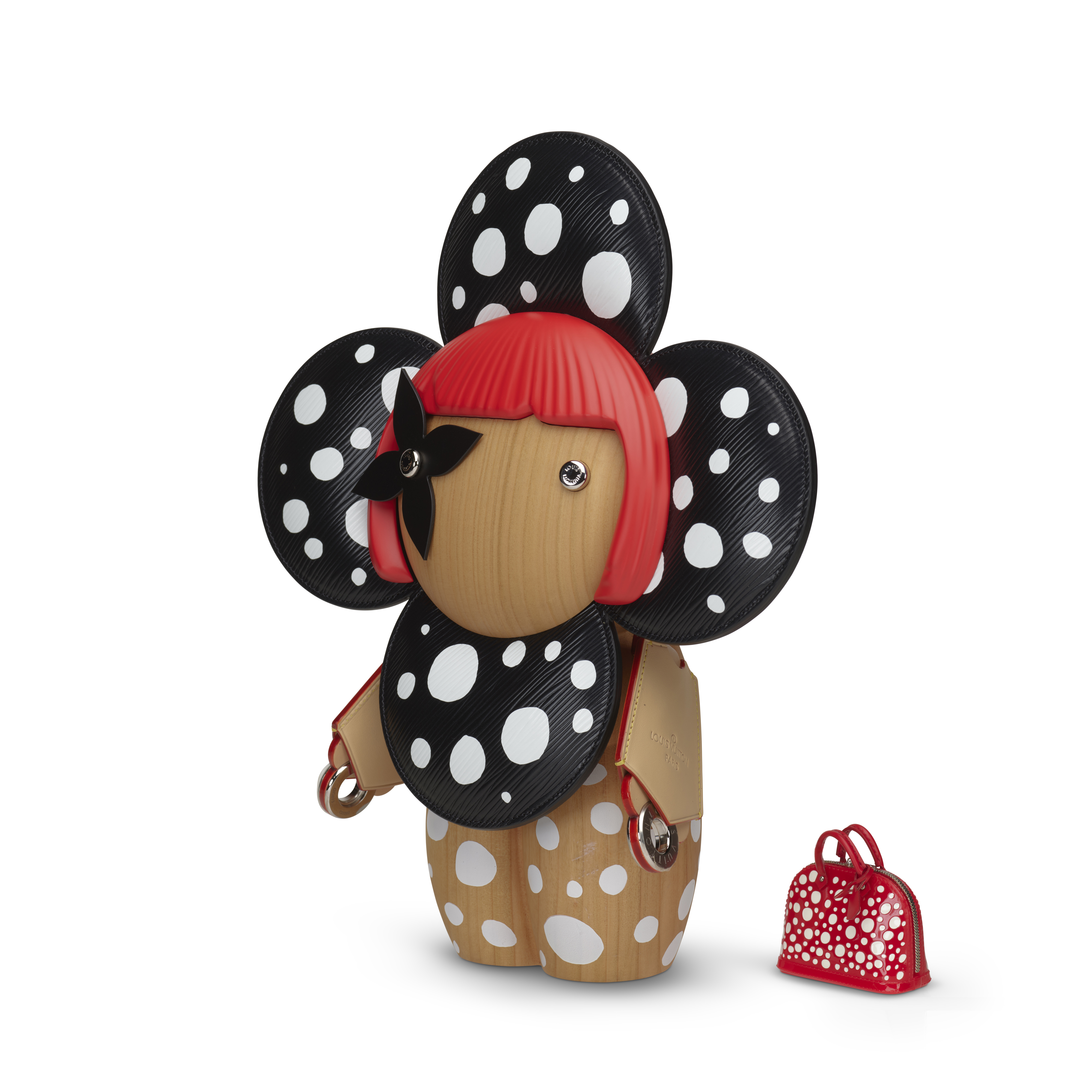This Louis Vuitton x Yayoi Kusama Vivienne Giant Figurine reimagines the Maison’s beloved mascot as the celebrated Japanese artist. Fashioned from wood with natural leather accents, the doll has the artist’s signature vivid red cropped hair, a black flower halo, a flower monogram eye and clochette arms all highlighting the brand’s artisanal creativity. The headpiece and body are adorned with Kusama’s iconic Infinity Dots that embody her lifelong exploration of repetition and infinity. The doll is complete with a miniature red Alma bag, a charming nod to the House’s heritage design. A vibrant collectible, this figurine beautifully fuses Louis Vuitton’s craftsmanship with Kusama’s joyful, immersive art.