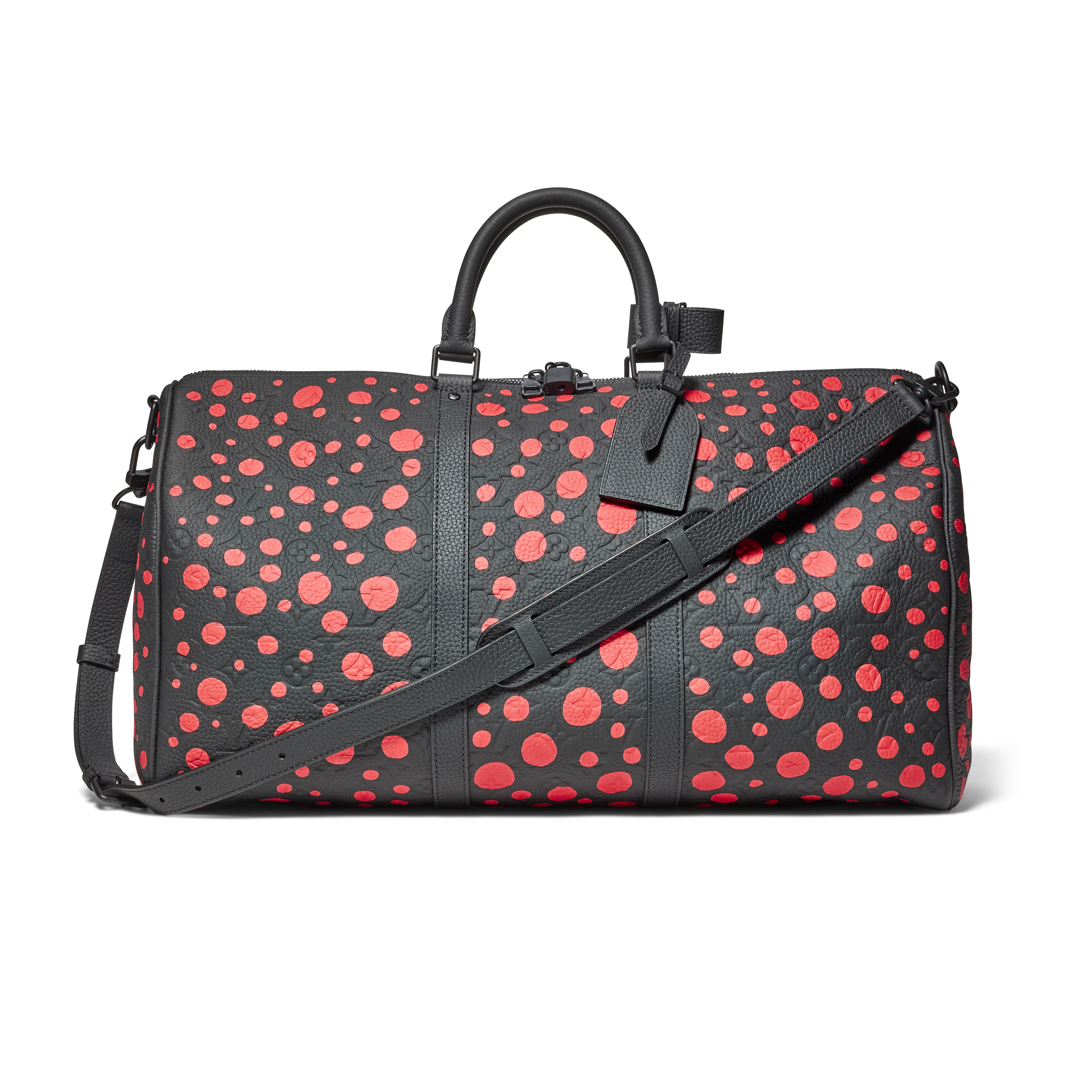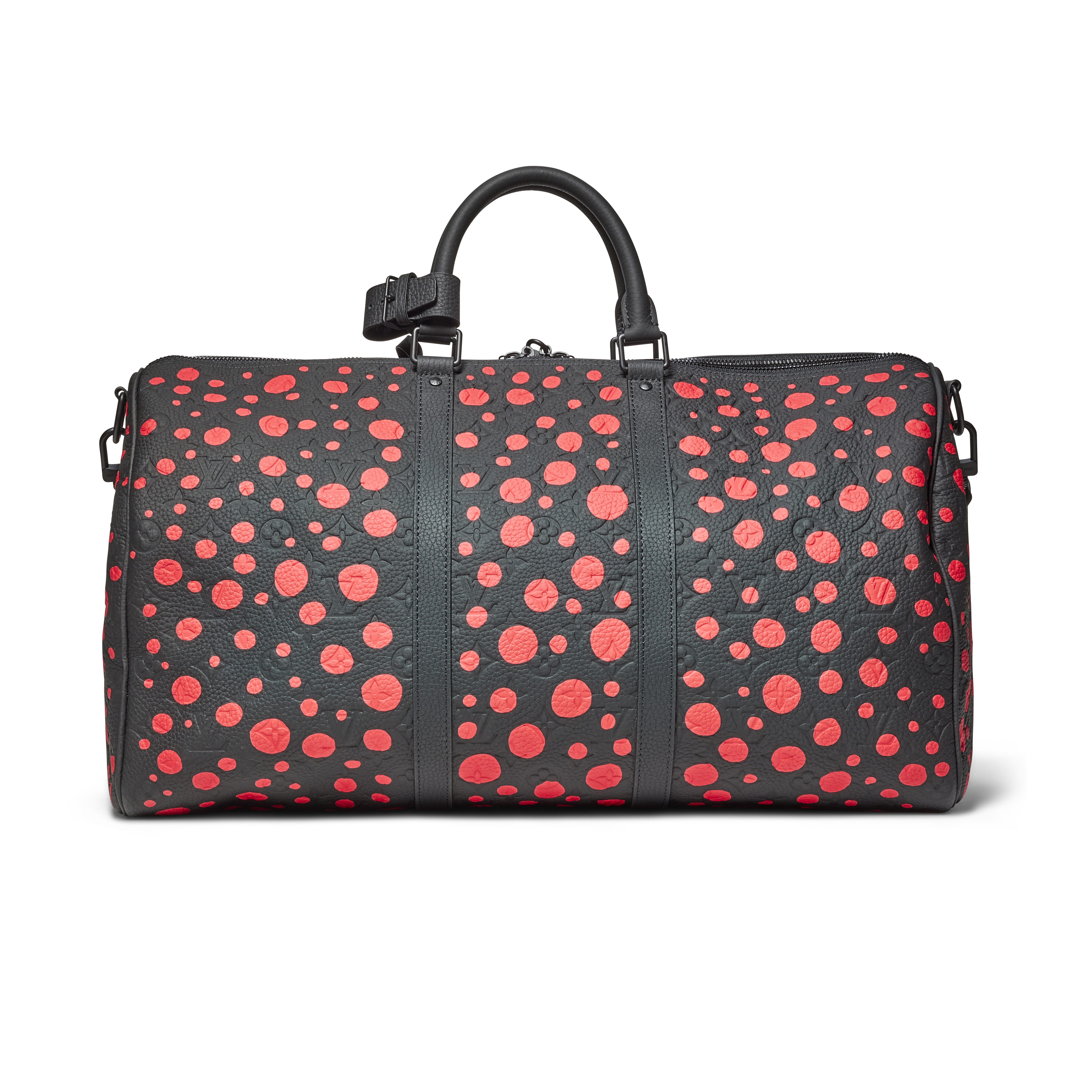 The Louis Vuitton x Yayoi Kusama Monogram Keepall Bandoulière 50 is a vibrant and collectible expression of the celebrated collaboration between the House and the pioneering Japanese artist. The classic canvas becomes a lively artistic surface reimagined with Kusama’s signature painted Infinity Dots that embody her lifelong exploration of repetition and infinity. The classic Keepall silhouette offers effortless travel functionality, elevated with refined leather accents and black hardware. Both practical and artistically resonant, this limited creation unites heritage craftsmanship with one of contemporary art’s most recognizable visual languages.