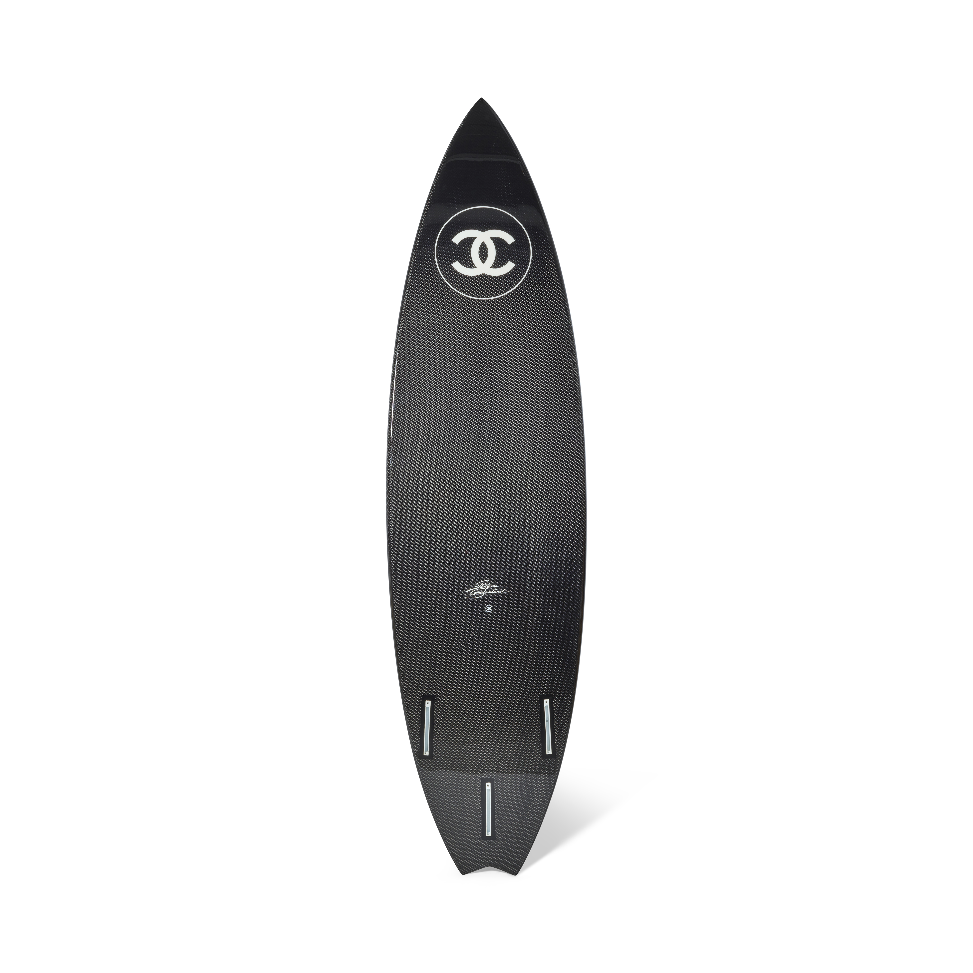 The Philippe Barland x Chanel Black Monogram CC Carbon Fiber Surfboard is a stunning convergence of high-performance craftsmanship and iconic style. Constructed in sleek carbon fiber and adorned with Chanel’s signature monogram and interlocking CCs, it embodies both technical excellence and refined visual appeal. Fully functional as a surfboard yet striking enough to serve as a decorative art object, it stands as a rare and coveted piece that bridges sport, design, and luxury.