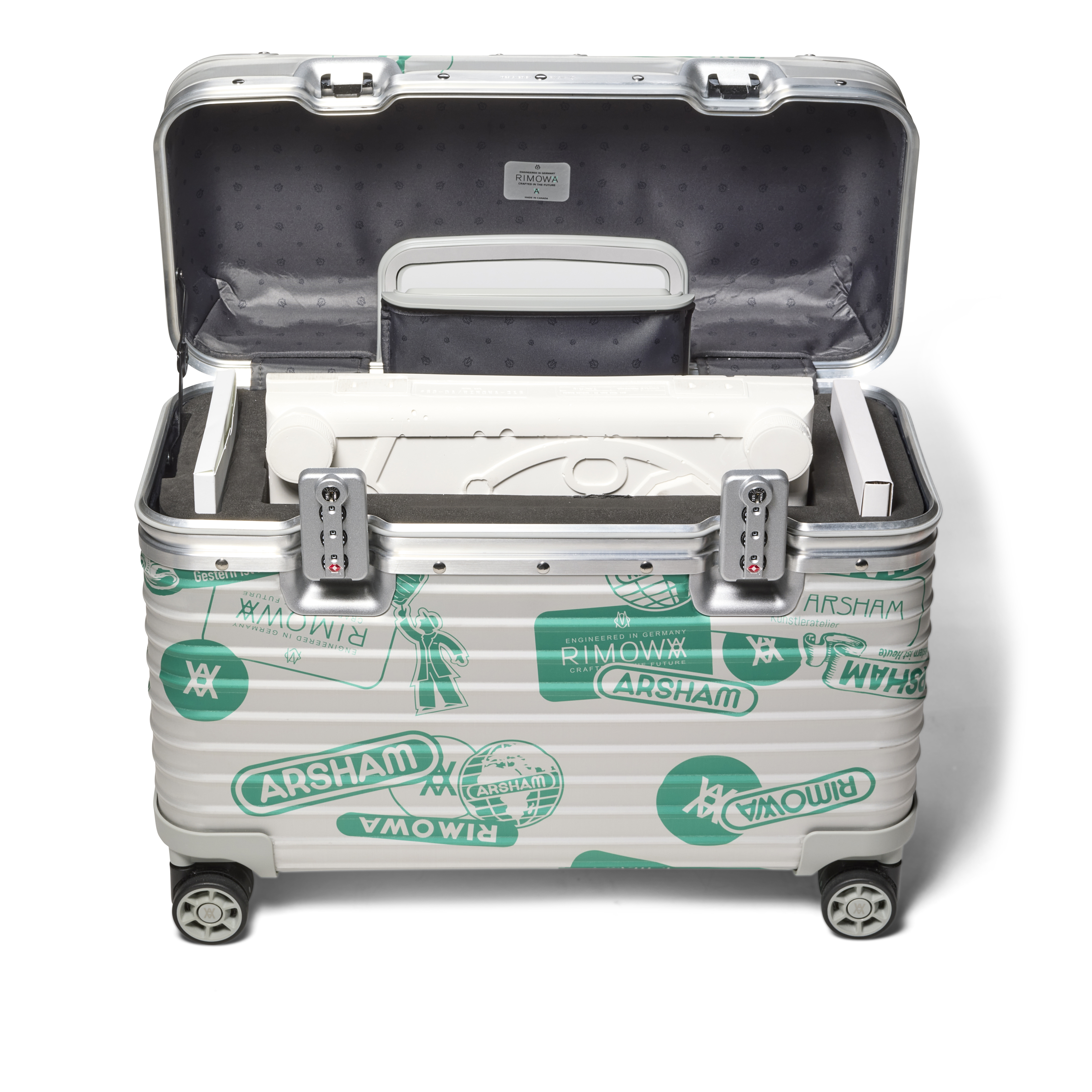 Numbered ‘360/500’ on the holographic label certifying authenticity. Accompanied by a green luggage tag, art handling gloves, care booklet and a Rimowa dust bag.