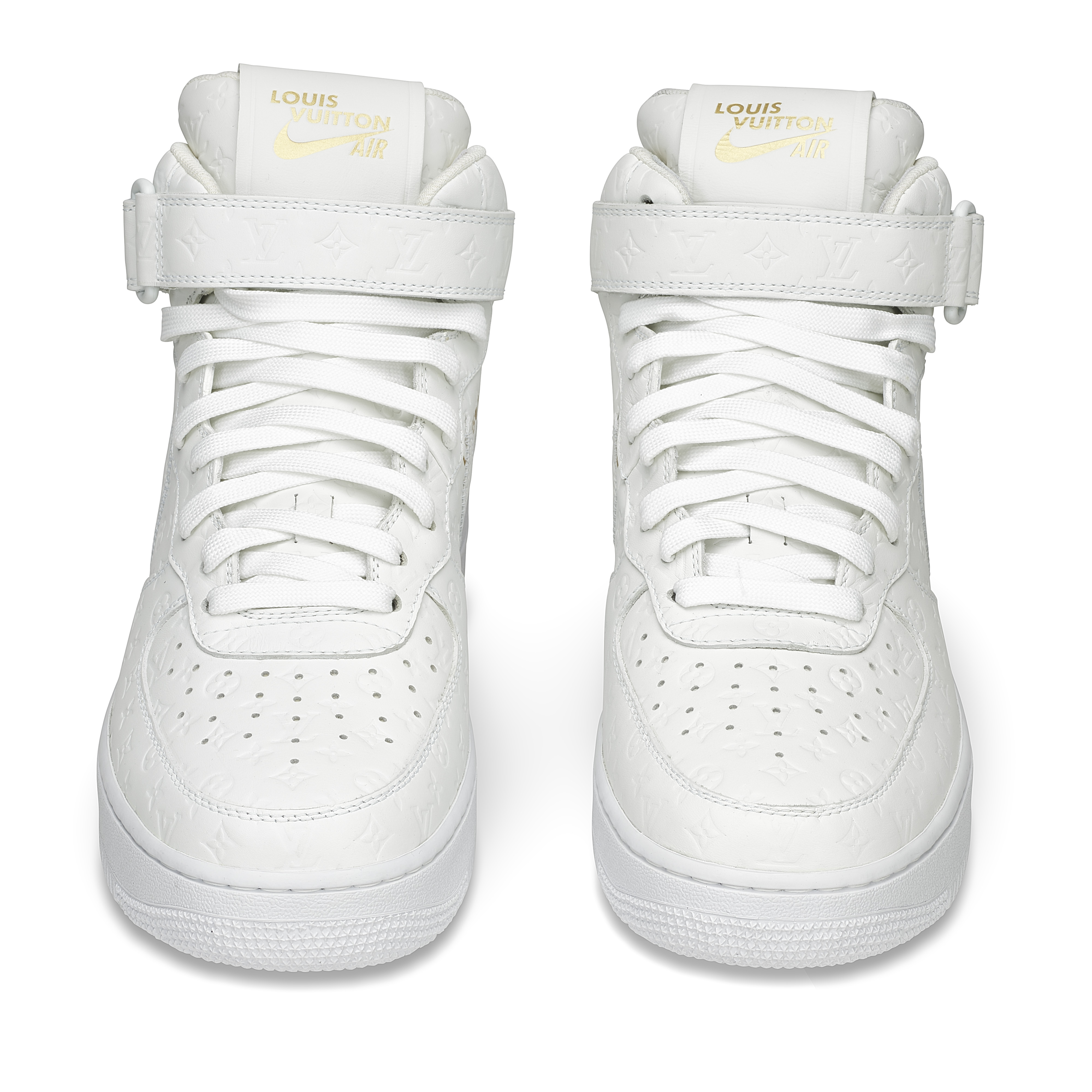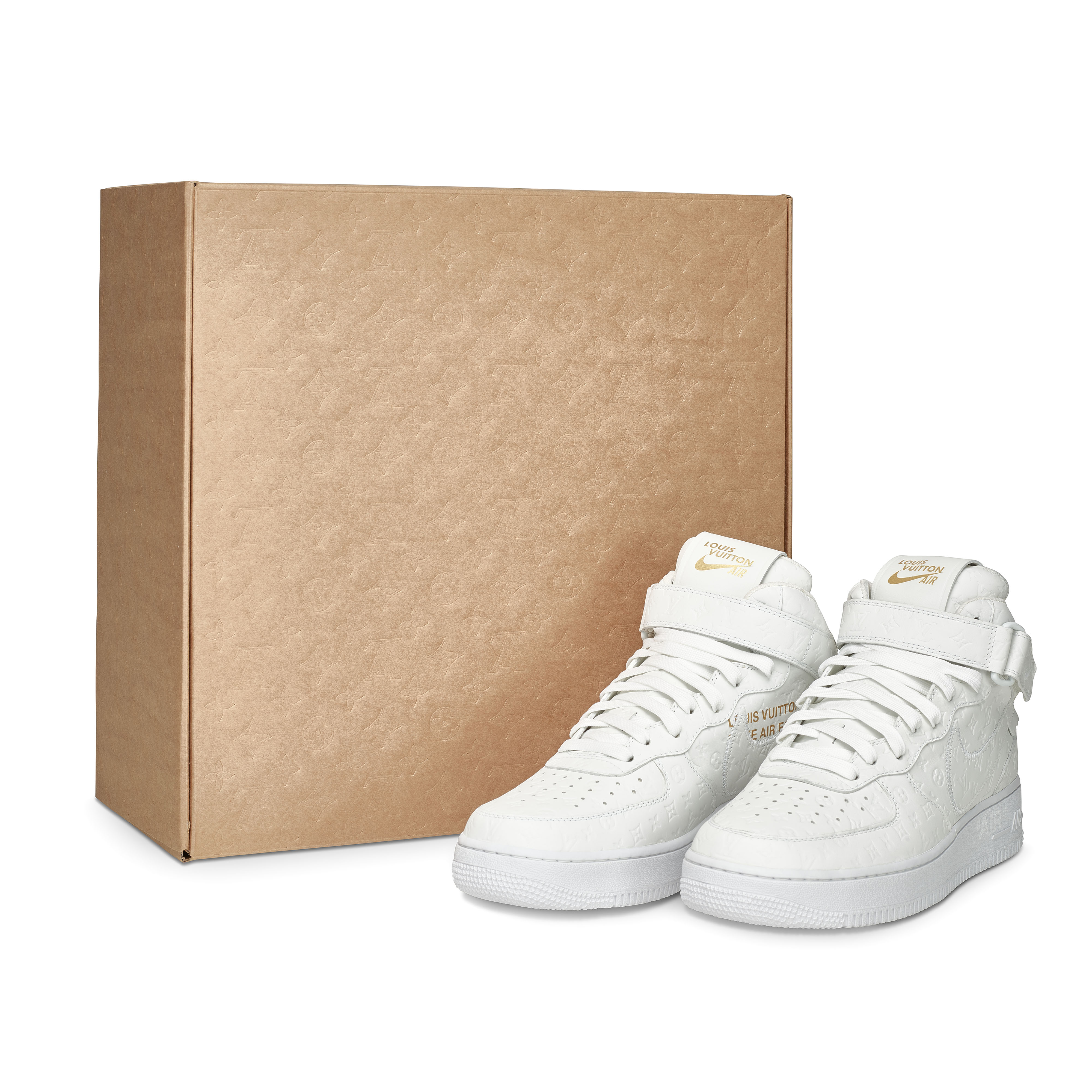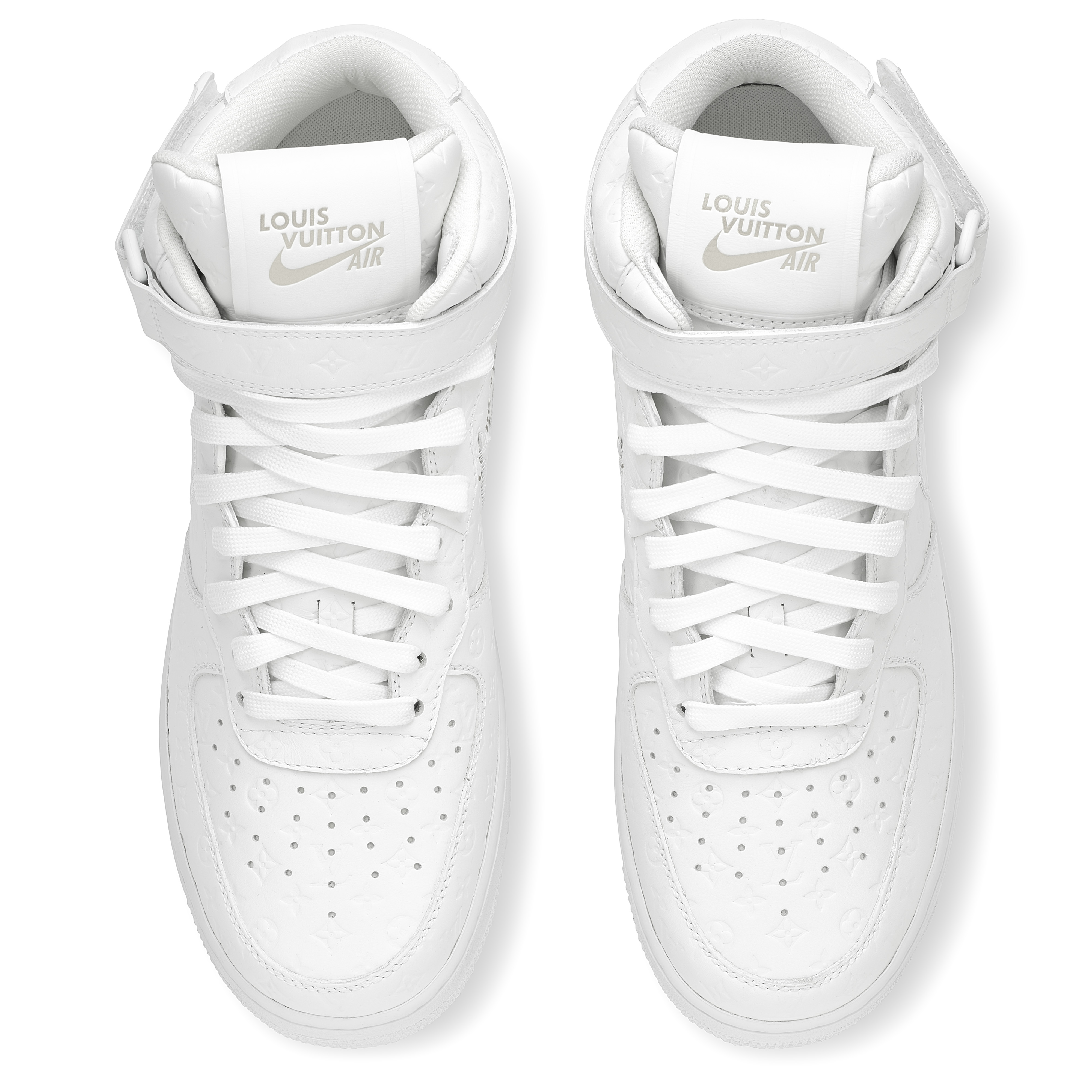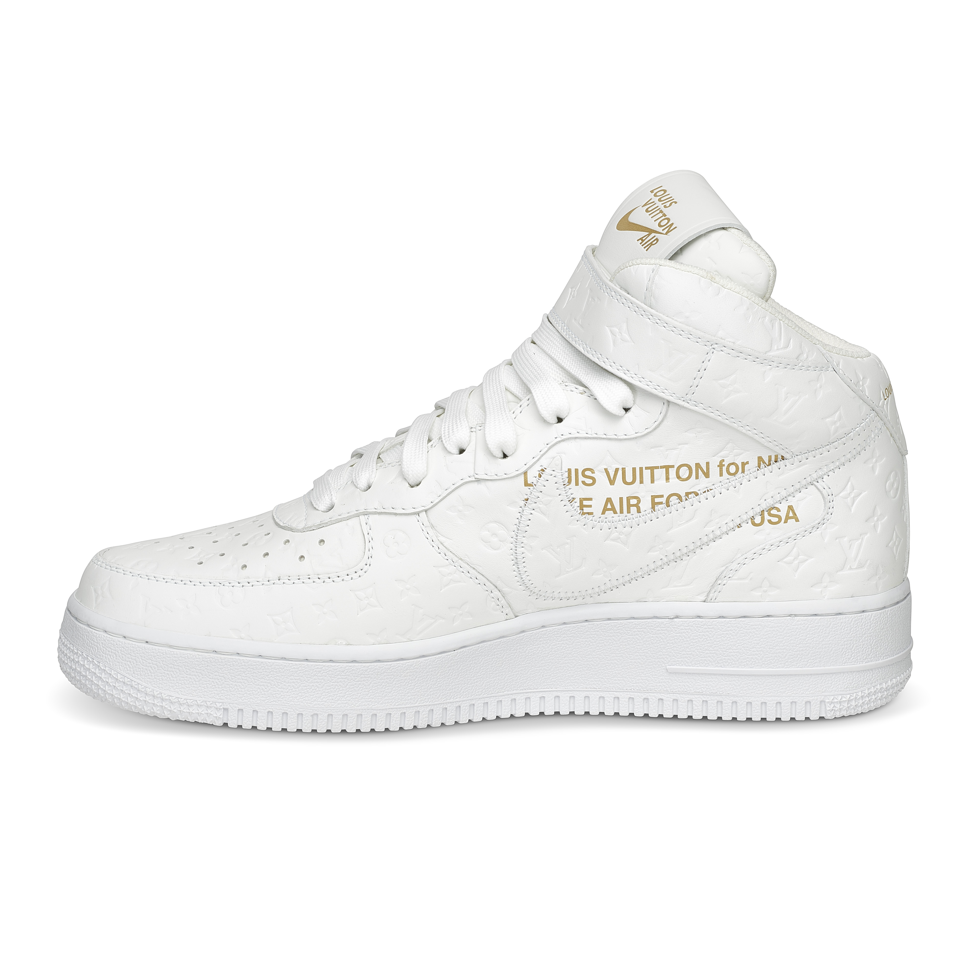 Designed under Virgil Abloh for Louis Vuitton’s Spring–Summer 2022 Men’s Collection, the Louis Vuitton x Nike Air Force 1 Mid in White is one of the most significant luxury–sneaker collaborations of the decade. Crafted in Louis Vuitton’s ateliers in Italy, the pair reimagines the classic Nike silhouette in premium white leather embossed with the Maison’s Monogram, merging couture craftsmanship with an icon of street culture. Signature LV details—including the Monogram-flower motifs, dual ankle straps, and Abloh’s hallmark quotation-mark text—elevate the sneaker into a sculptural design object. A historic fusion of two global design houses, this mid-top iteration remains one of the most sought-after expressions of Virgil Abloh’s pioneering vision.