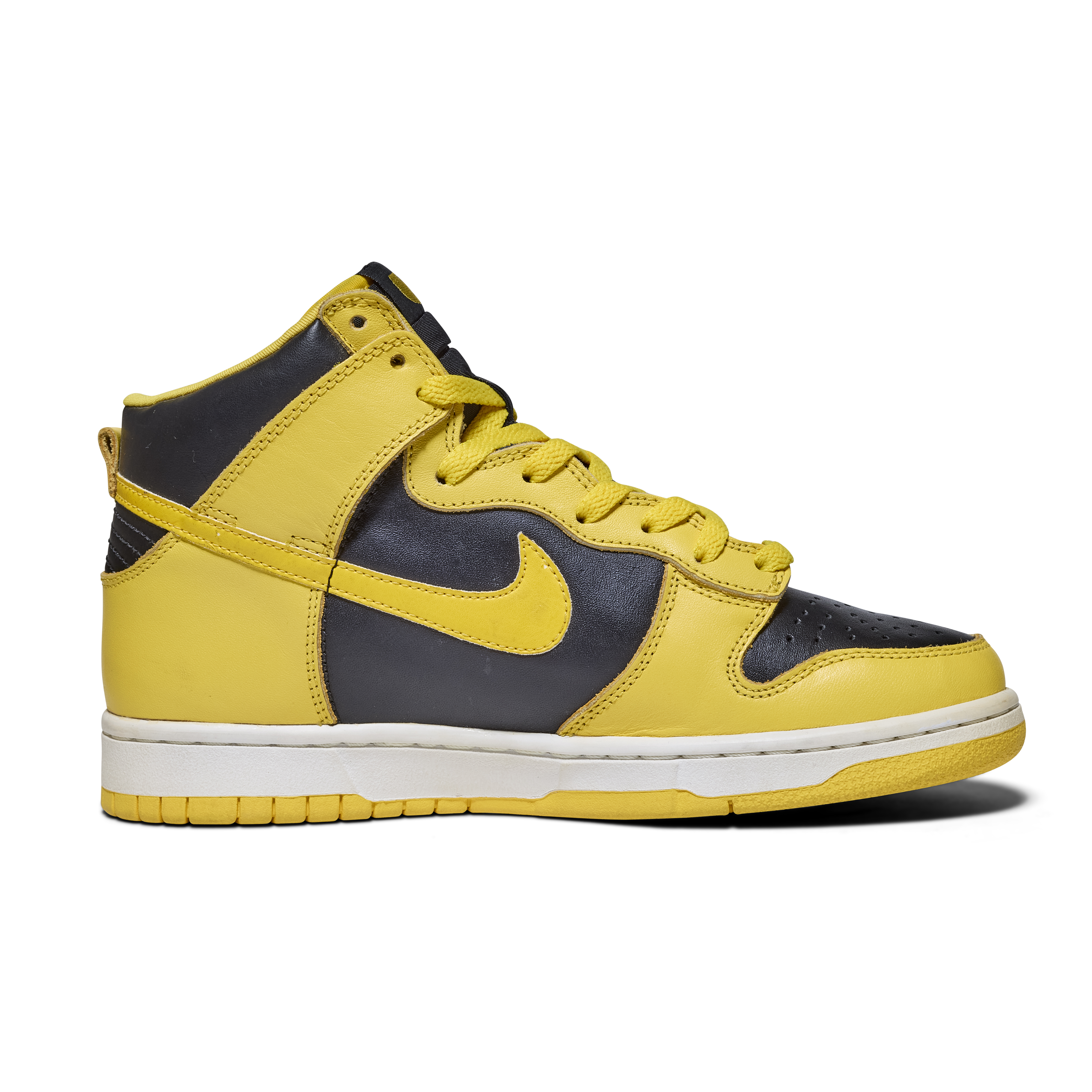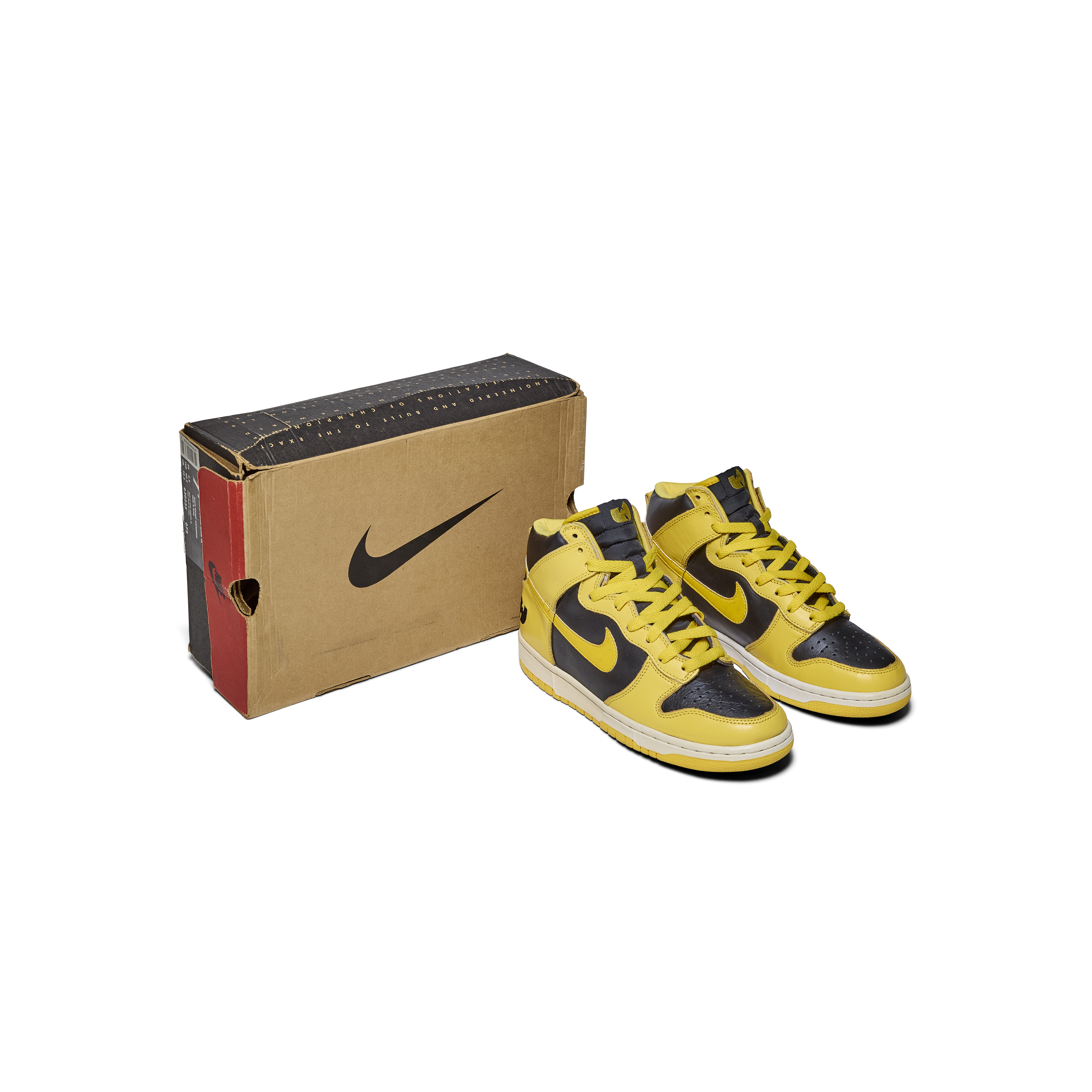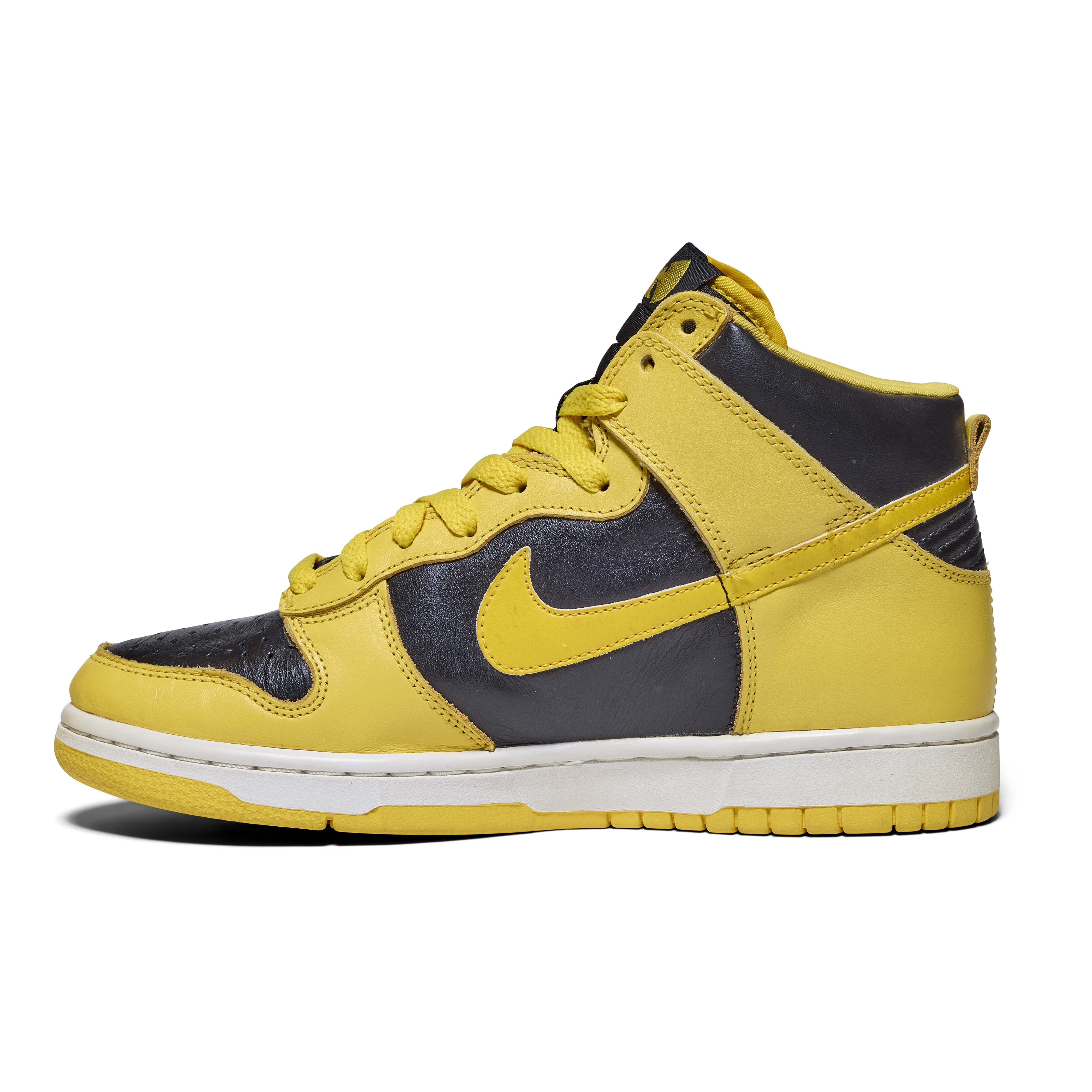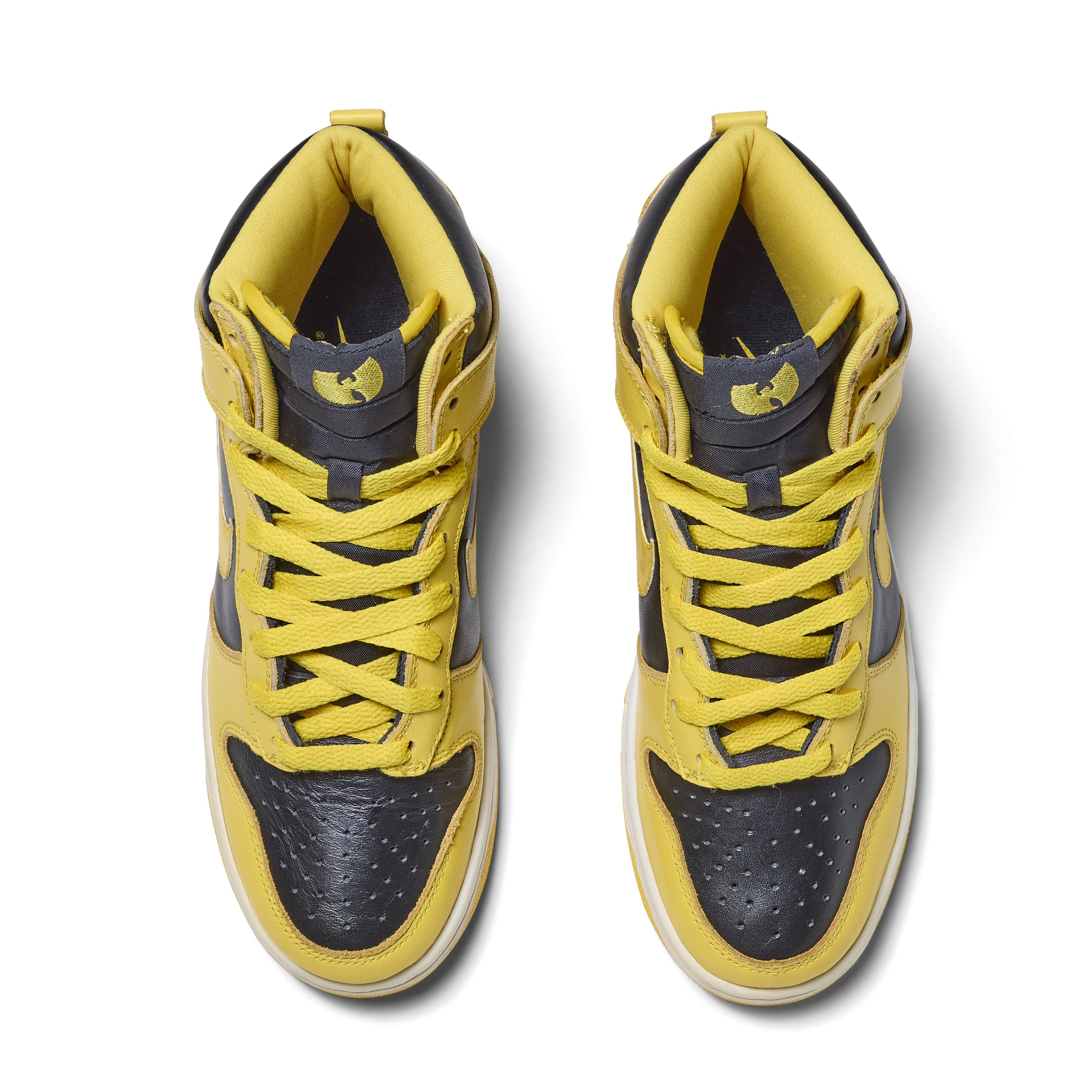 These Wu-Tang x Nike Dunk High sneakers are among the most coveted and elusive Dunks ever produced. Created in 1999 as an exclusive promotional item for the Wu-Tang Clan and their close friends and family, they were never made available to the public and remain exceptionally rare. Dressed in the group’s signature black and yellow (officially goldenrod) colorway—a nod to the Wu-Tang Clan’s “Killer Bees” moniker—the shoes feature premium color blocking with the iconic Wu-Tang “W” logo embroidered on the lateral heels and tongues. This pair is a men’s size 7.5 (also fitting a women’s size 9) and comes brand new in its original box, making it an extraordinary collector’s piece from one of the most legendary non-retail Nike releases of all time.