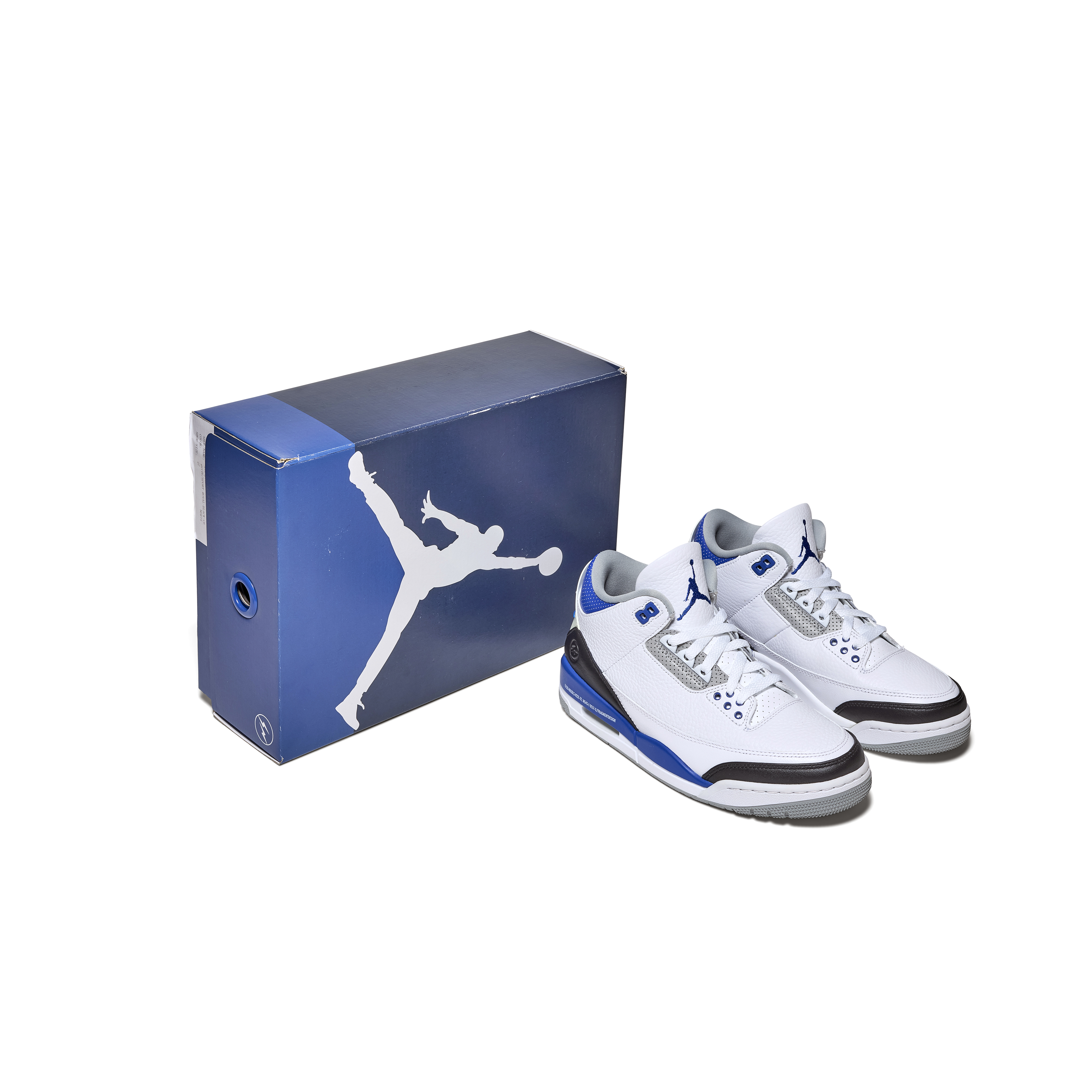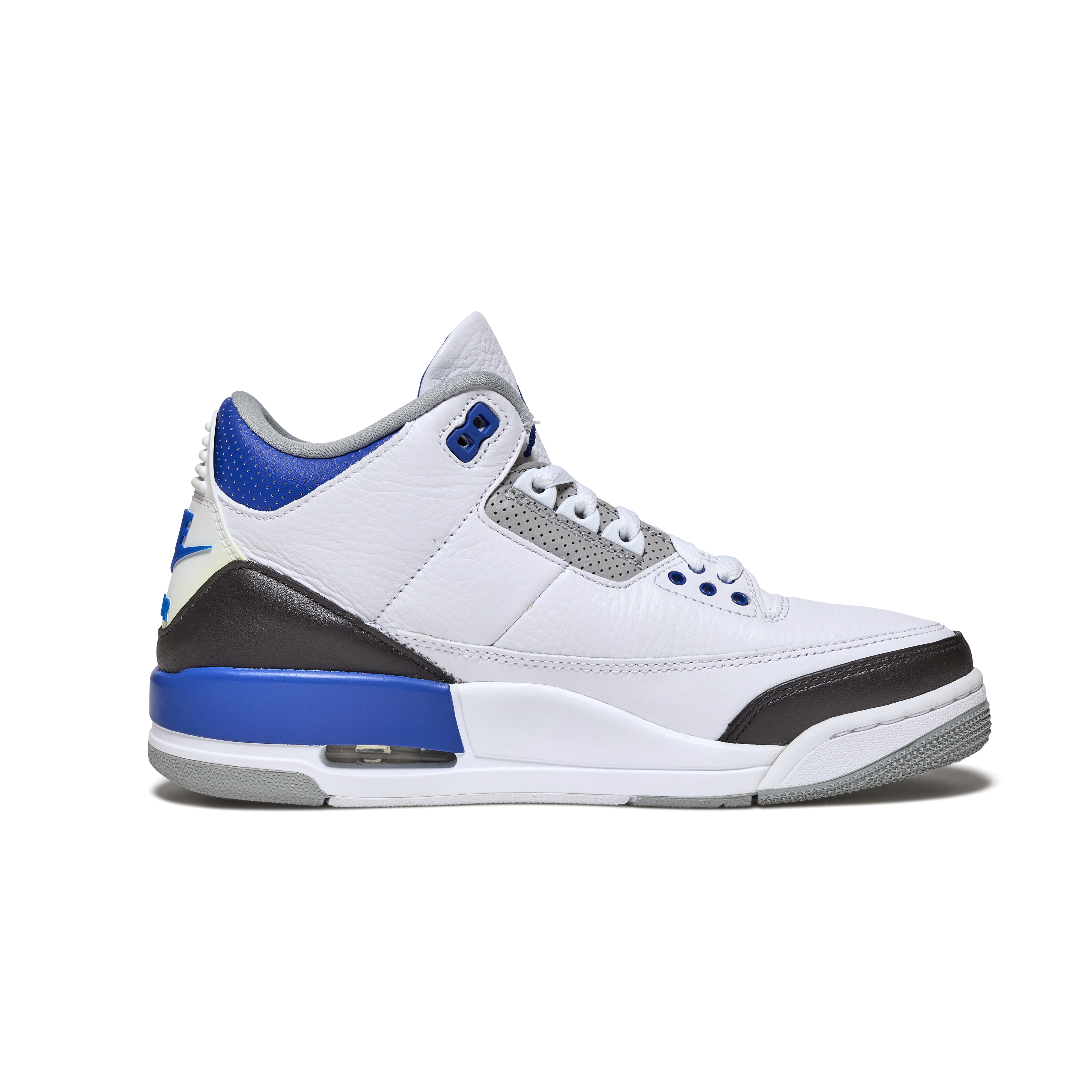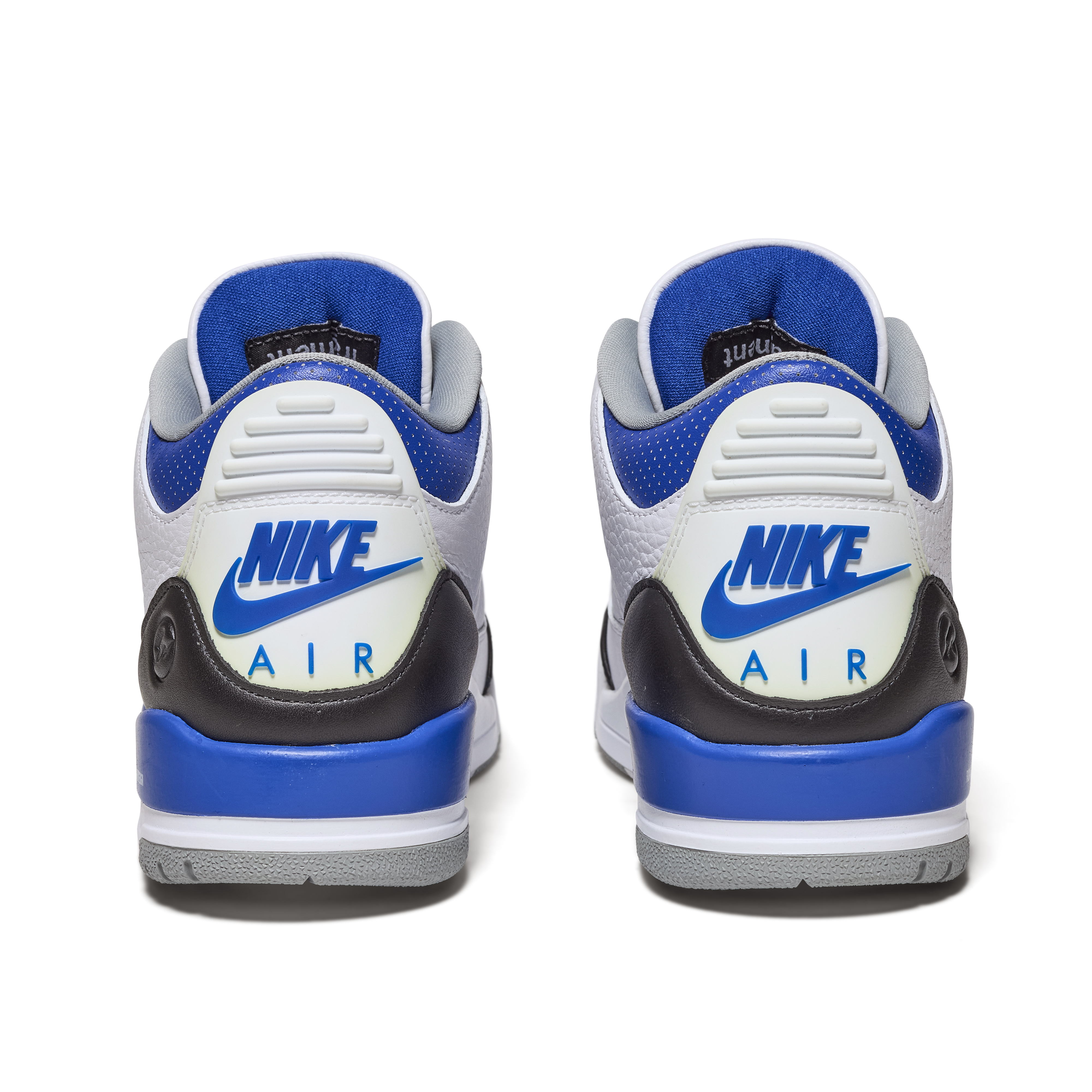 These Fragment x Air Jordan 3 sneakers are ultra-rare Promo Samples and Friends & Family exclusives, created as part of the collaboration between Jordan Brand and Hiroshi Fujiwara’s Fragment Design but never released to the public. Crafted with premium white leather uppers accented by black panels and sport royal blue detailing, the pair features Fragment’s iconic lightning bolt logo on the lateral heels. The style number, color code, and season are printed cleanly along the midsoles just above the visible Air bubbles—an homage to the technical precision behind the design. Air Jordan 3s were the first Air Jordan model designed by Tinker Hatfield and the first Air Jordan to showcase both the Jumpman logo and visible Air cushioning. This unreleased Fragment Sample stands as a highly coveted fusion of historic Jordan heritage and Fujiwara’s refined aesthetic.