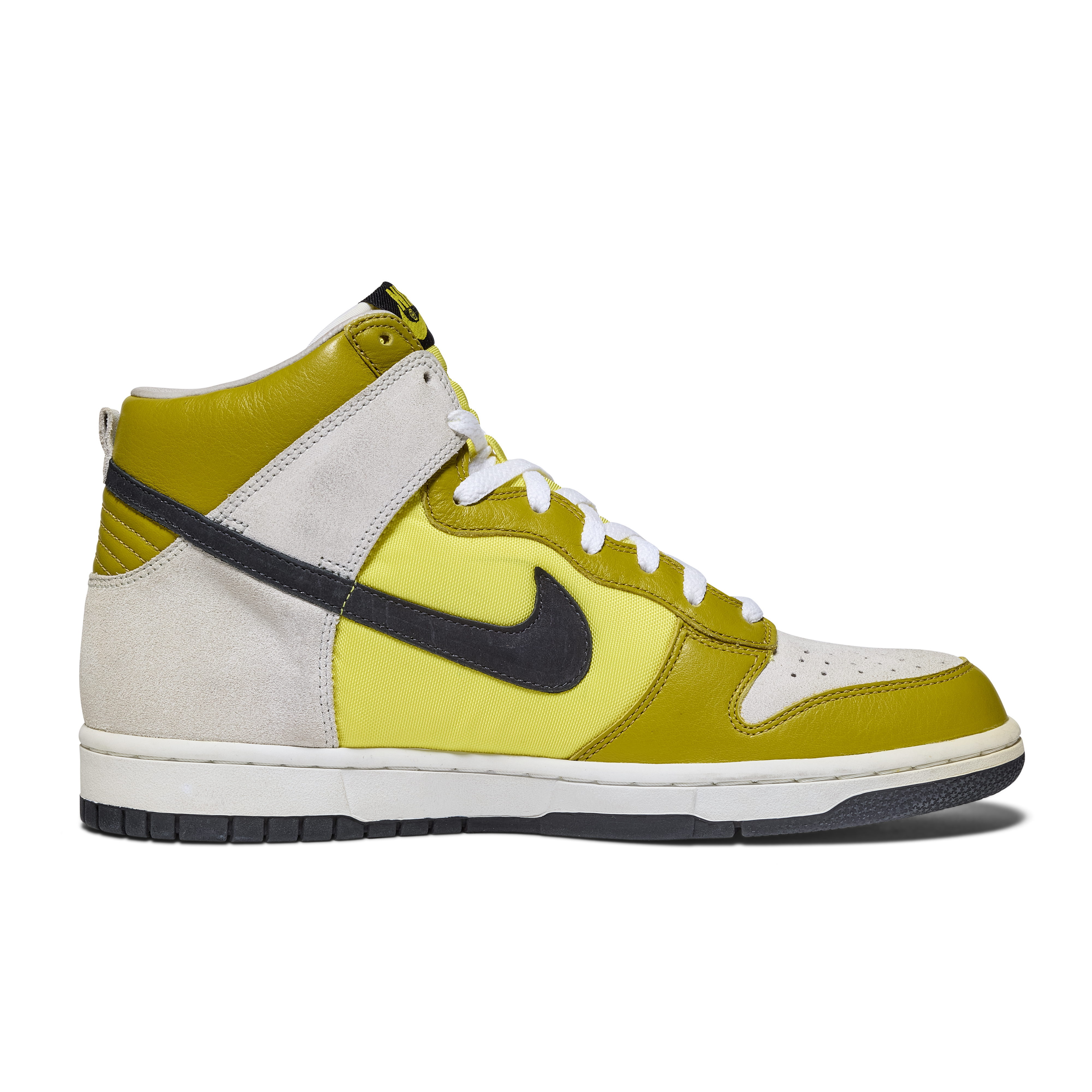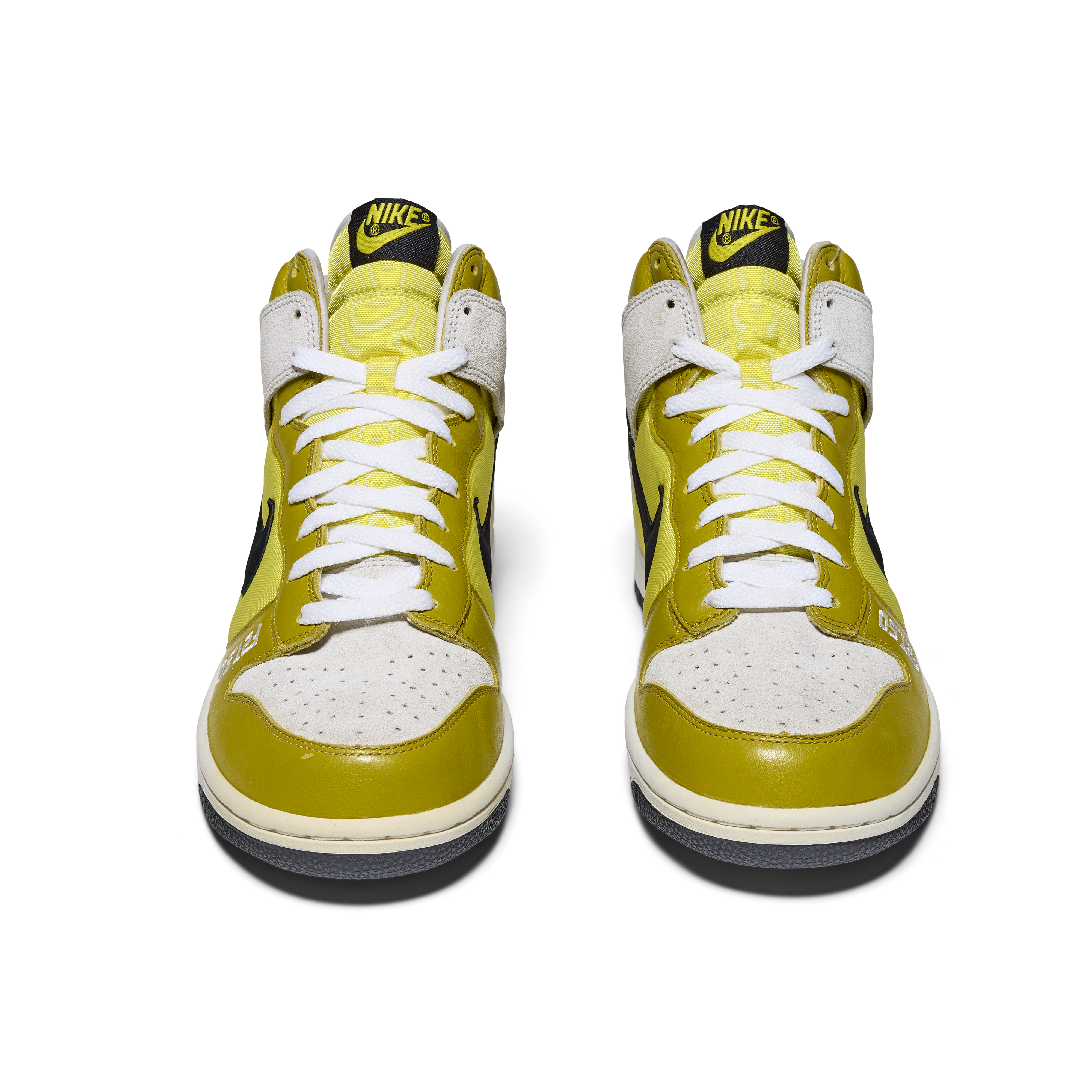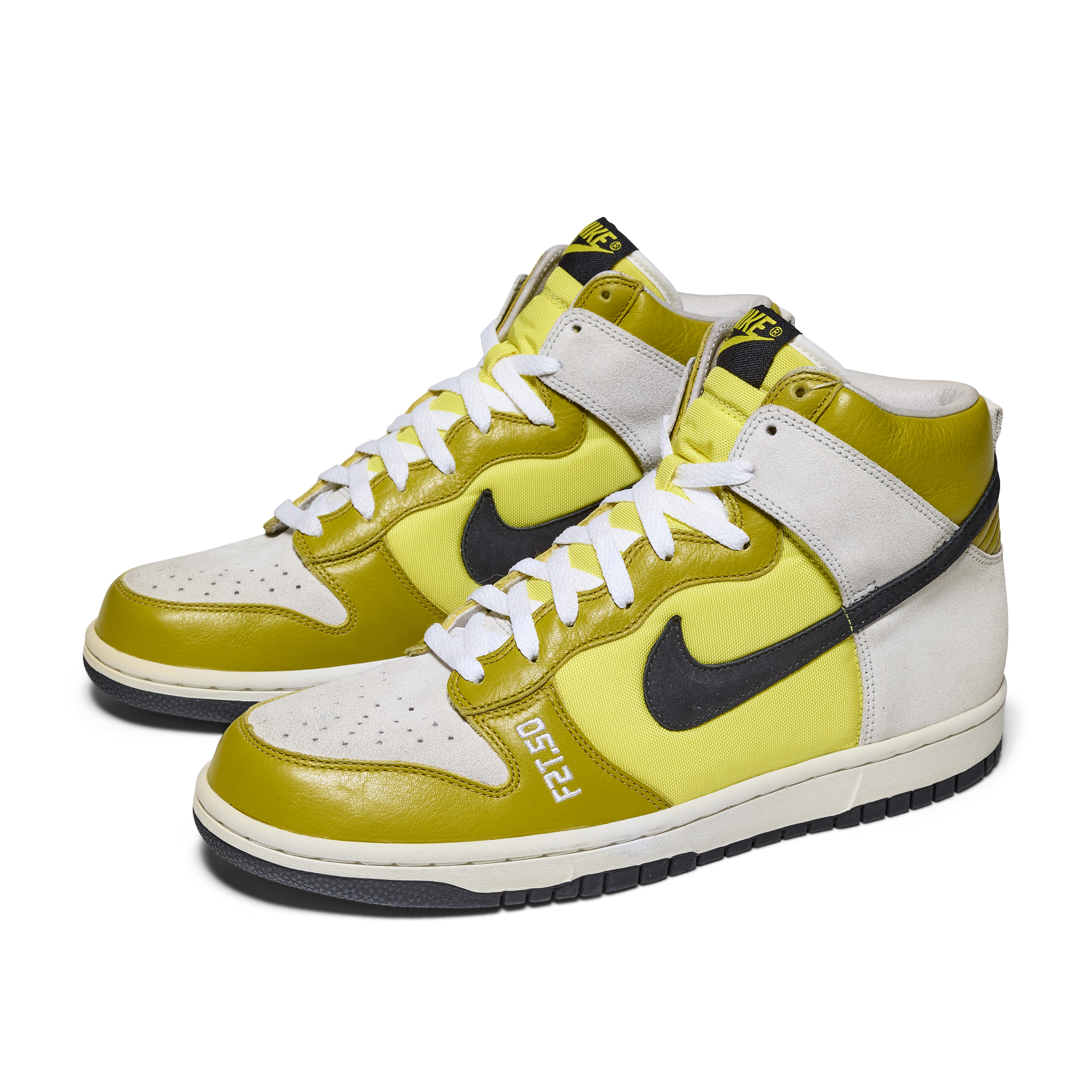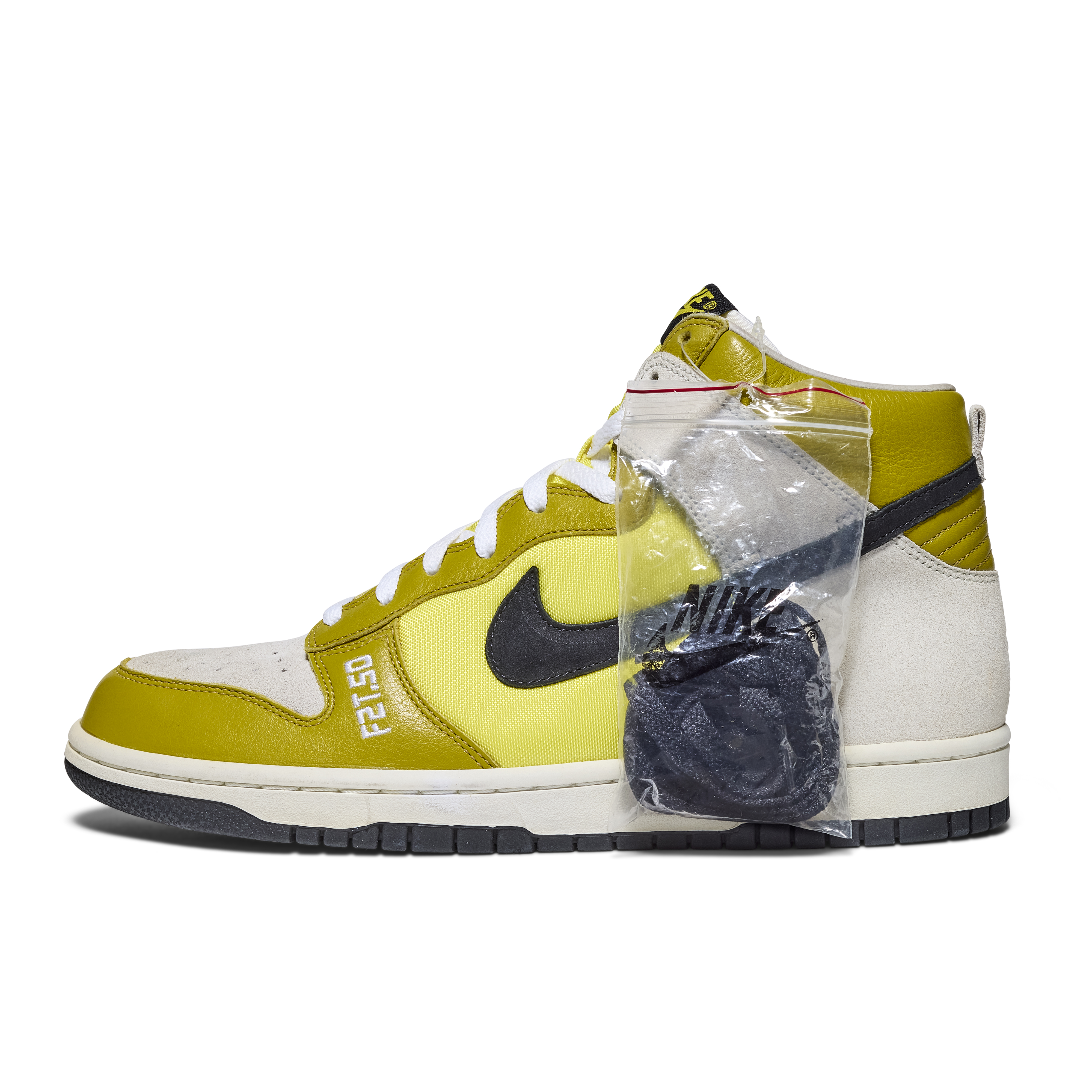Created in 2006 to celebrate the 50th birthday of legendary graffiti artist Futura, the F2T-50 Dunk High Premium stands among the rarest Nike artist collaborations ever produced. Developed in partnership with both Futura and Stash, these Promo Confirmation Samples were never released to the public and were produced exclusively for internal use, this pair features sample tags and includes sample hangtags. The design features a white, black, and bright citron colorway executed in suede, leather, and mesh, with “F2T.50” embroidered across the uppers in tribute to Futura 2000 and his milestone year.