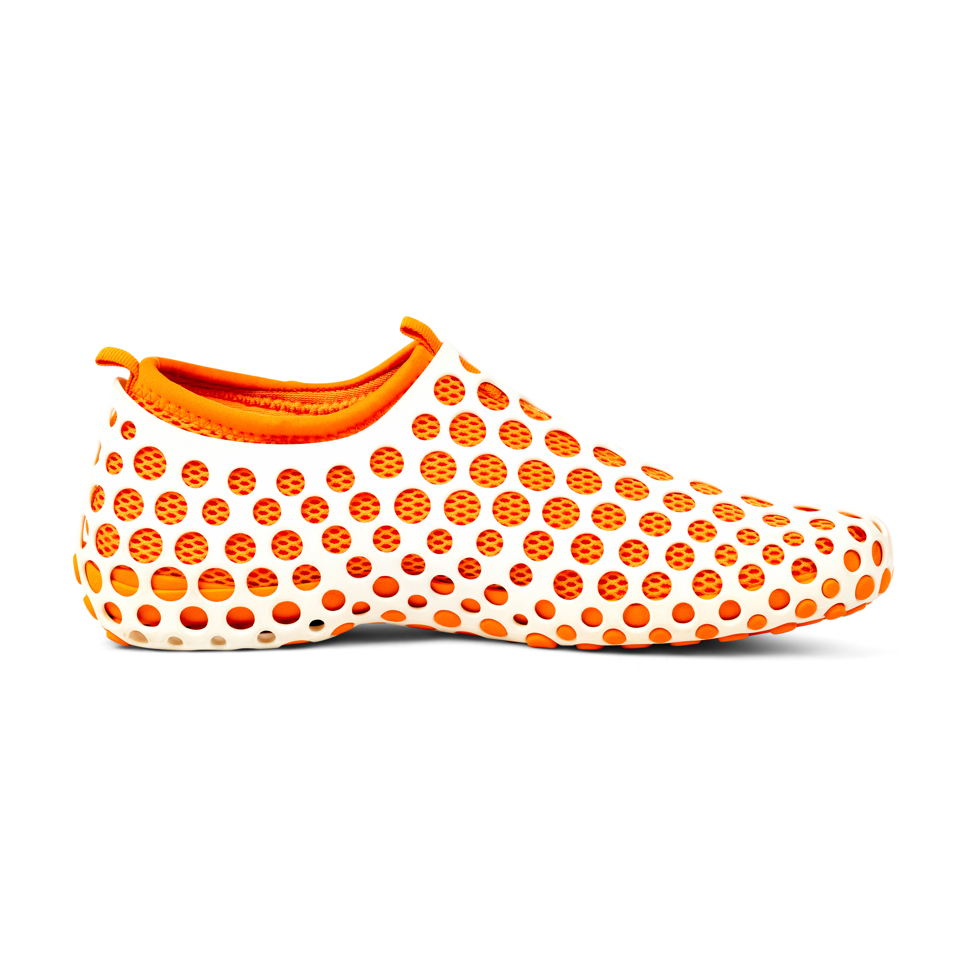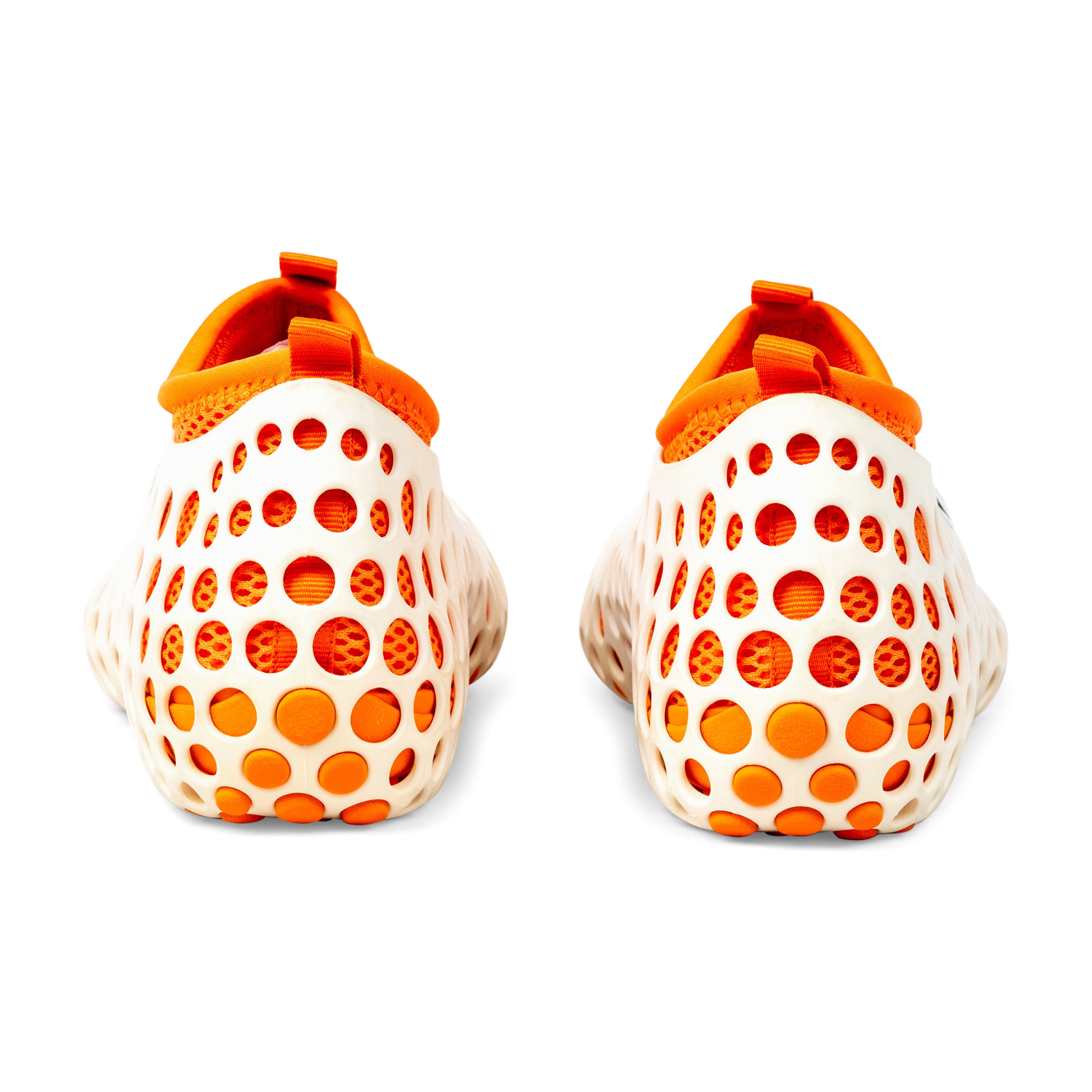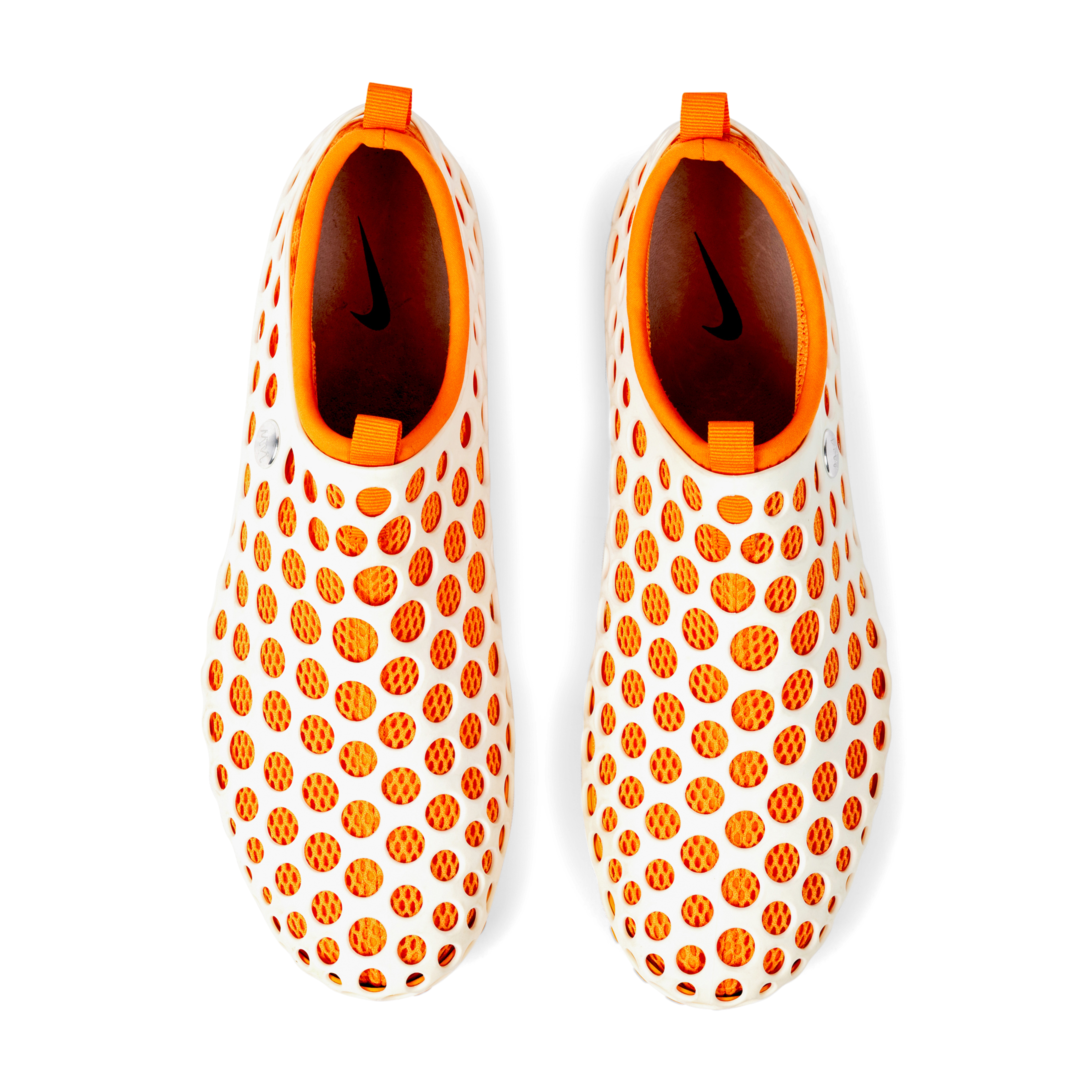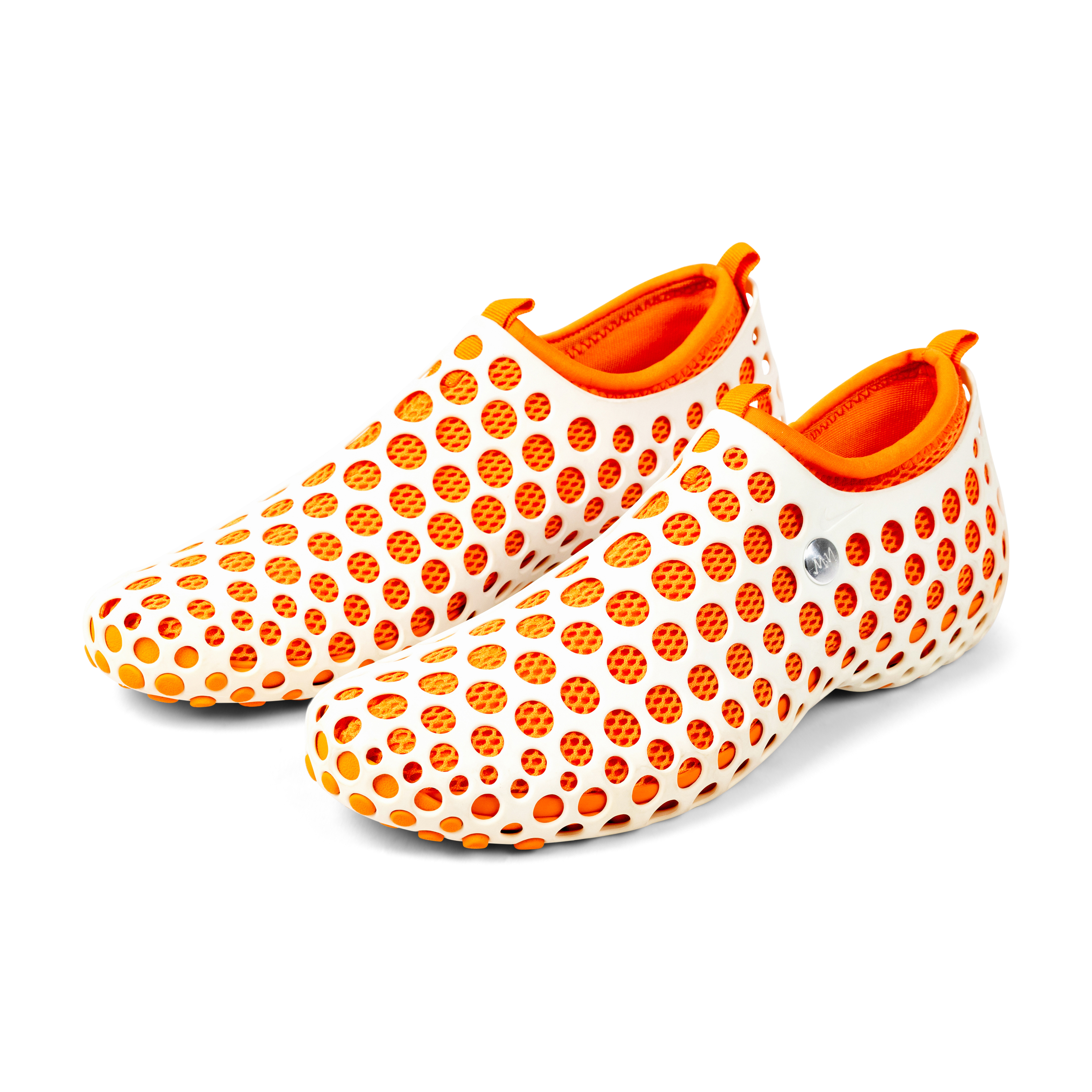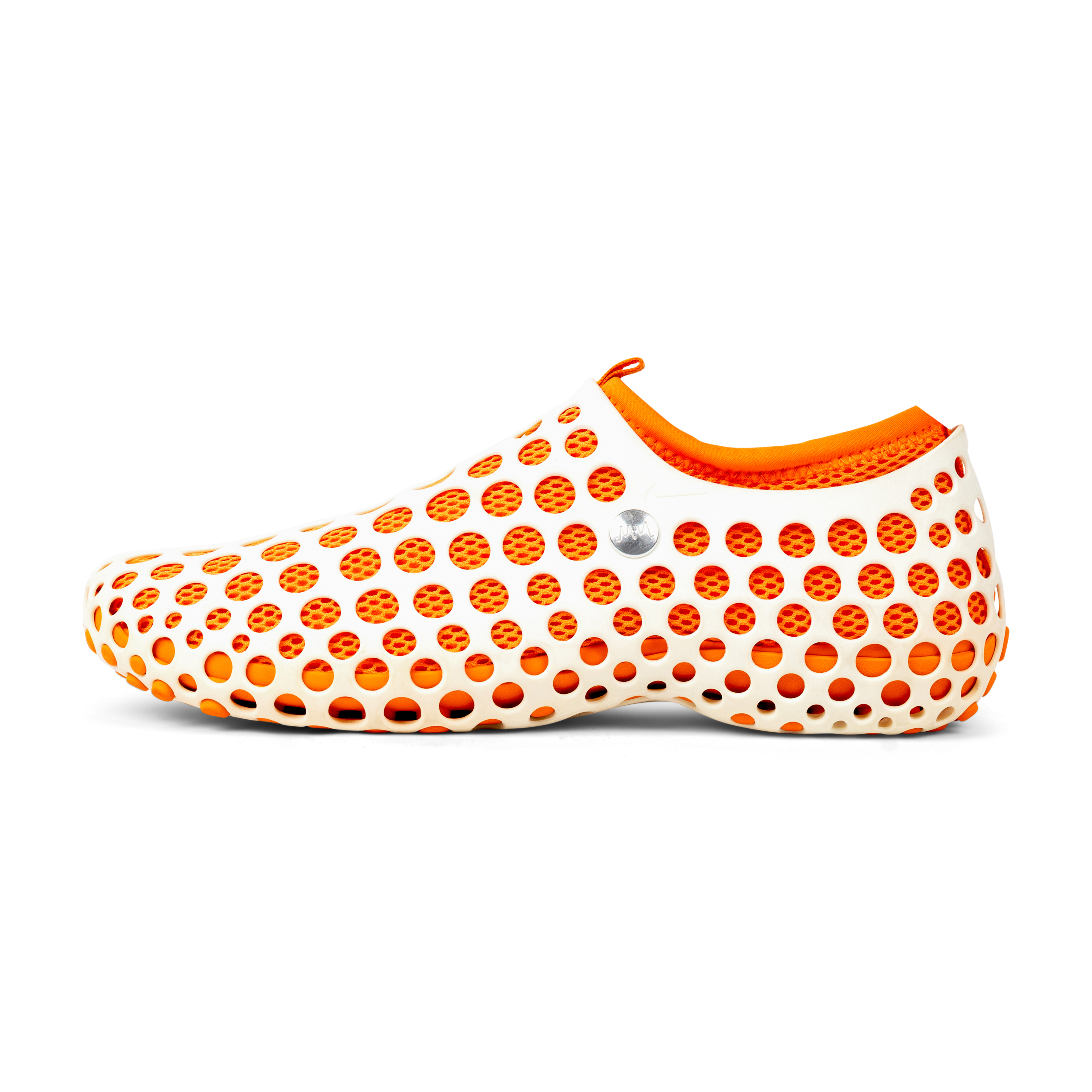 Originally released in 2004, and reissued in limited numbers by NikeLab, the Zvezdochka was a groundbreaking and futuristic modular sneaker designed by Australian industrial designer Marc Newson. Named after a Russian cosmonaut dog, the design drew inspiration from space travel and innovation. The silhouette features a perforated, exoskeletal shell over an inner bootie—engineered for versatility, breathability, and visual impact. Mark Parker, the former CEO of Nike, said the shoes were an important step in Nike's manufacturing revolution. This white and orange pair exemplifies Newson’s design ethos: equal parts conceptual, functional, and iconic. A true artifact from the intersection of product design, footwear innovation, and experimental fashion.