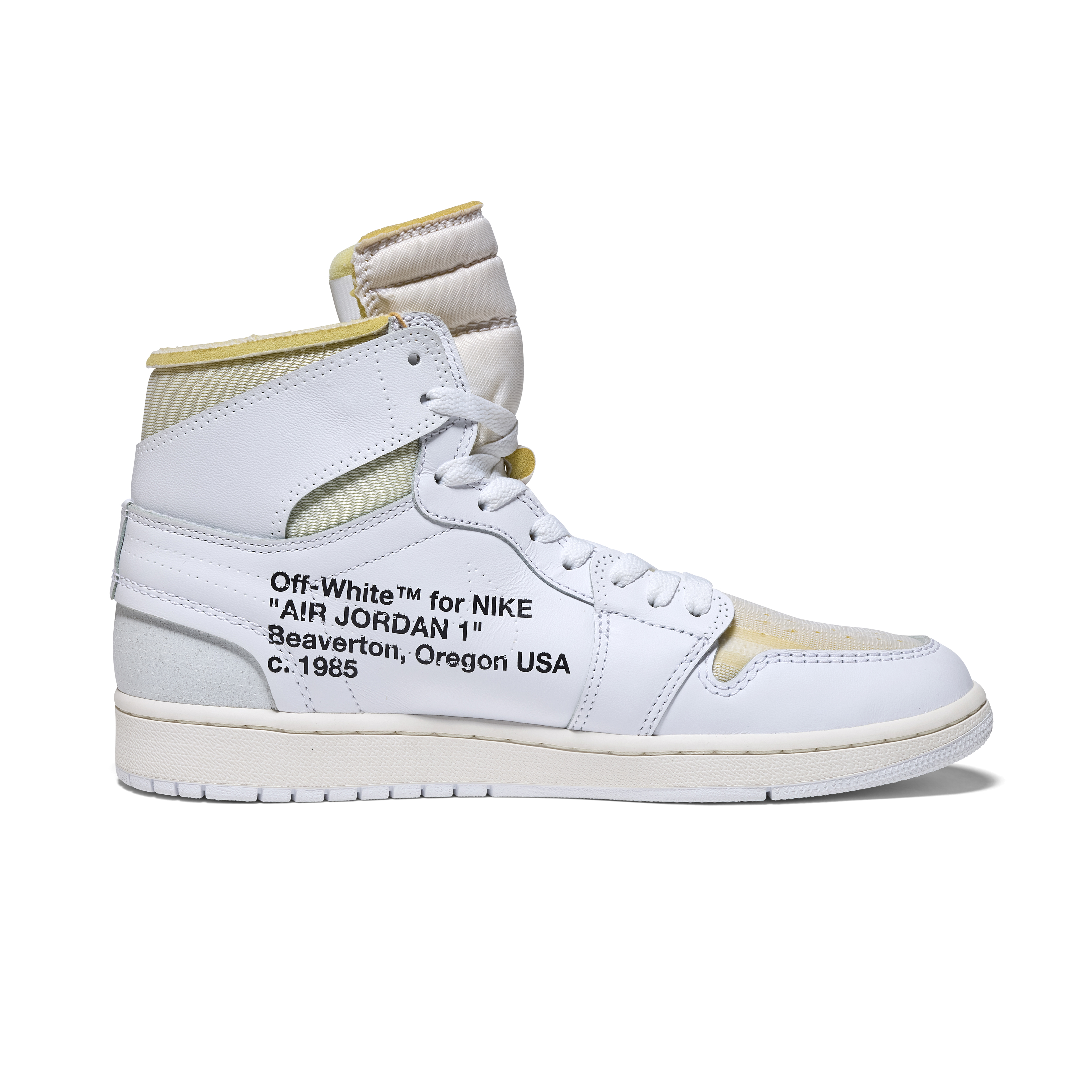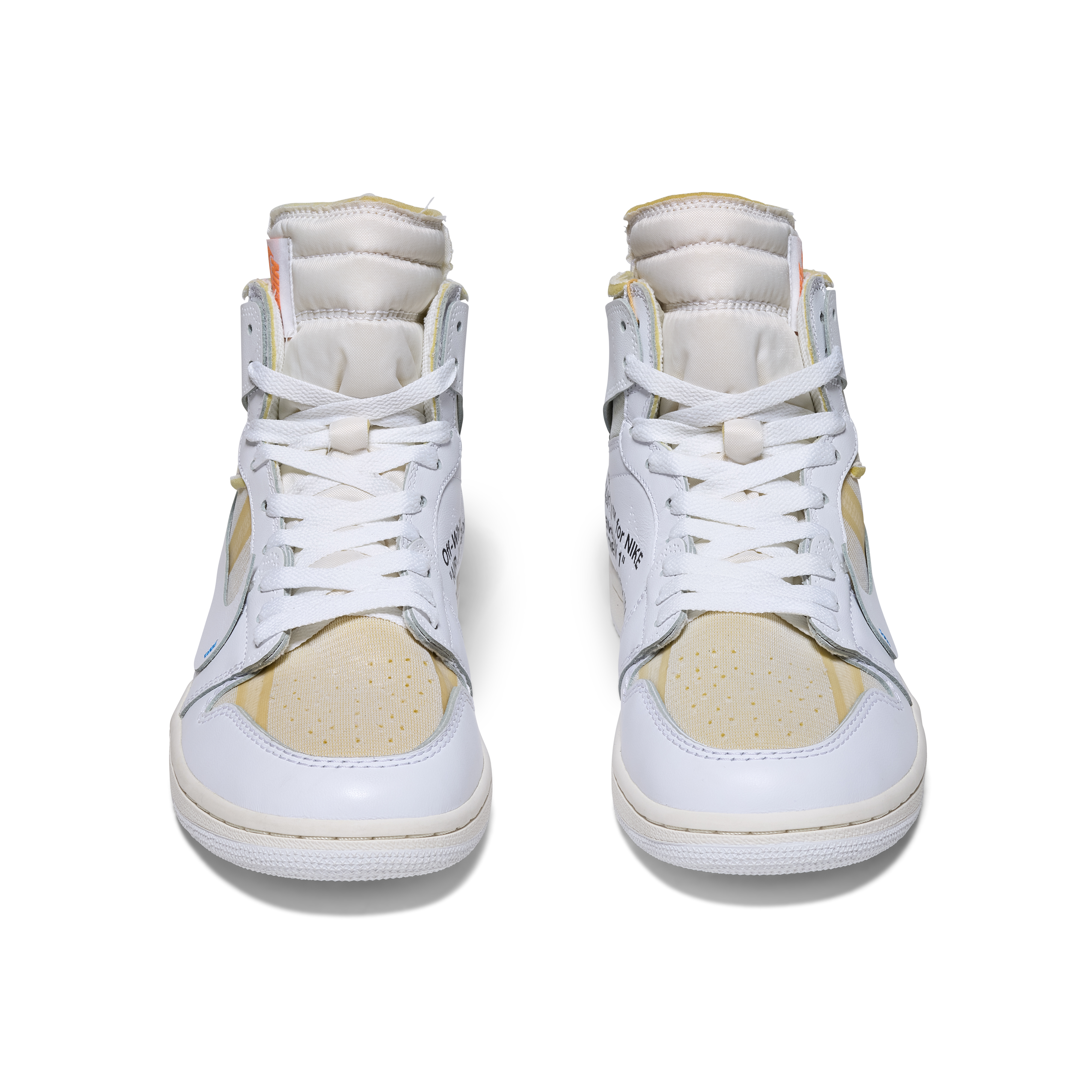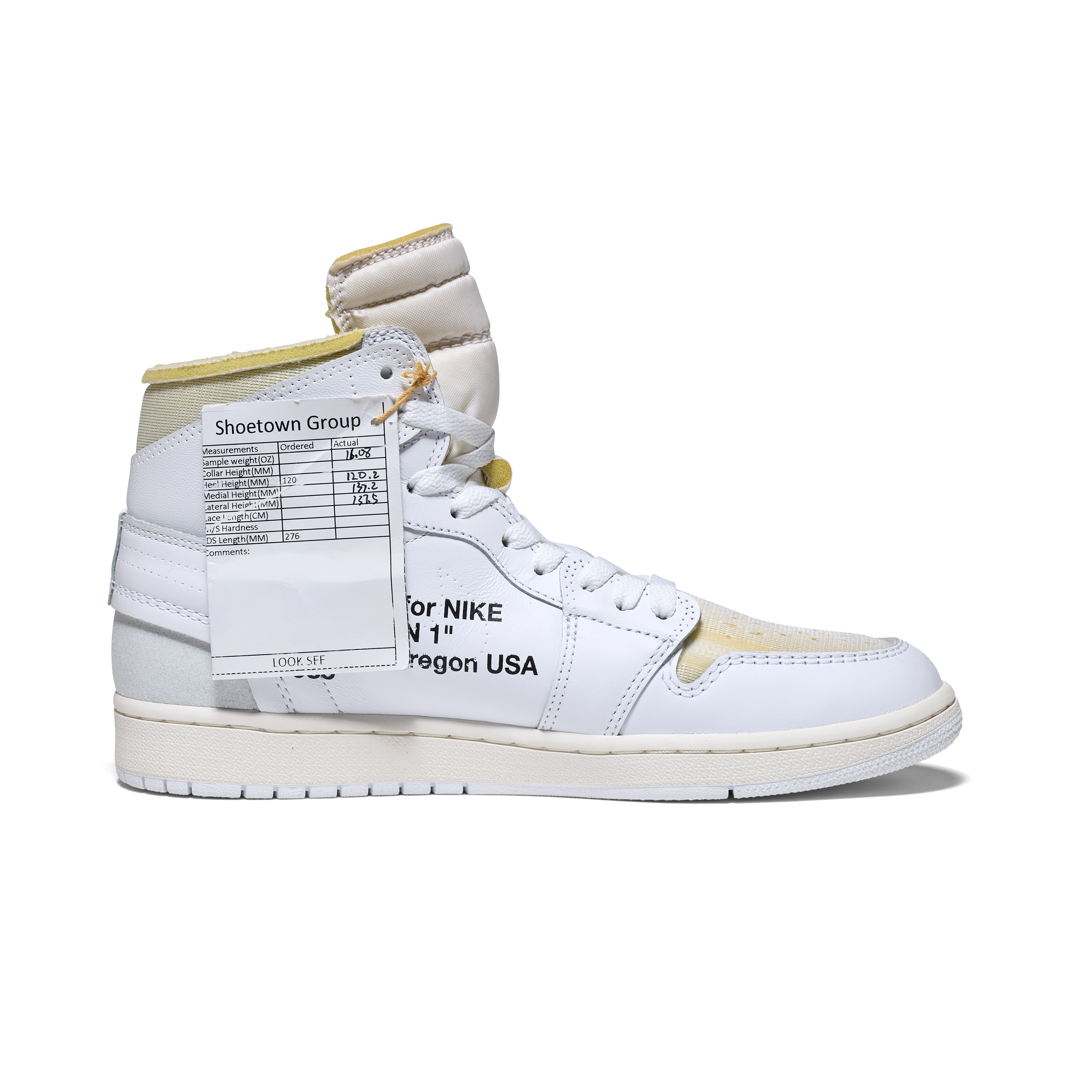 The medial sides bear the iconic Helvetica text: “Off-White for NIKE ‘Air Jordan 1’ Beaverton, Oregon USA c. 1985.” Produced in 2018, shortly after the groundbreaking The Ten collection, this unreleased sample pair represents an early and rare evolution of one of the most influential collaborations in modern sneaker history.