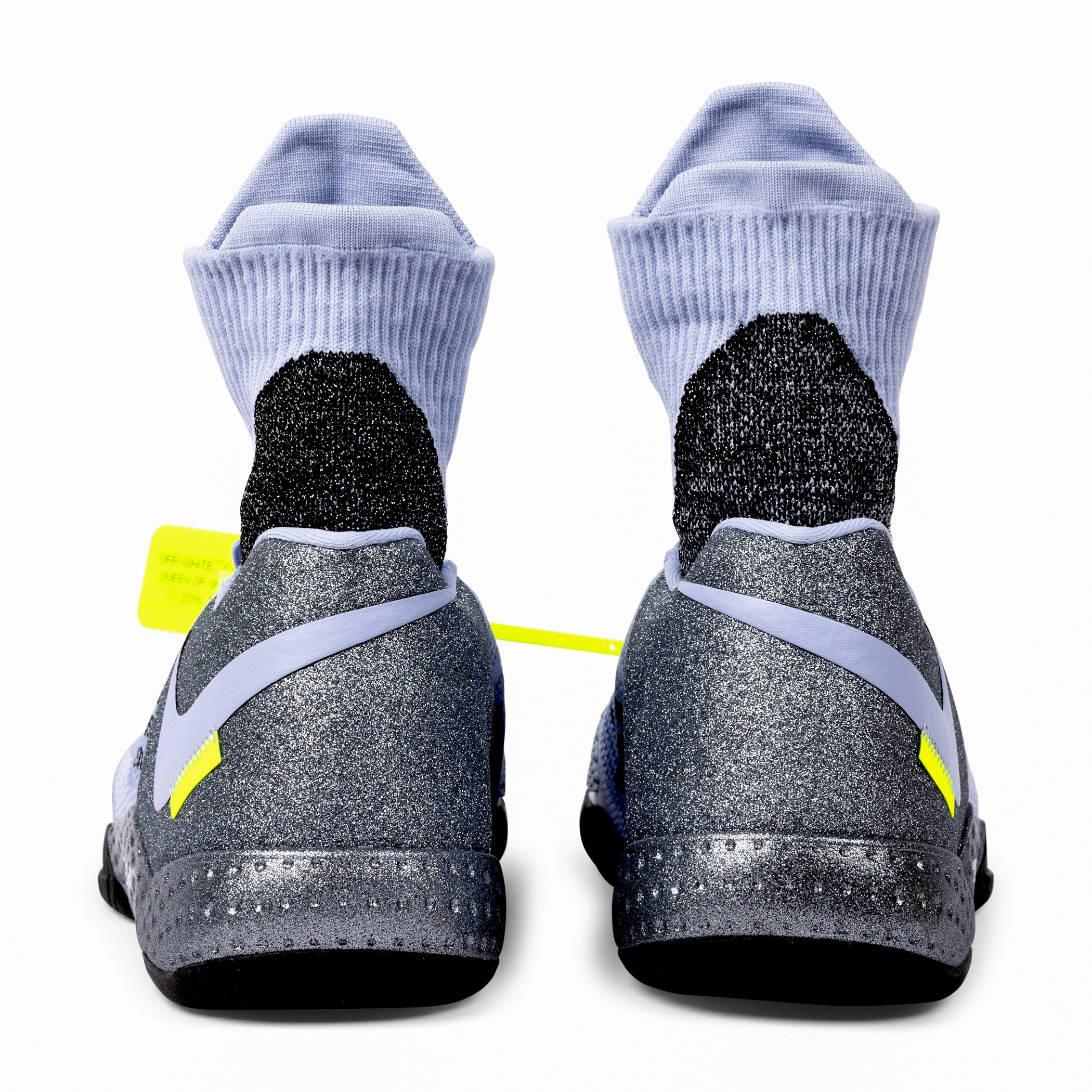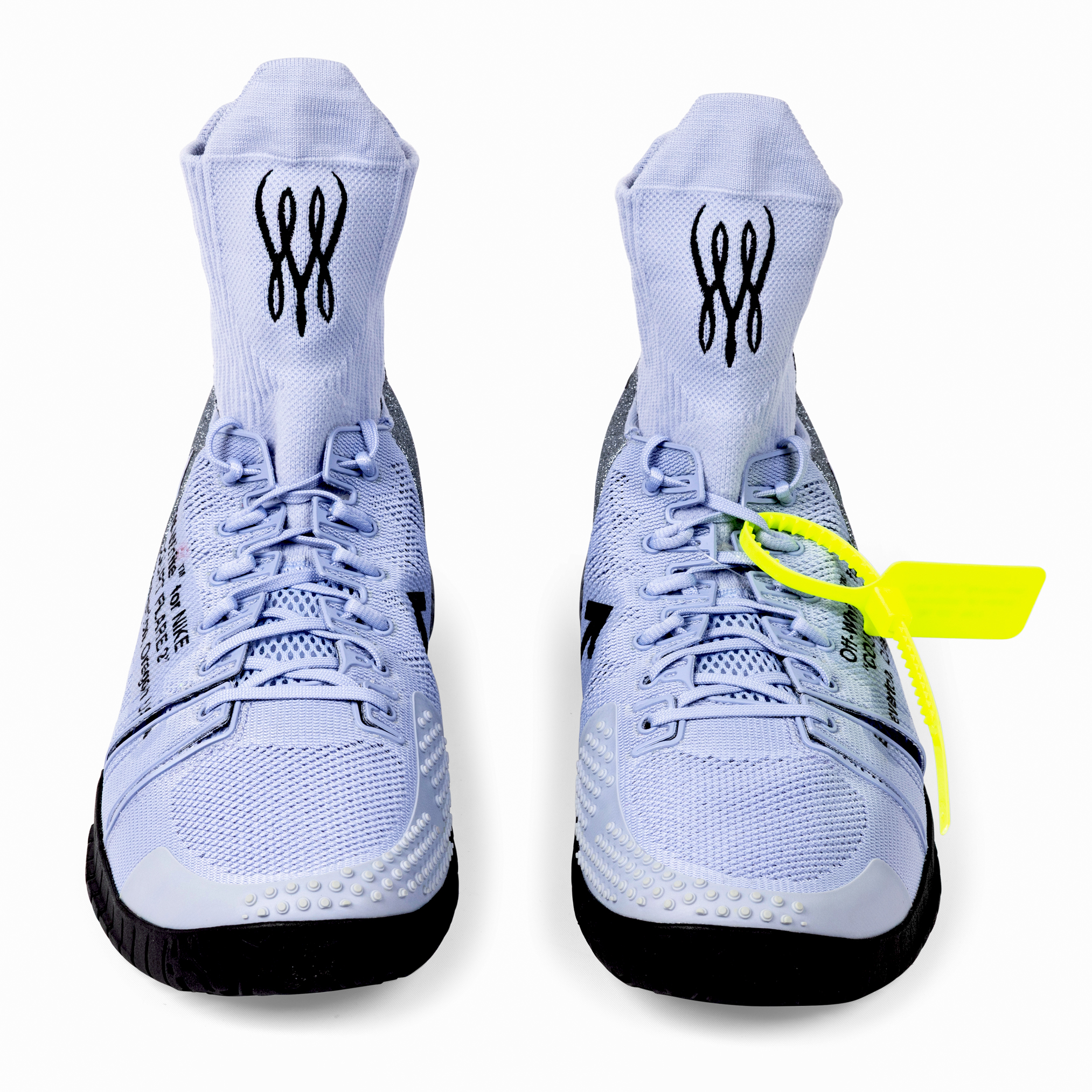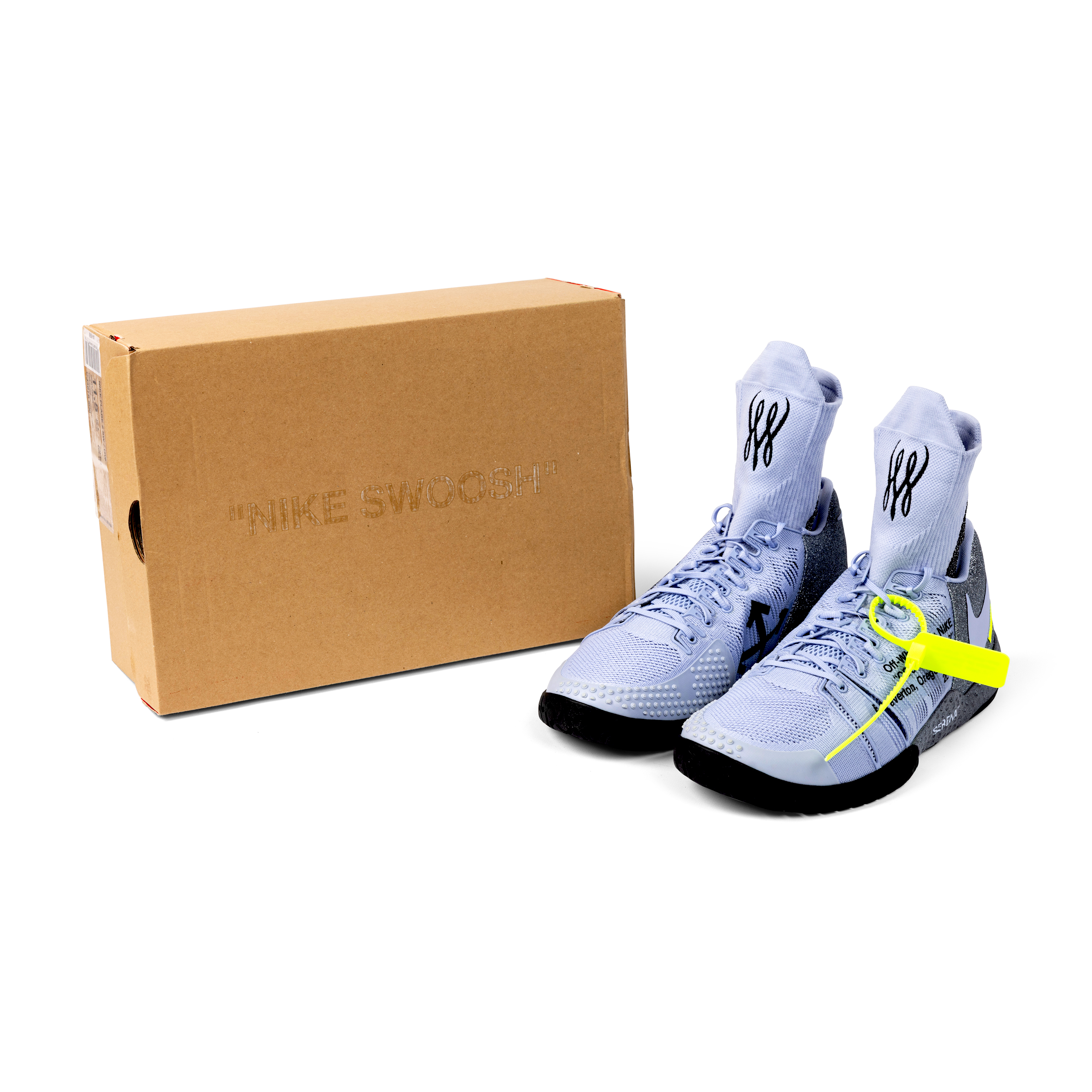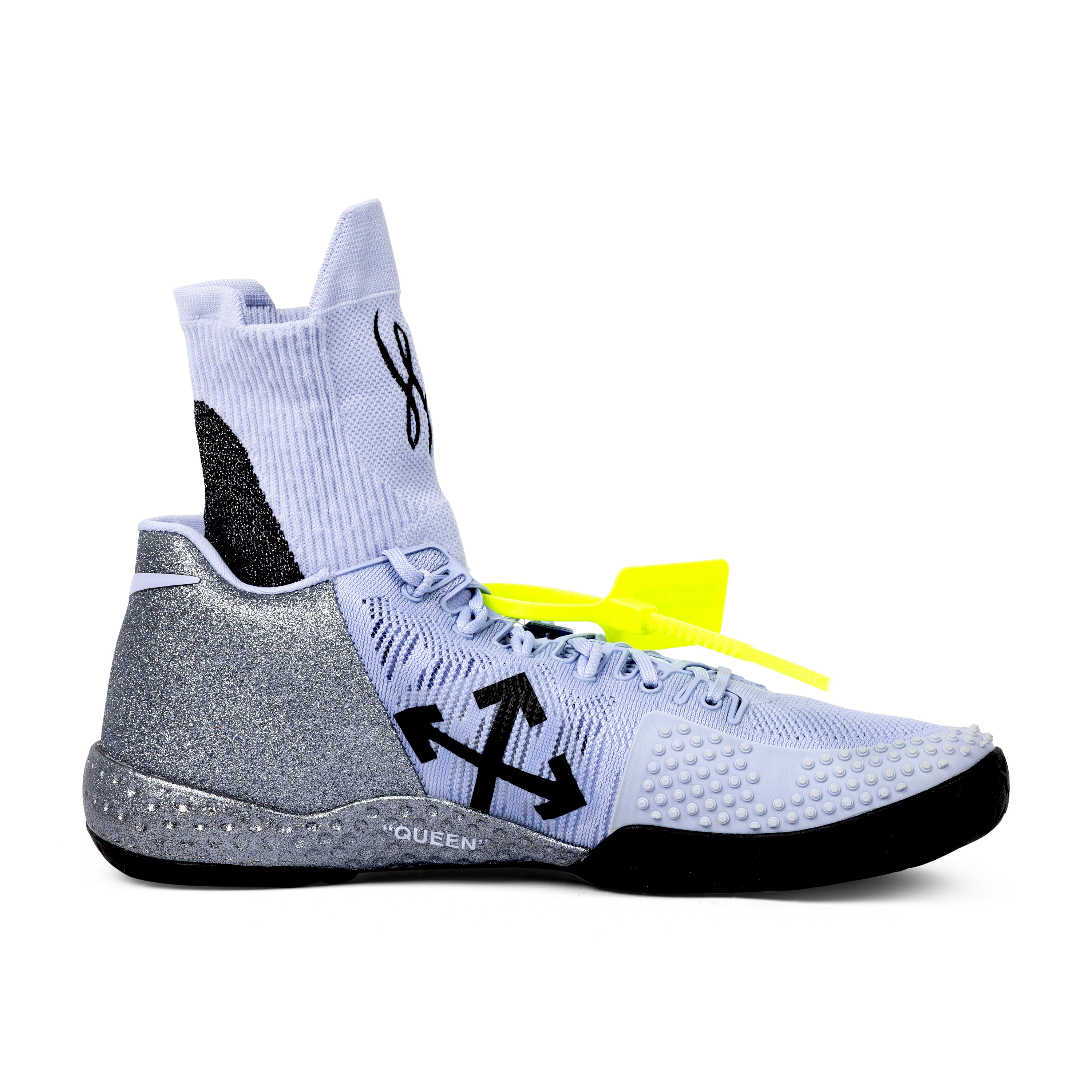 These Nike x Off-White Court Flare 2.0 shoes were created exclusively for Serena Williams as unreleased Promo Samples, produced only in her size (Women’s 11.5) and never made available to the public. Presented in grey, purple, black, and volt, the shoes feature integrated sock liners bearing Serena’s personal logos, midsoles reading “Queen” and “Serena,” and uppers marked with Off-White’s signature text: “Off-White for NIKE ‘COURT FLARE 2’ Beaverton, Oregon USA 2018.” They include the original volt Off-White zip-tie hangtag inscribed “OFF-WHITE C/O NIKE QUEEN OF QUEENS, NY C. 2018 ‘ZIP TIE’”. Exceptionally rare, this pair represents one of the most limited and elusive Off-White x Nike creations ever produced.