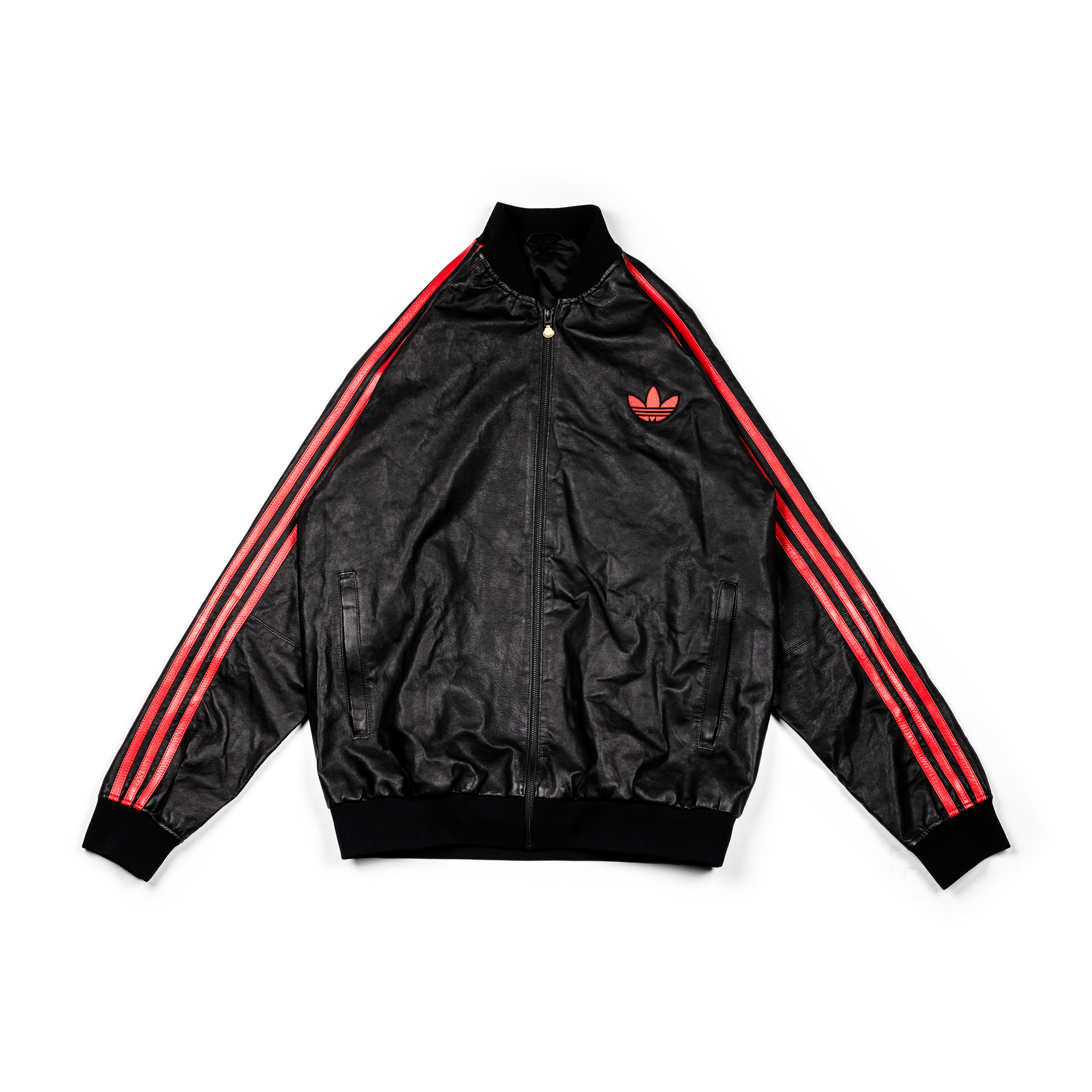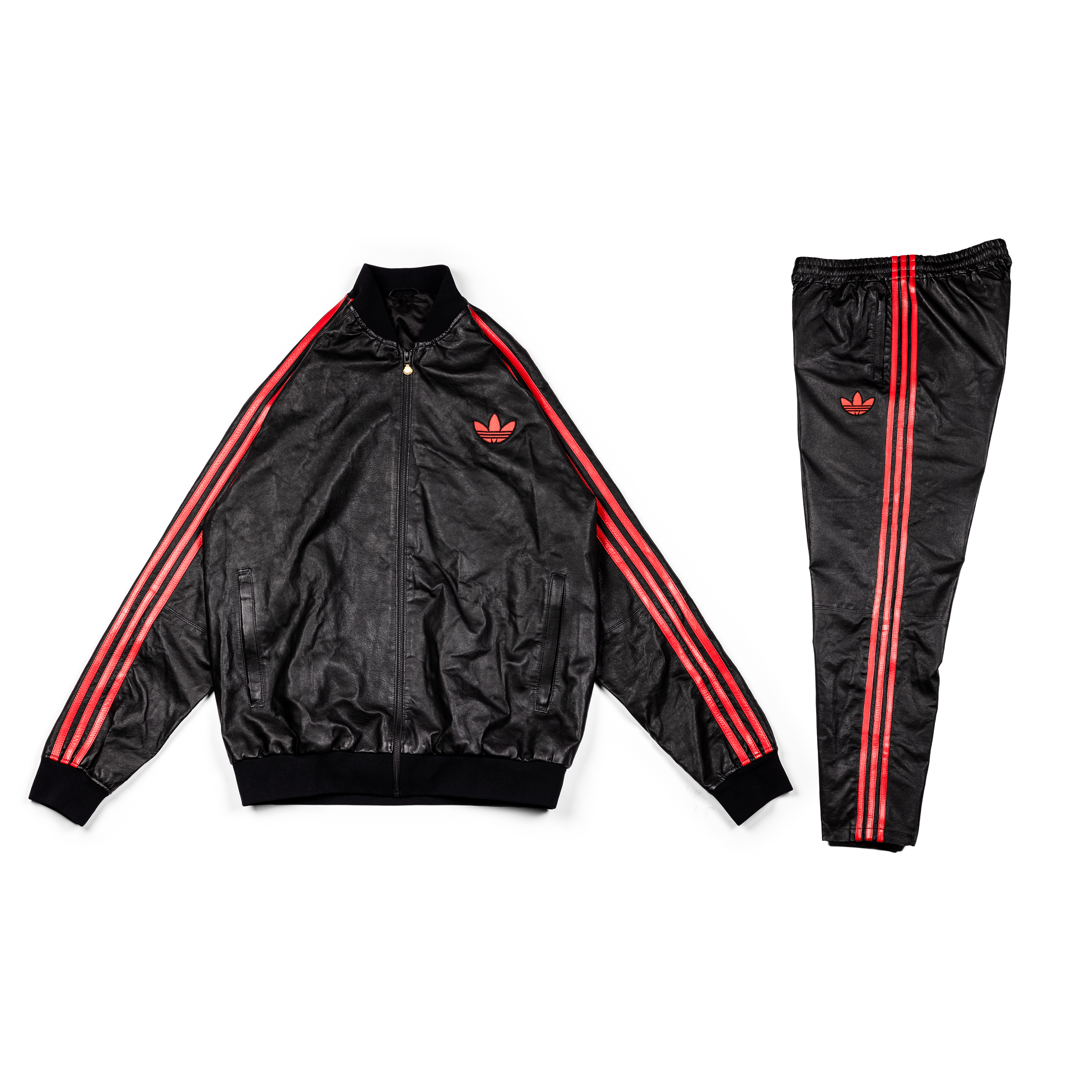 This special-edition vegan leather tracksuit was created for the legendary hip-hop group Run DMC and is distinguished by its gold seashell zipper and vegan leather composition.