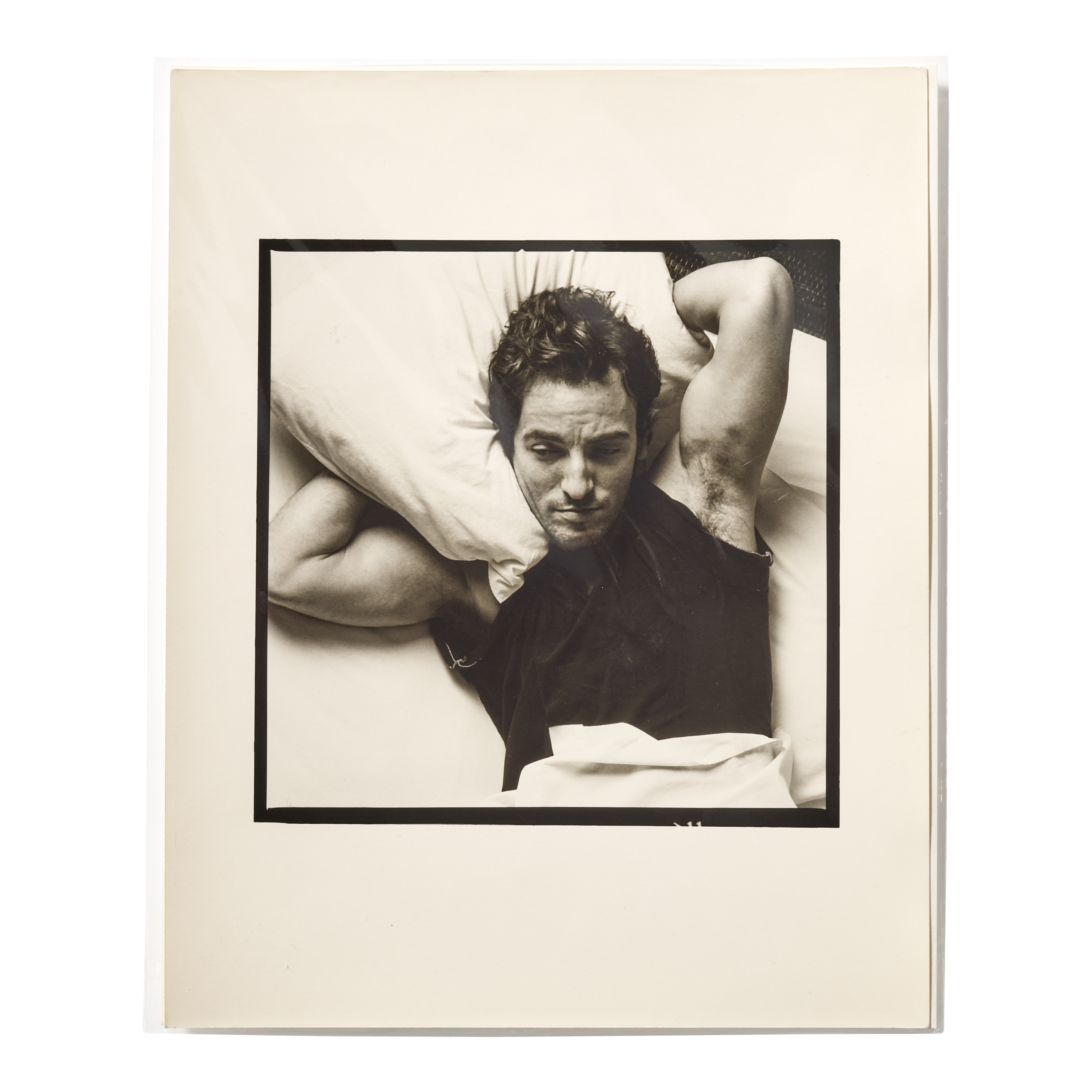 An original black-and-white photograph of Bruce Springsteen, captured by renowned photographer Annie Leibovitz, circa 1987.