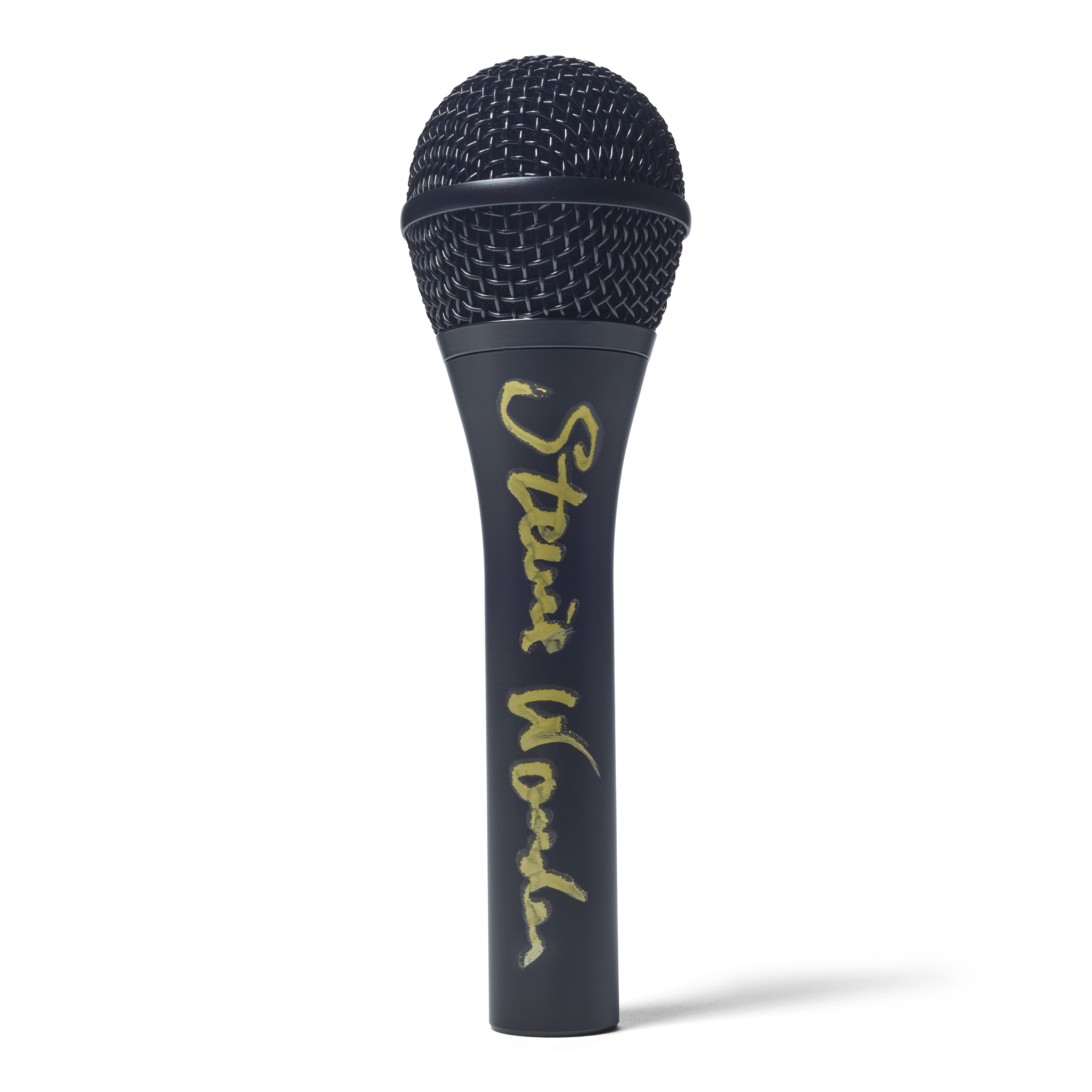 This professional-quality OM2 cordless microphone is signed in gold marker by legendary singer, songwriter, musician, and record producer Stevie Wonder.