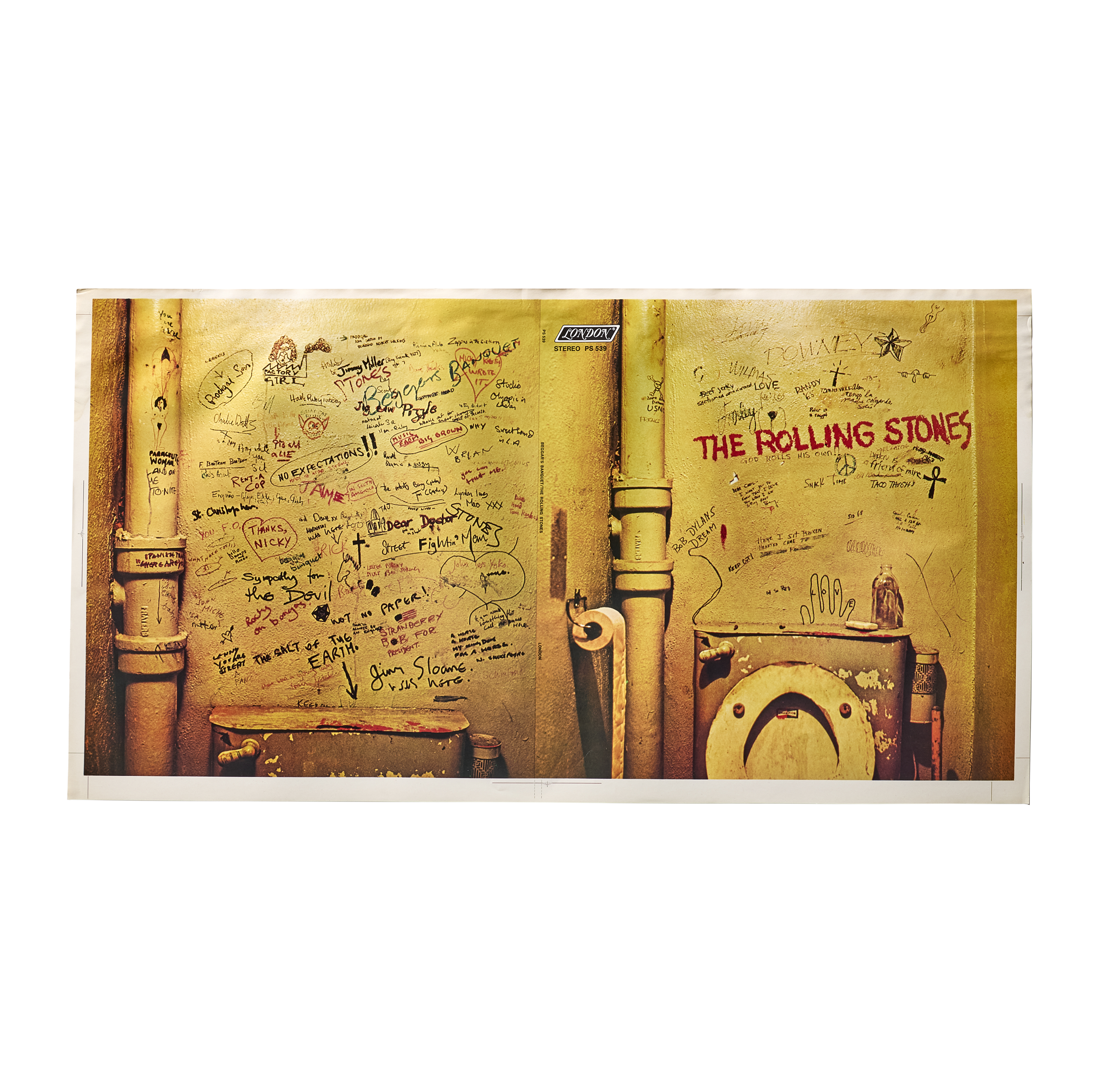 The Rolling Stones finished recording Beggars Banquet in July 1968, but the album met an unexpected delay when both Decca Records and London Records rejected the cover design, which featured a graffiti-covered lavatory. The Stones held back the album in a standoff that lasted until November, when the band agreed to a less controversial design. This proof offers a rare glimpse into the visual concept behind one of the Stones' most iconic albums.