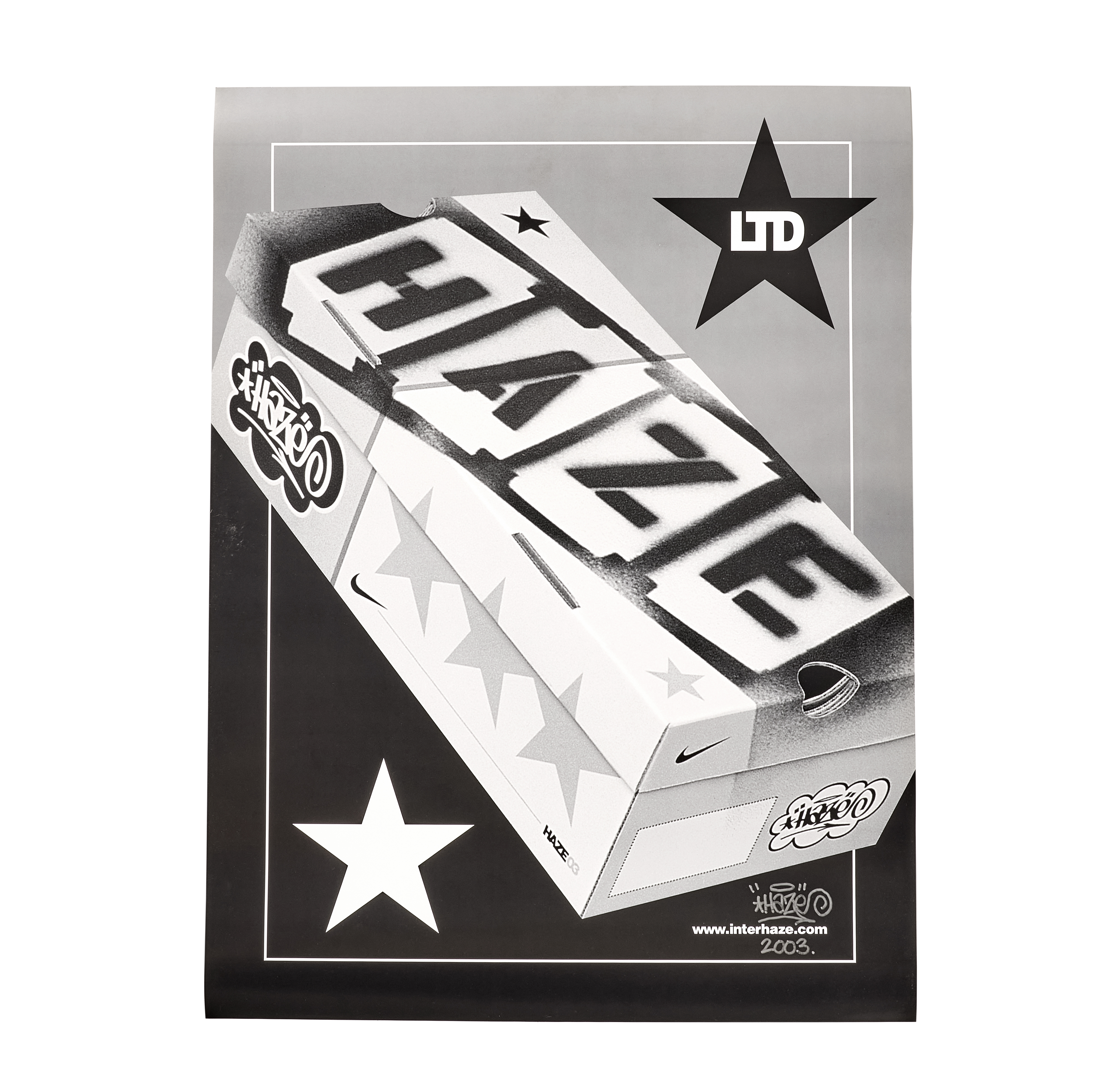 This poster comes directly from Eric Haze’s personal archives, making it an exceptionally rare artifact from one of the most influential artist–brand collaborations of the early 2000s. Trimmed, handled, and used for genuine promotional purposes, it reflects the authentic streetwear and graffiti-influenced ethos that defined Haze’s work with Nike at the time.