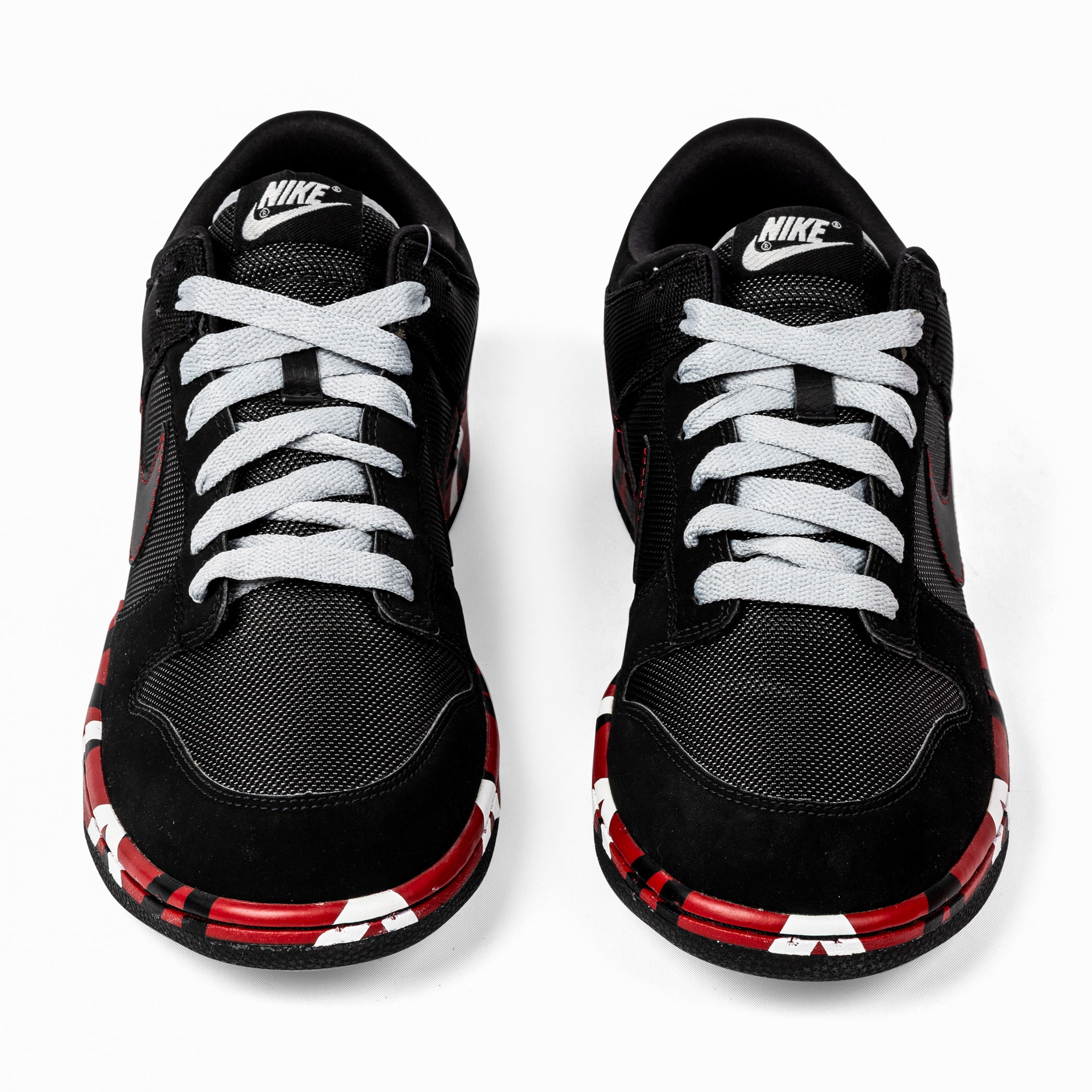 Inspired by Eddie Van Halen’s legendary 'Frankenstein' guitar, these Nike Dunks incorporate its instantly recognizable motif across select elements of the design. Produced without Van Halen’s authorization, the release ultimately led to legal action against Nike, making this pair not only visually striking, but also a significant artifact of music-and-sneaker history.