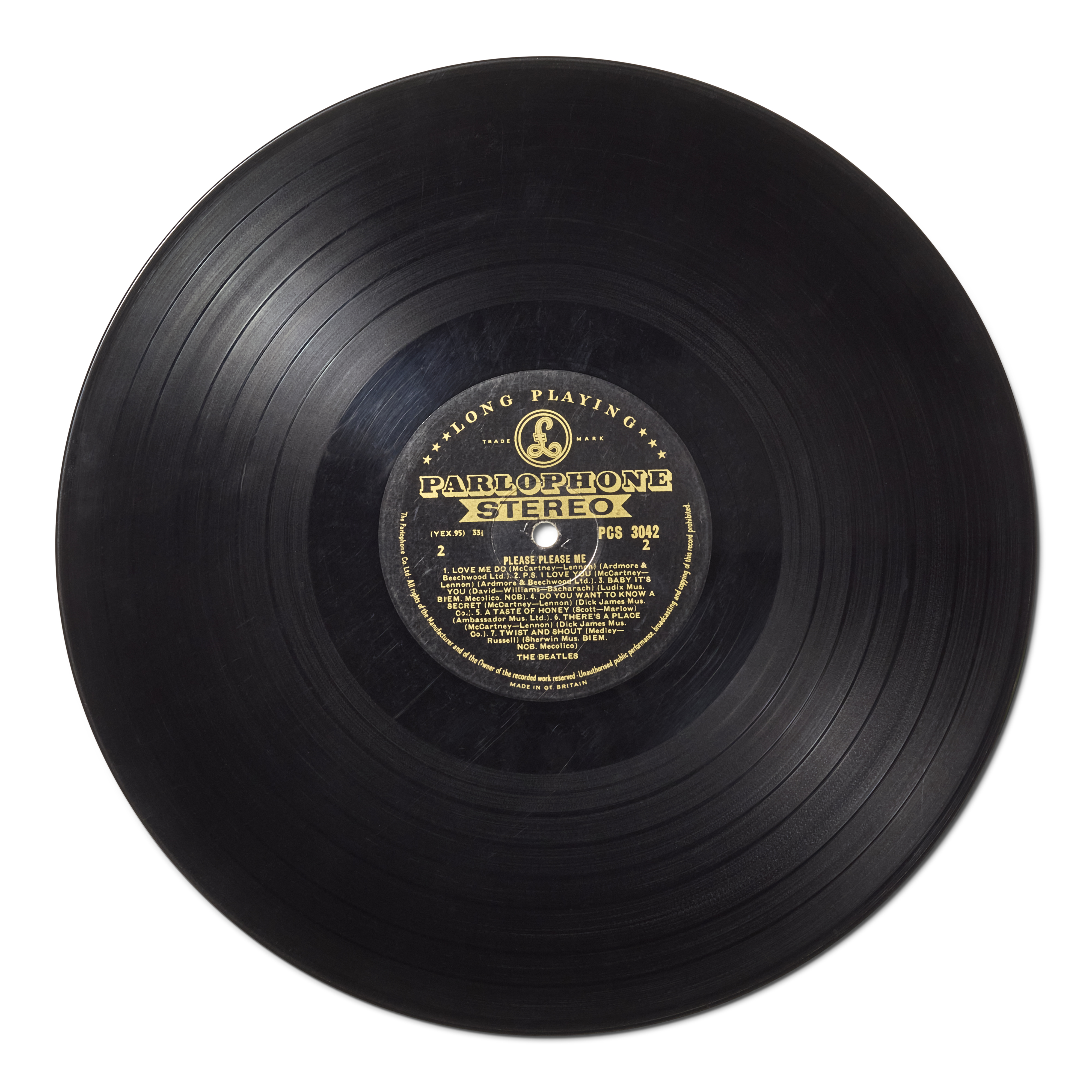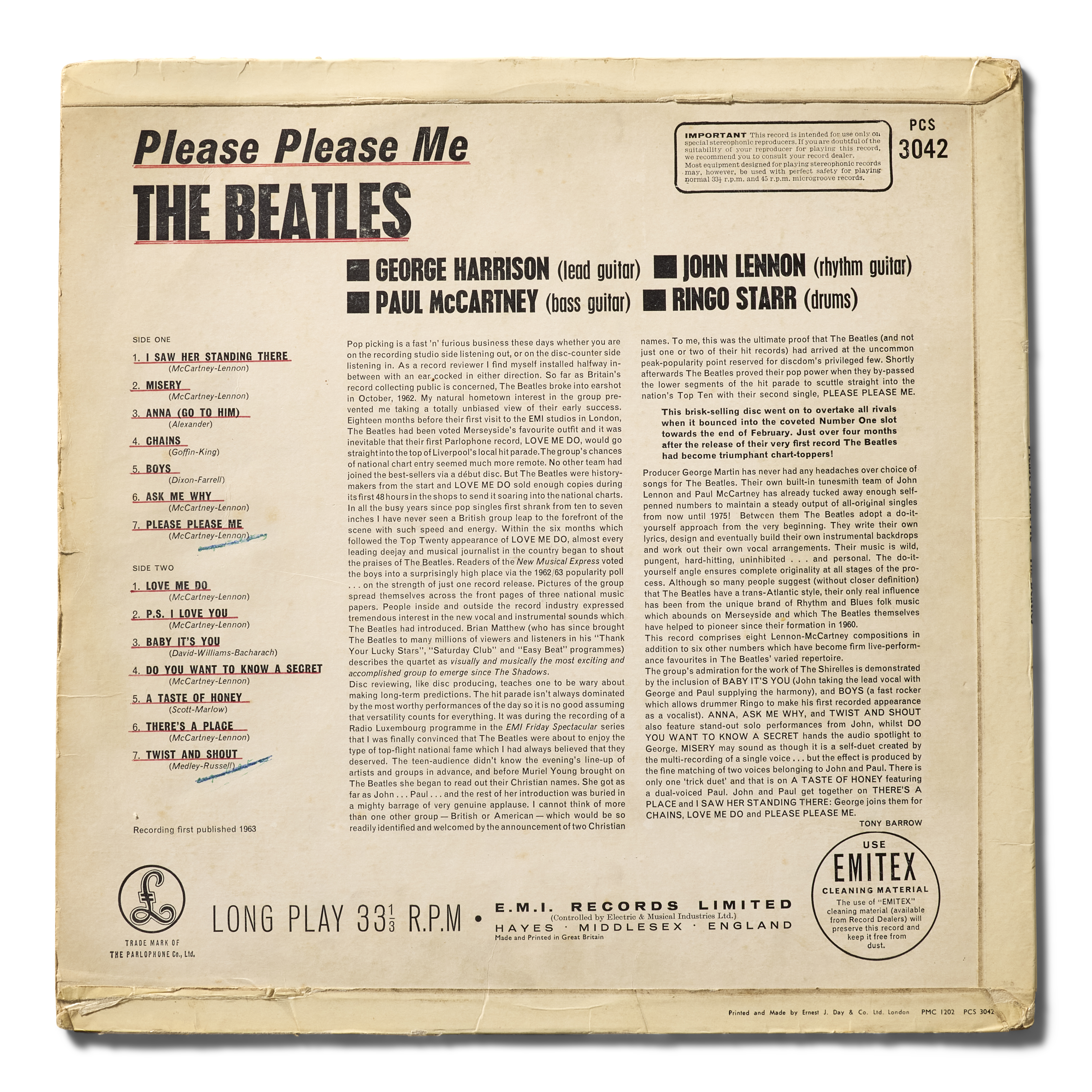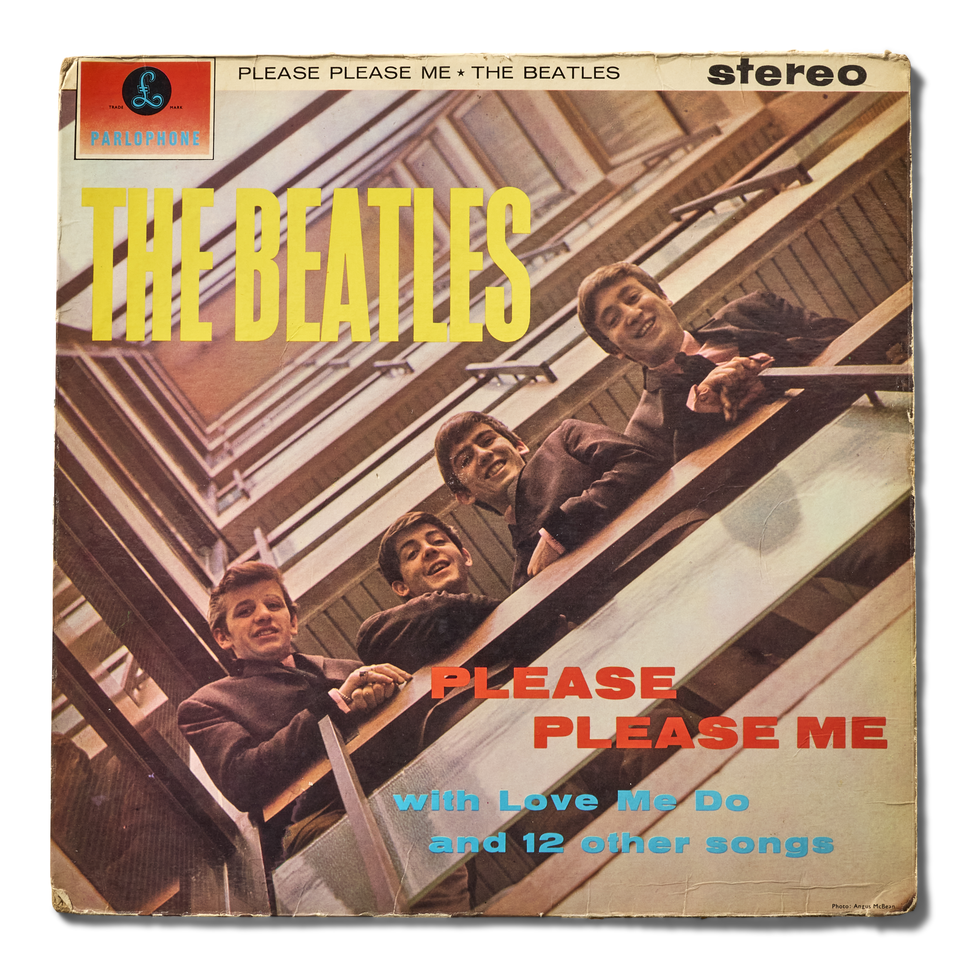 Released by Parlophone Records in April 1963, Please Please Me stands as the earliest Beatles album ever issued, capturing the youthful vitality of a band on the cusp of transforming popular music. First pressings are instantly recognizable by Parlophone’s short-lived black-and-gold label, a design used only during this brief window, making surviving examples like this instantly recognizable and prized by collectors. The front cover photograph by Angus McBean, shot from below in the stairwell of EMI’s Manchester Square headquarters, presents the Beatles as fresh, exuberant newcomers and is an image that has since become iconic in its own right.
