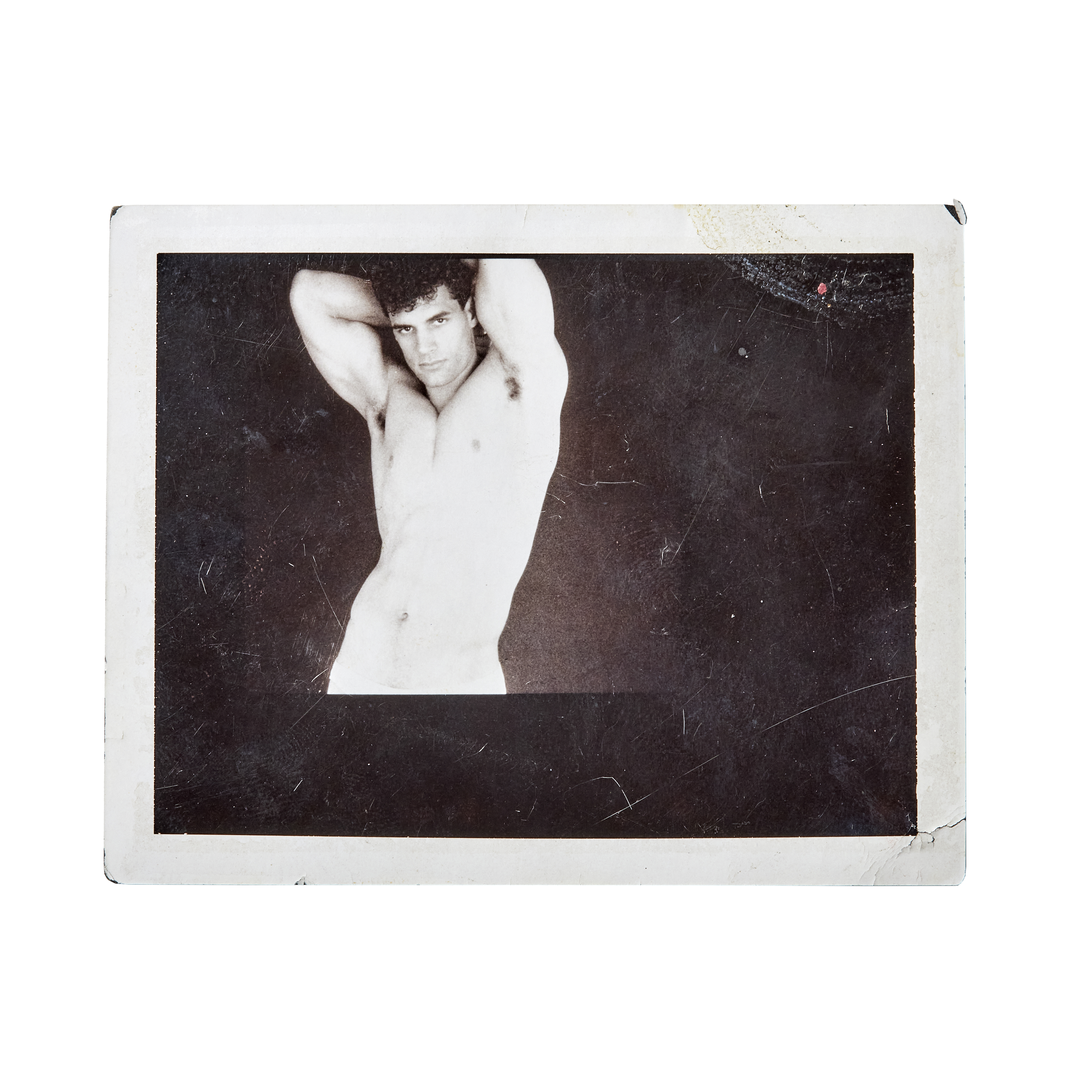 This polaroid of Charles Bowman, taken during those pivotal Torso sessions, distills Mapplethorpe’s mastery into a frame both restrained and charged with immediacy. Here, Bowman stands nude with his arms lifted behind his head, his figure cropped just at the lower waist. Undeniably suggestive, the image also thoughtfully transforms the models torso into a monument. The image, gifted directly to Bowman, bears the intimacy of exchange between artist and muse. Small in scale yet vast in implication, it is both personal artifact and formal study, a quiet testament to the trust, beauty, and collaboration that shaped Mapplethorpe’s most enduring works.