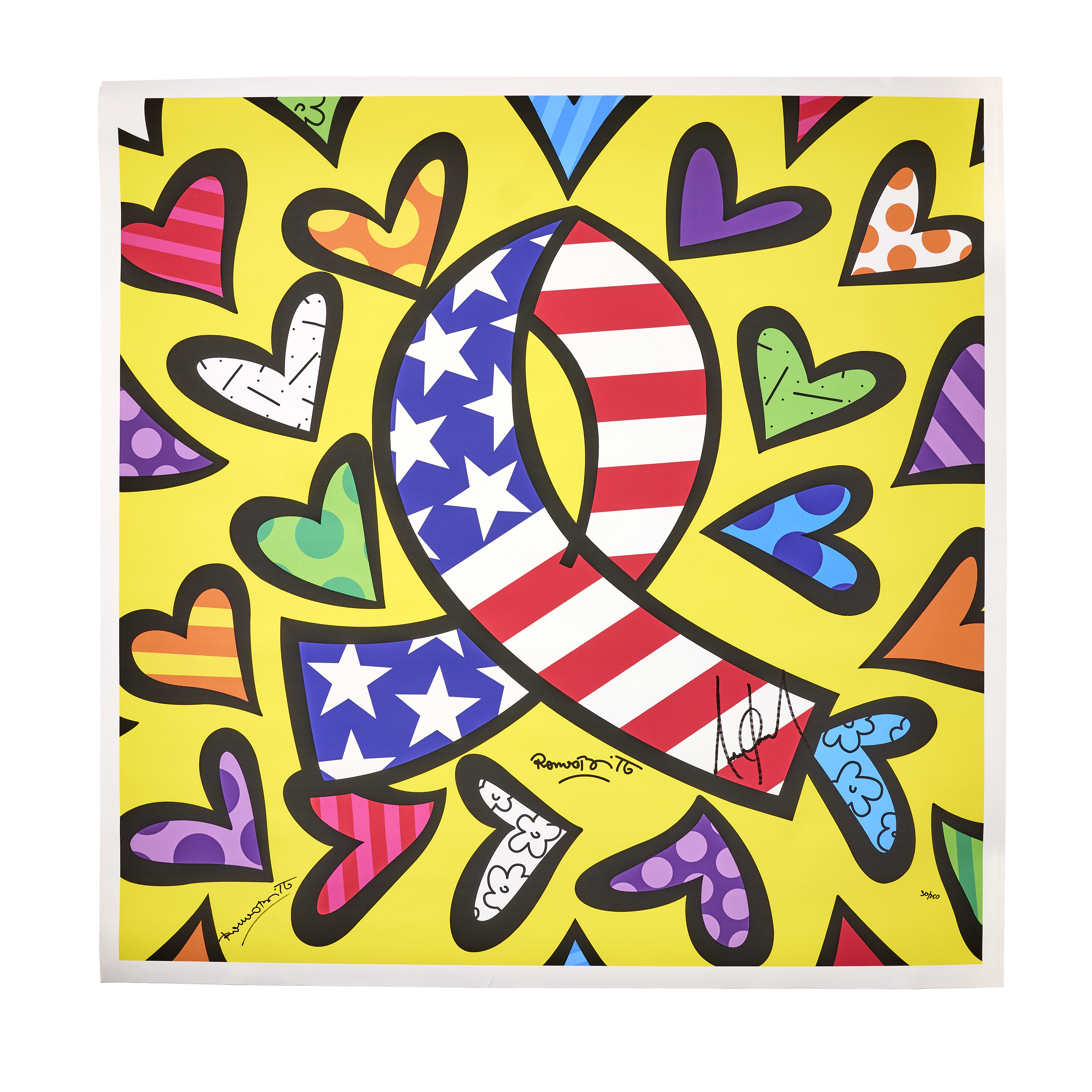 This limited-edition What More Can I Give giclée on canvas was created by renowned pop artist Romero Britto and is boldly signed by Michael Jackson in black marker. The artwork commemorates Michael Jackson’s 2001 charity single "What More Can I Give," written to benefit victims of global crises, including the September 11 attacks. Romero Britto, celebrated for his vibrant, colorful, and optimistic style, created this piece in close collaboration with Jackson, merging his signature aesthetic with the song’s message of generosity, hope, and unity.
