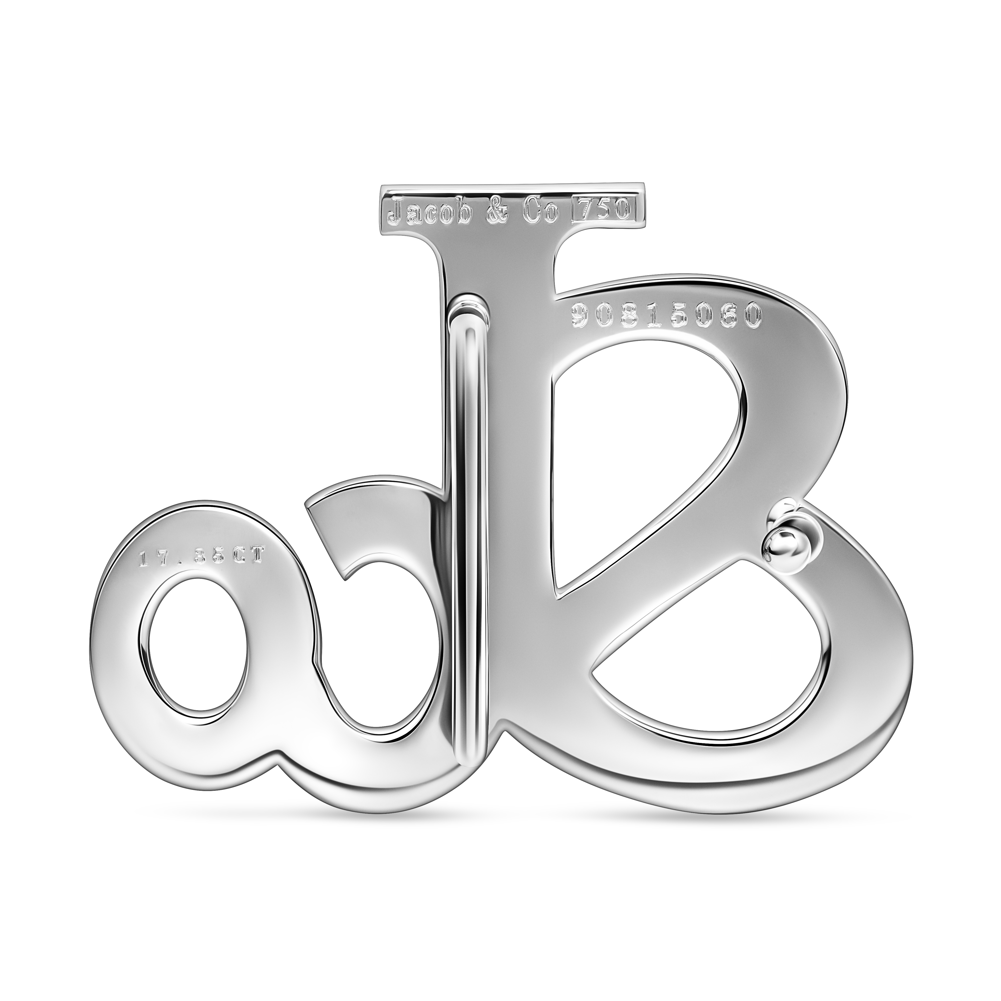 Created in 2008, this 18K white gold “Jacob & Co.” logo buckle represents the pinnacle of that craftsmanship. The surface is set with an extraordinary 17.35 carats of invisible-set baguette-cut diamonds, a technique that demands extreme precision, allowing the stones to form a seamless, continuous field of brilliance without visible metal. Weighing 66.1 grams, the buckle has the substantial presence and architectural clarity that defined Jacob’s most celebrated custom works.
